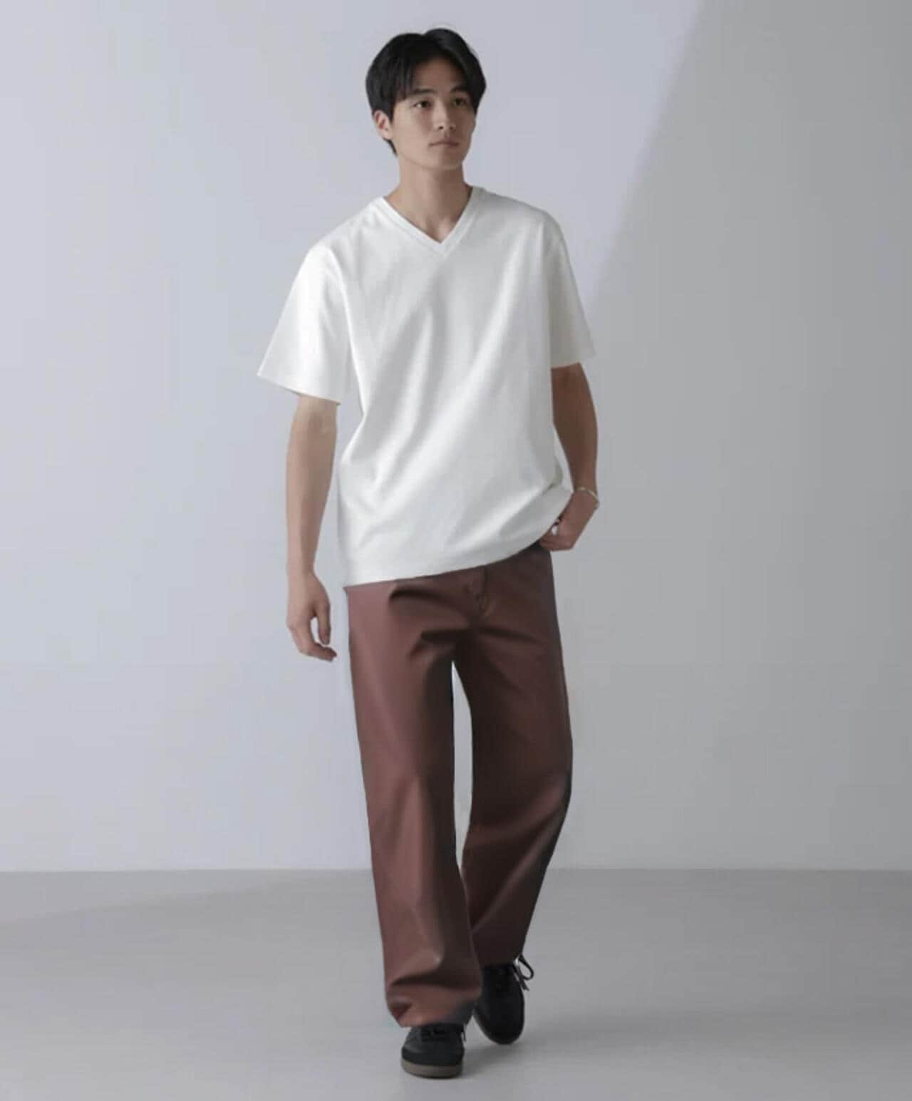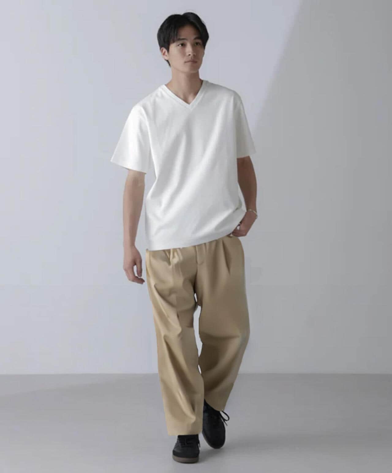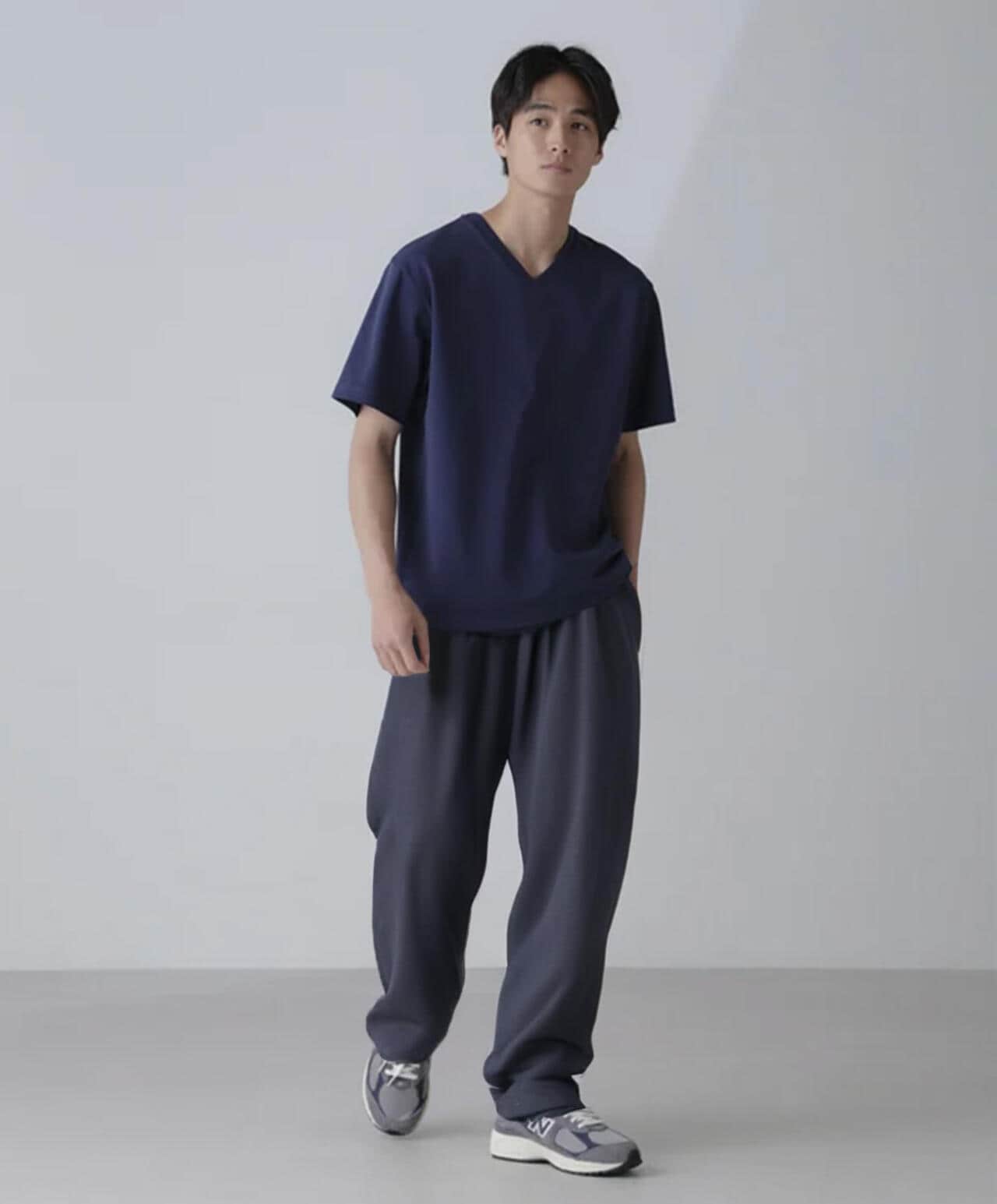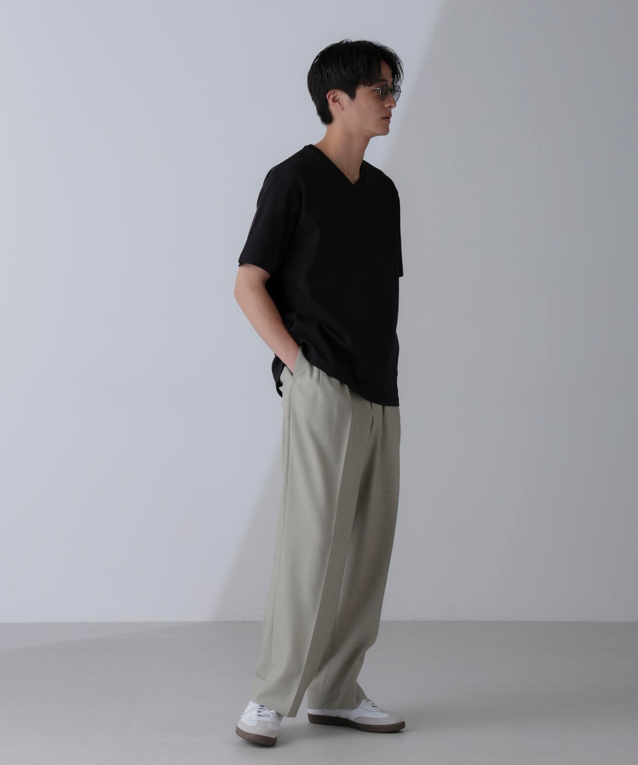 撥水と吸水、2つの機能を兼ね備えたダブルスムースシリーズのVネック半袖Tシャツ。