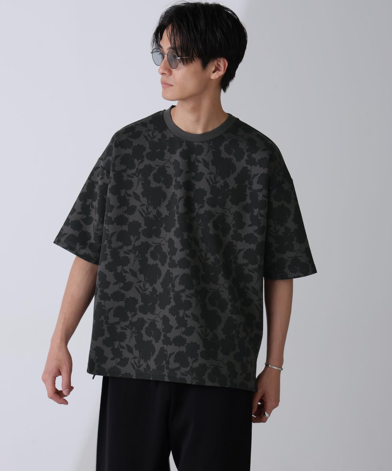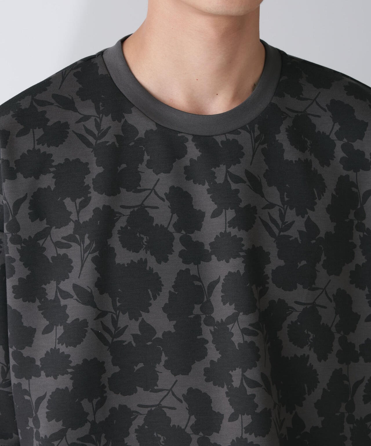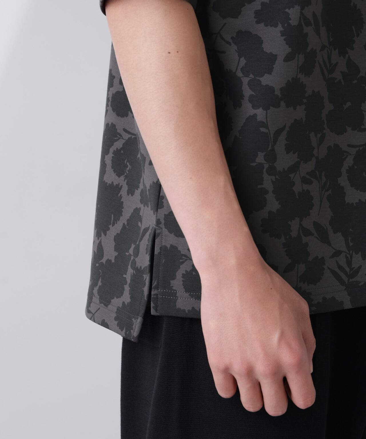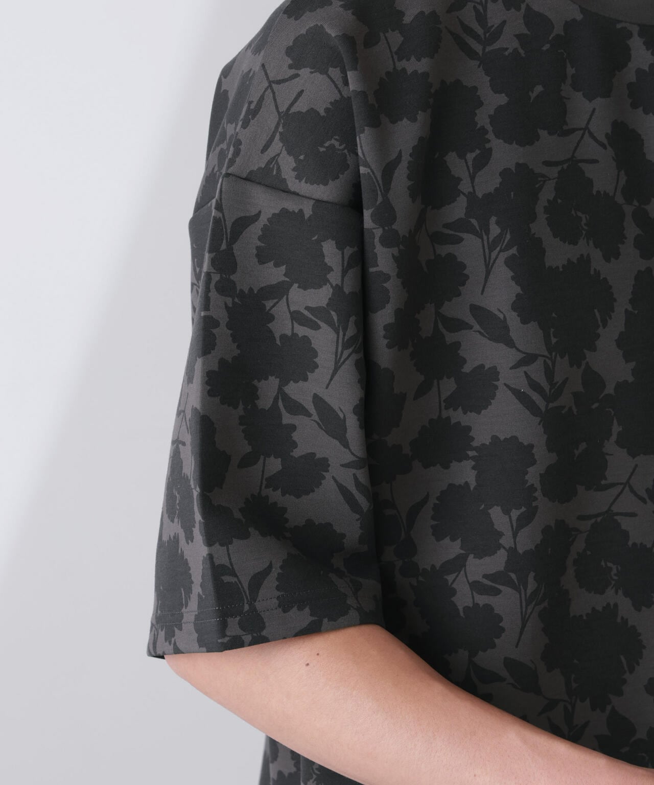 生地と柄を同系色に仕上げているためシックな雰囲気が漂い、普段花柄を着ない方にも着用しやすいアイテムです。