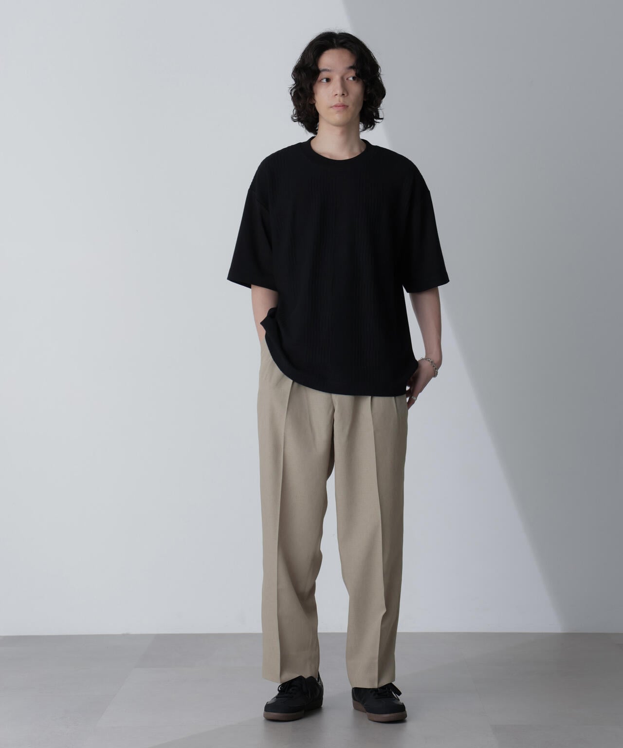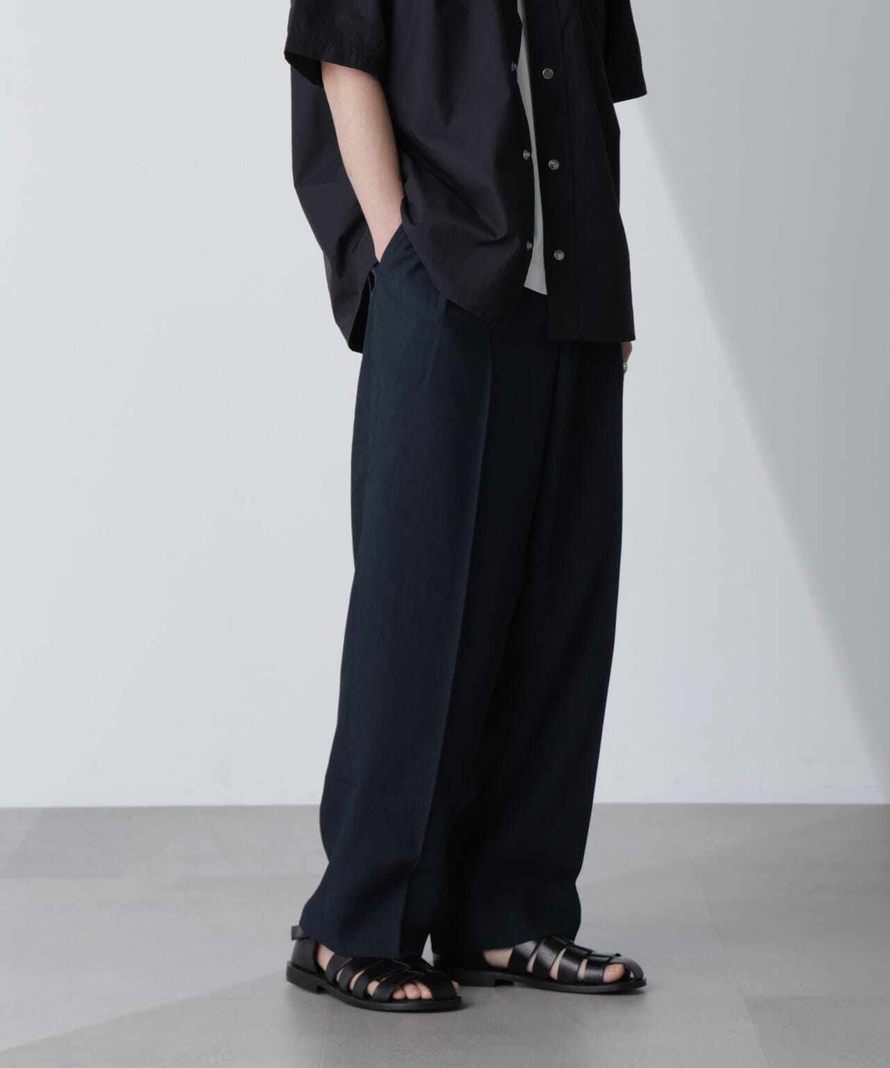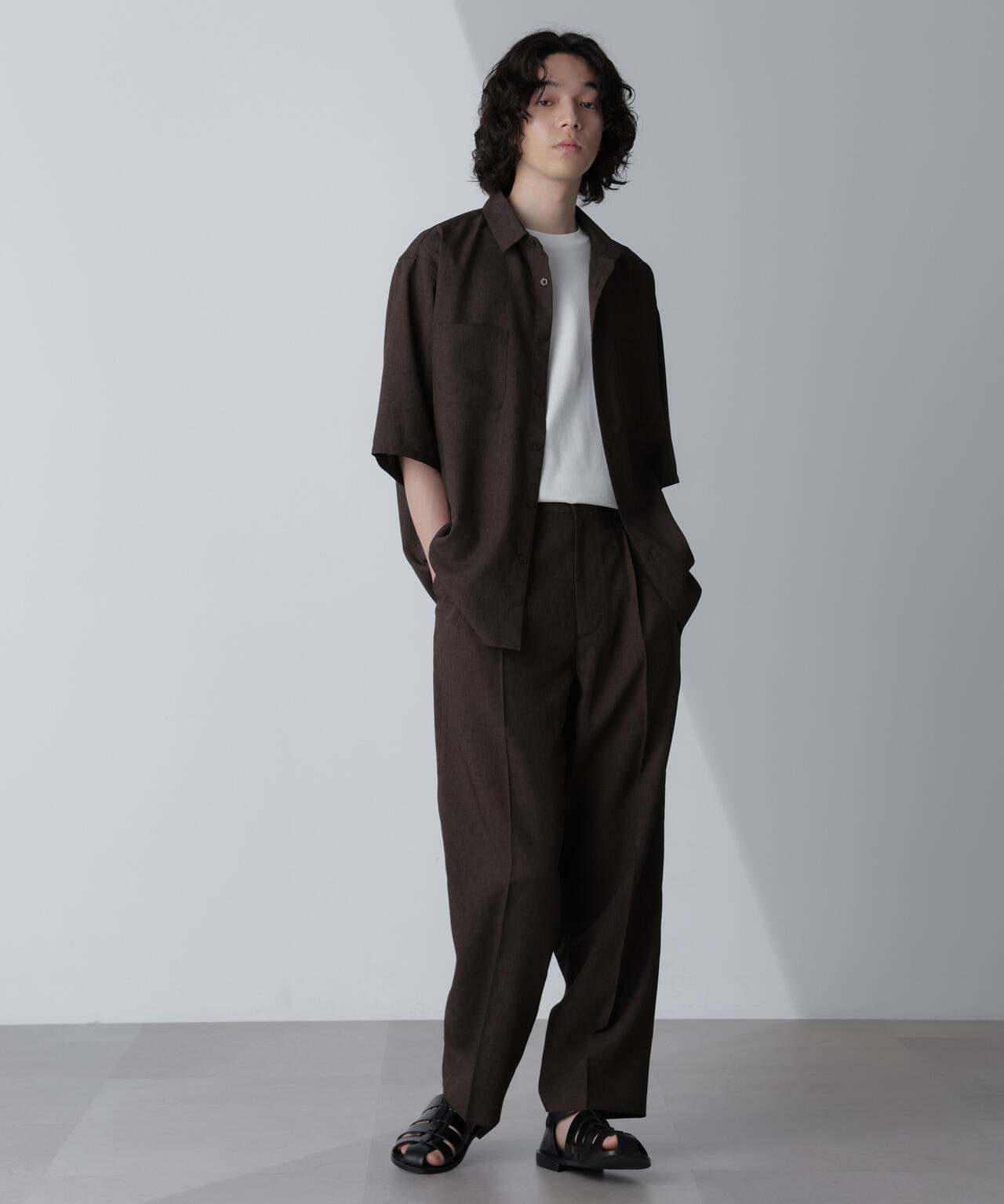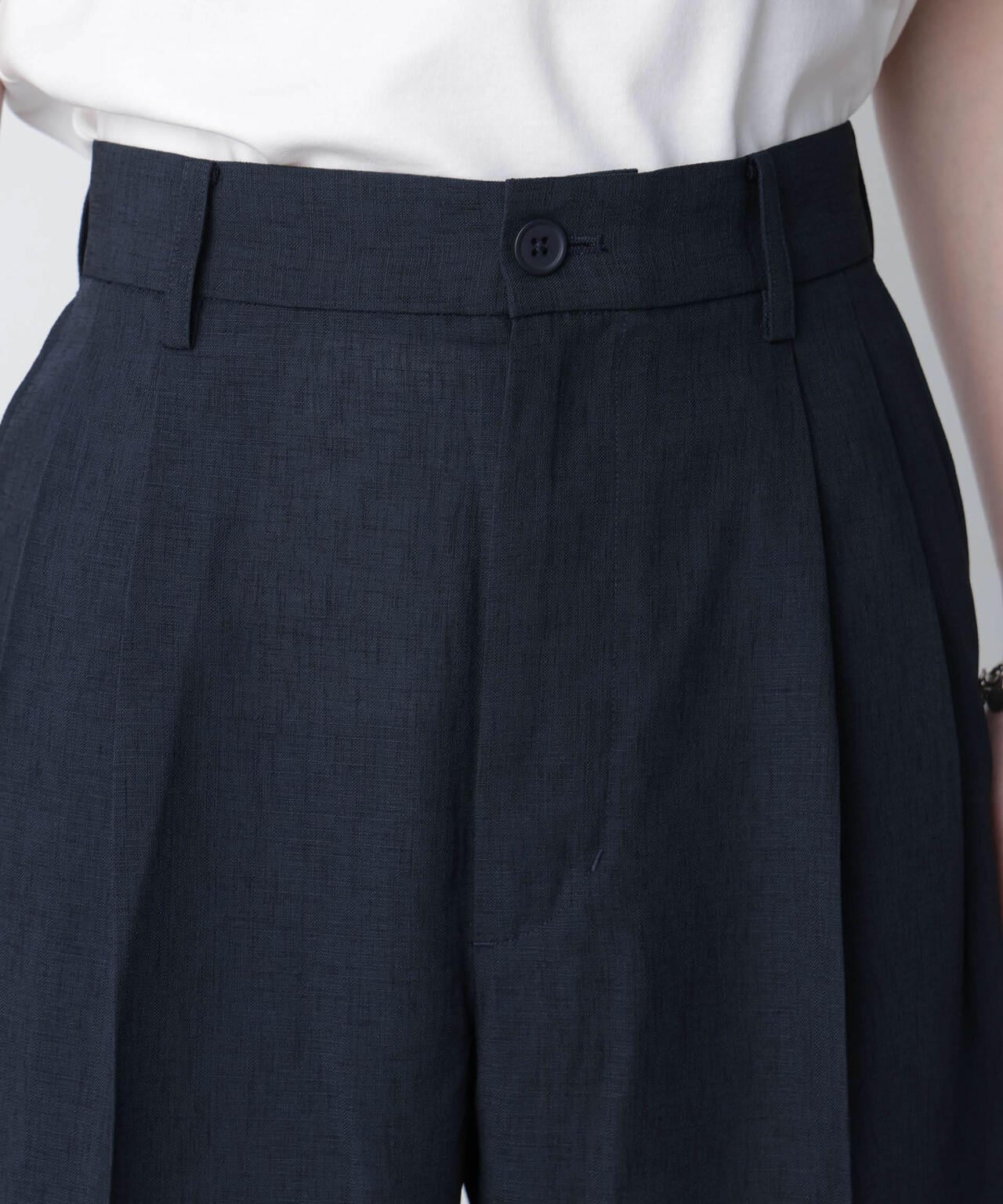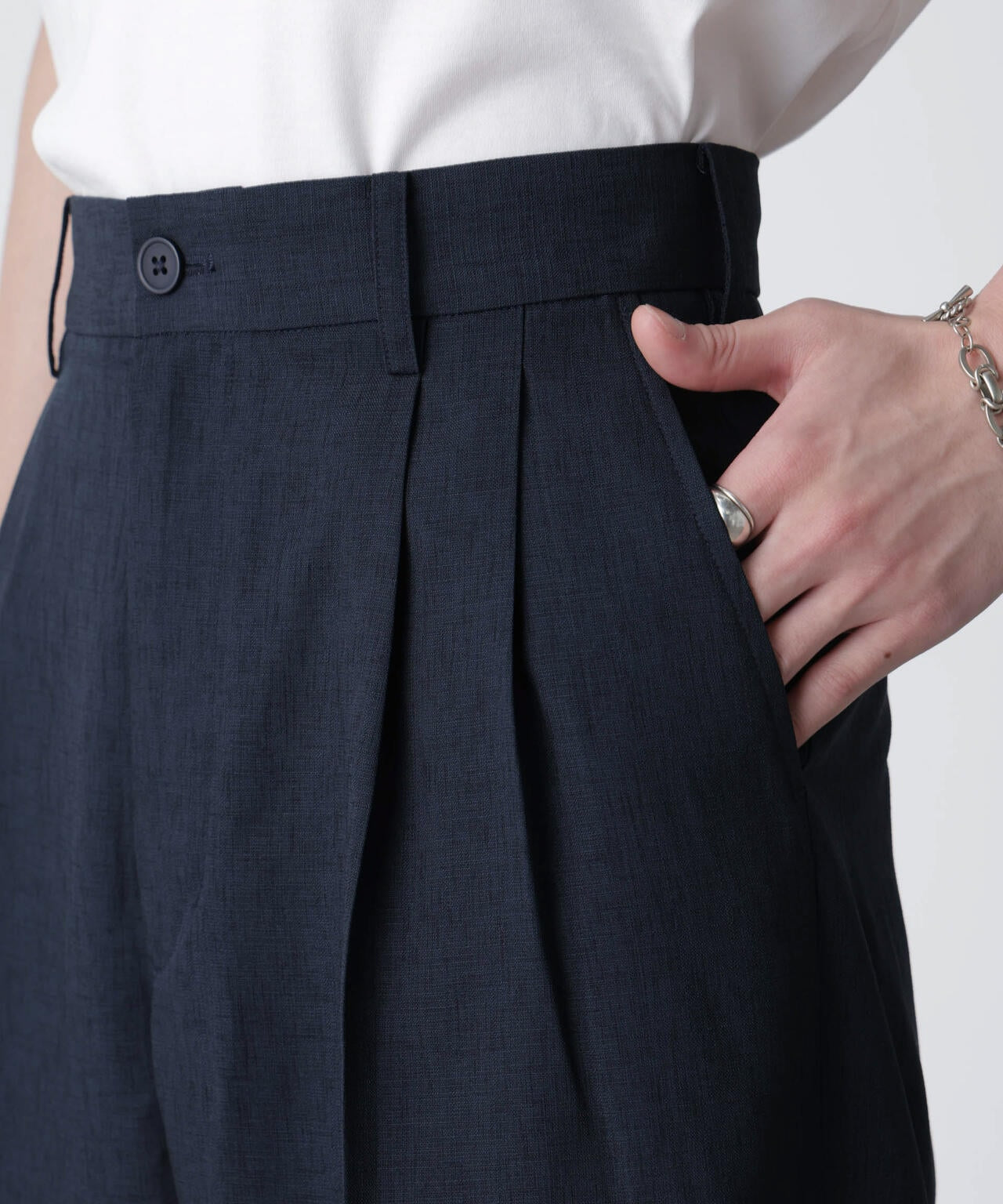 リネンのようなドライタッチな風合いが魅力のテーパードタックパンツ。