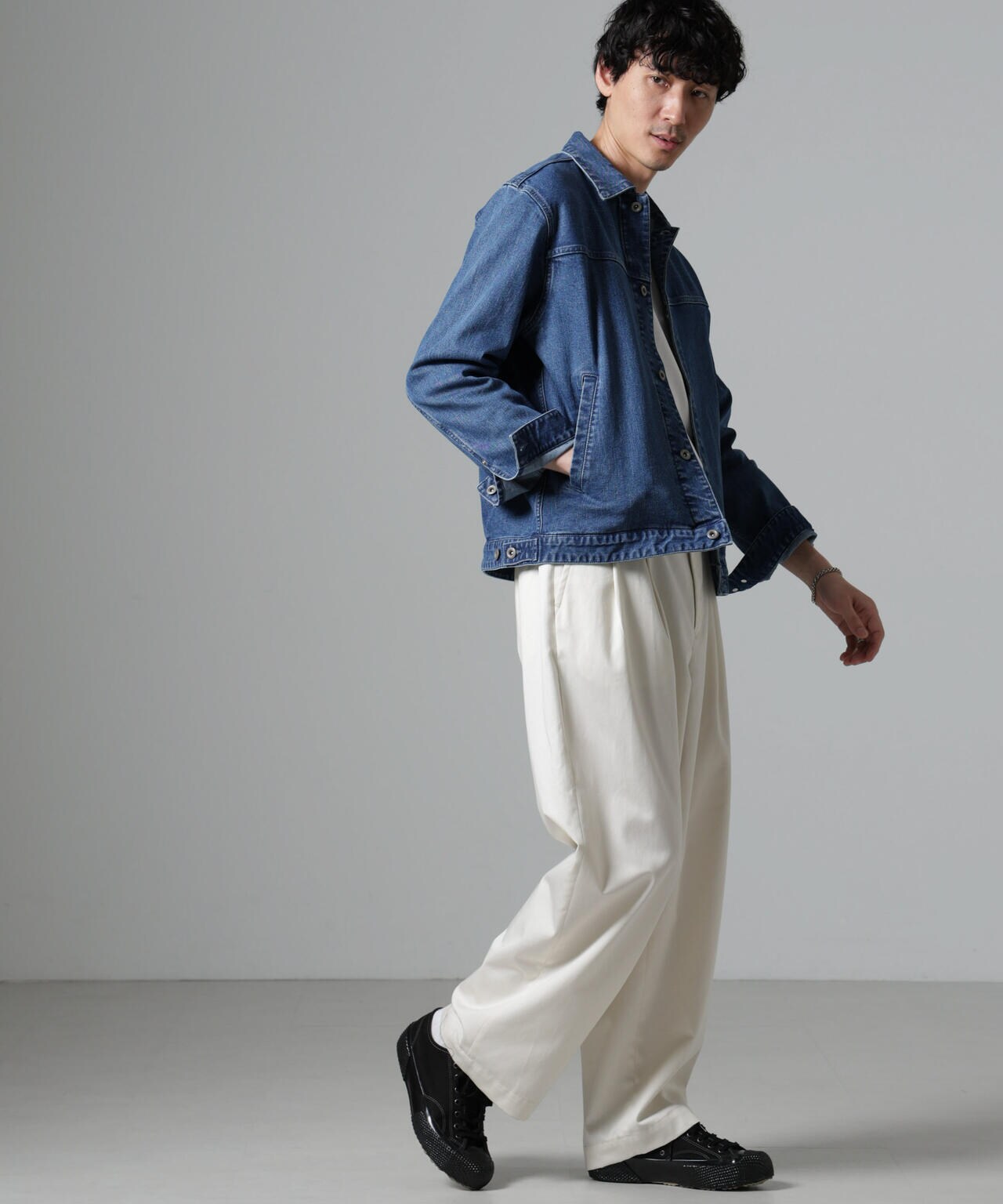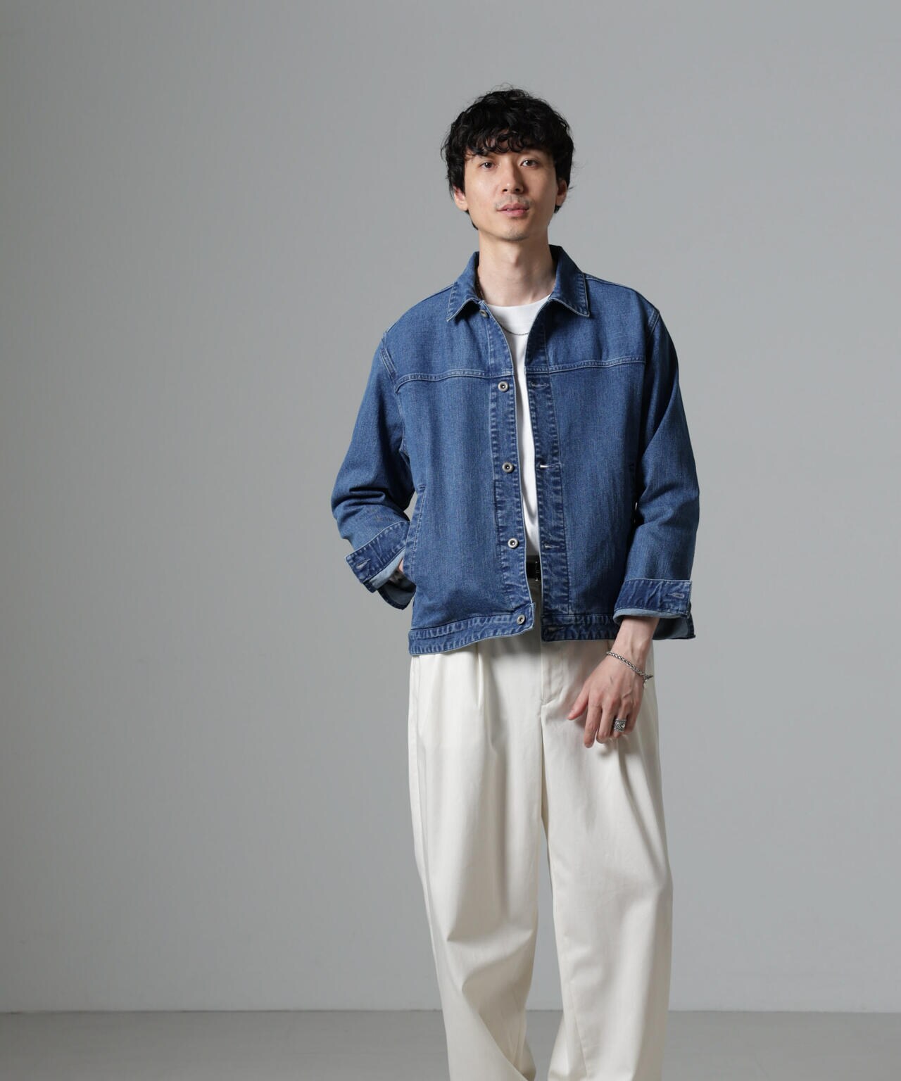 ・コンパクトなシルエットに仕上げたデニムブルゾン