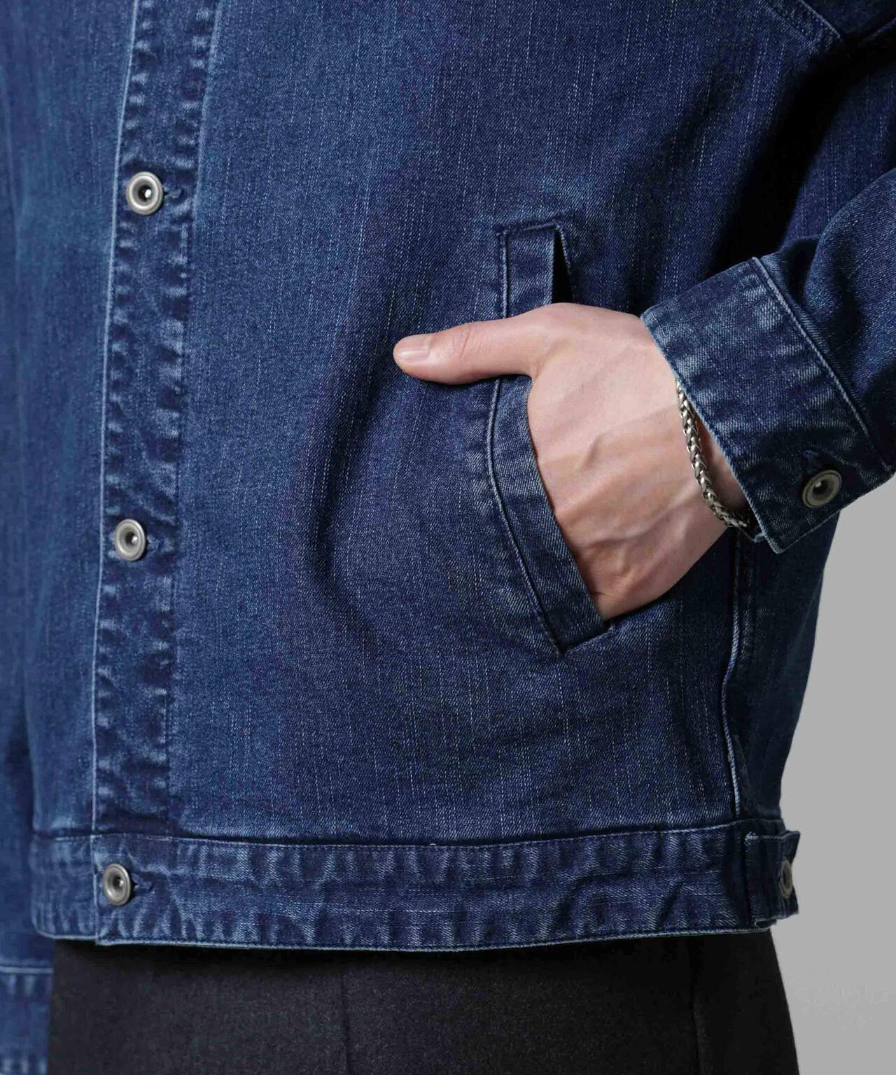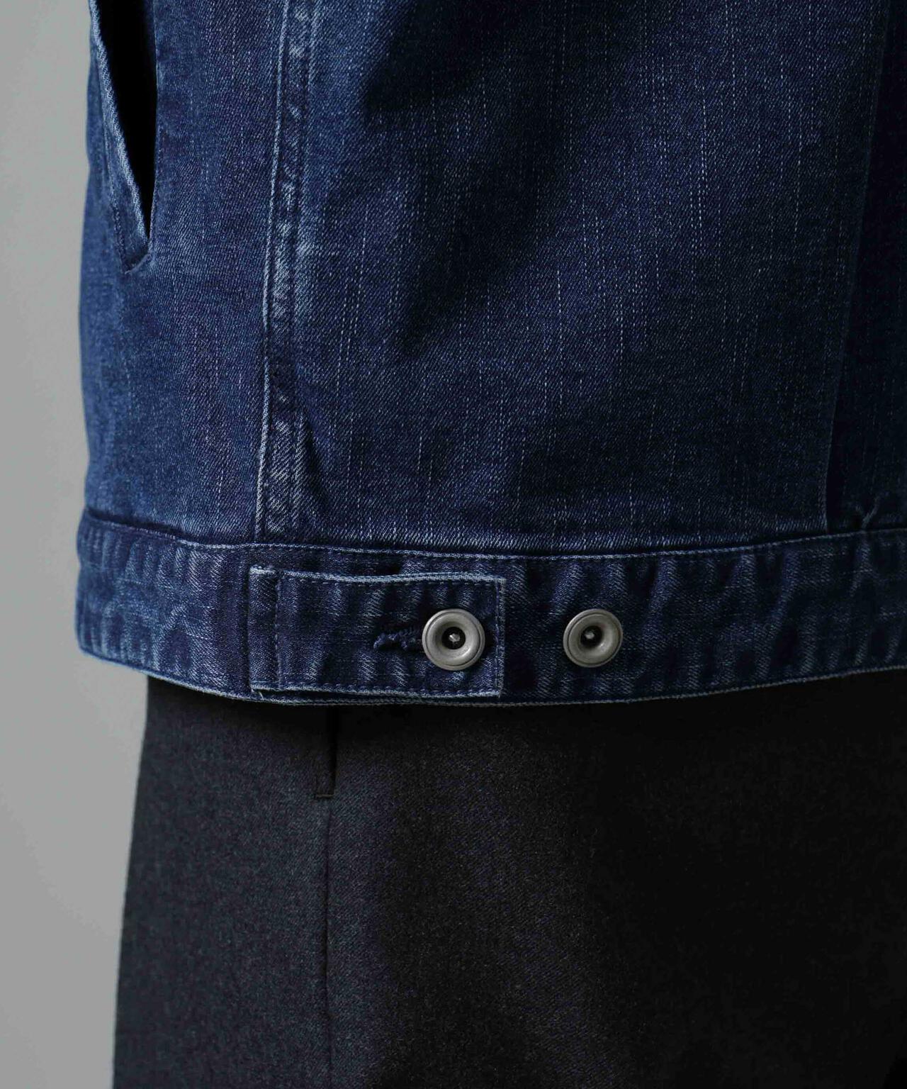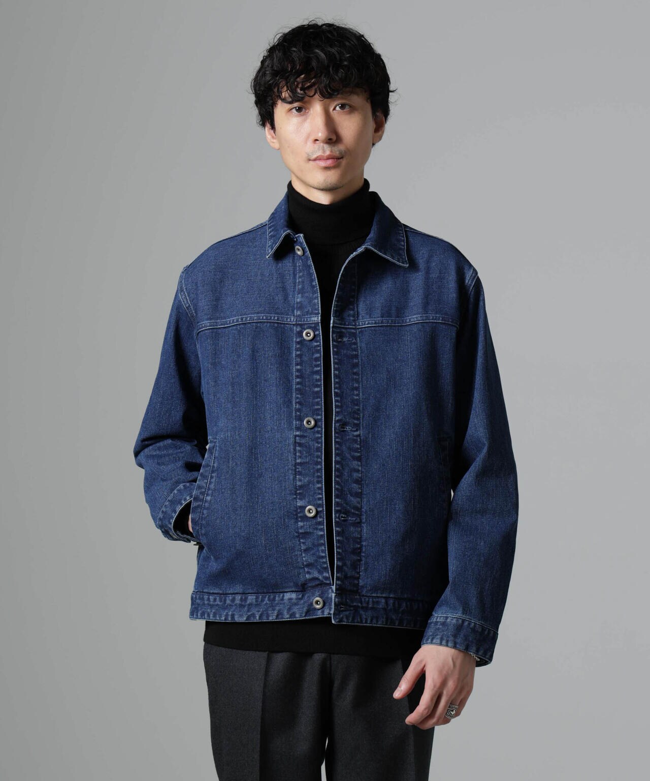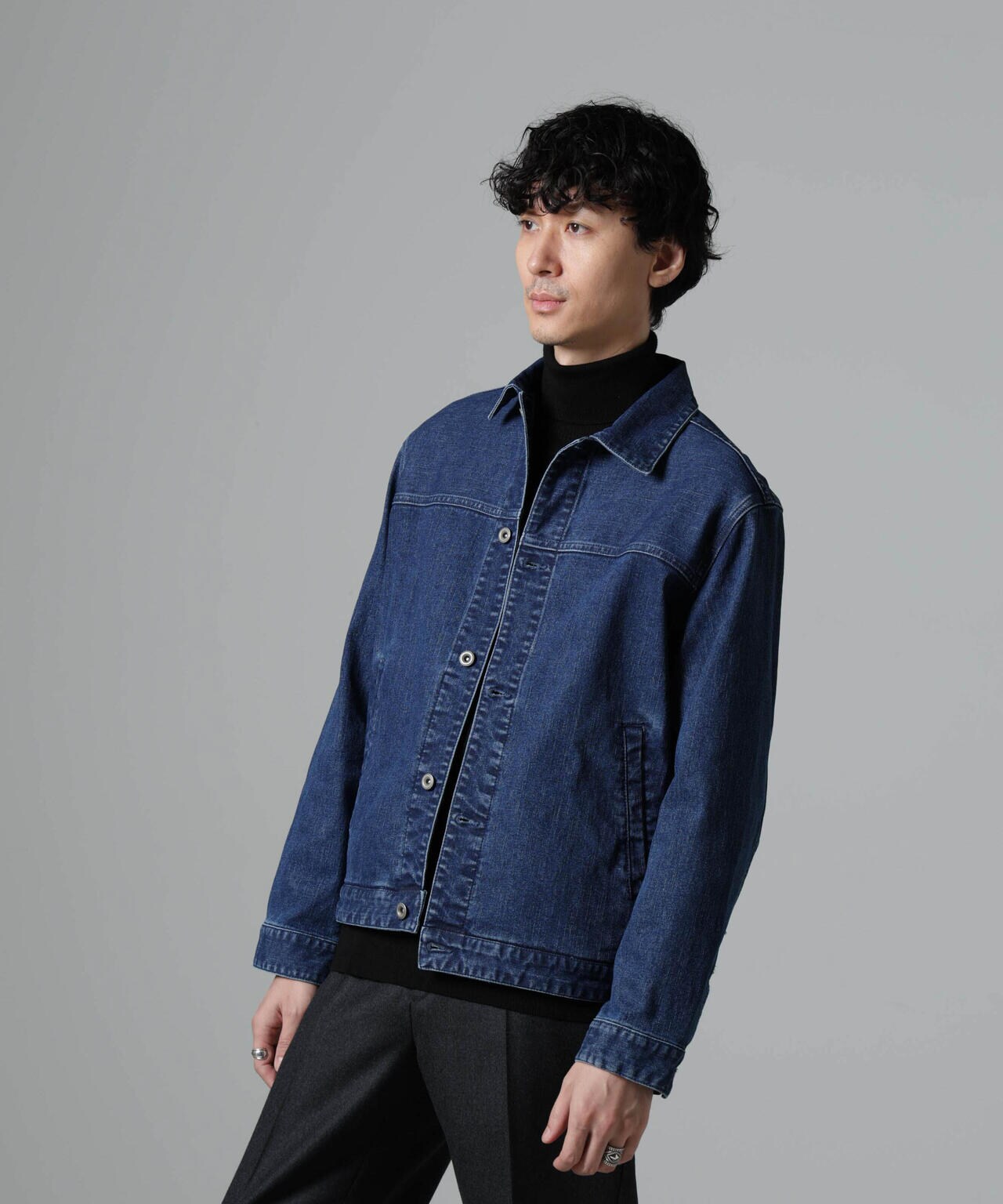 コンパクトなシルエットに仕上げたデニムブルゾン。伸縮性と回復性に優れた、肘抜けや型崩れしにくいライクラ混の素材を使用。ストレッチの効いた快適な履き心地が魅力のハイブリットデニムブルゾンです。