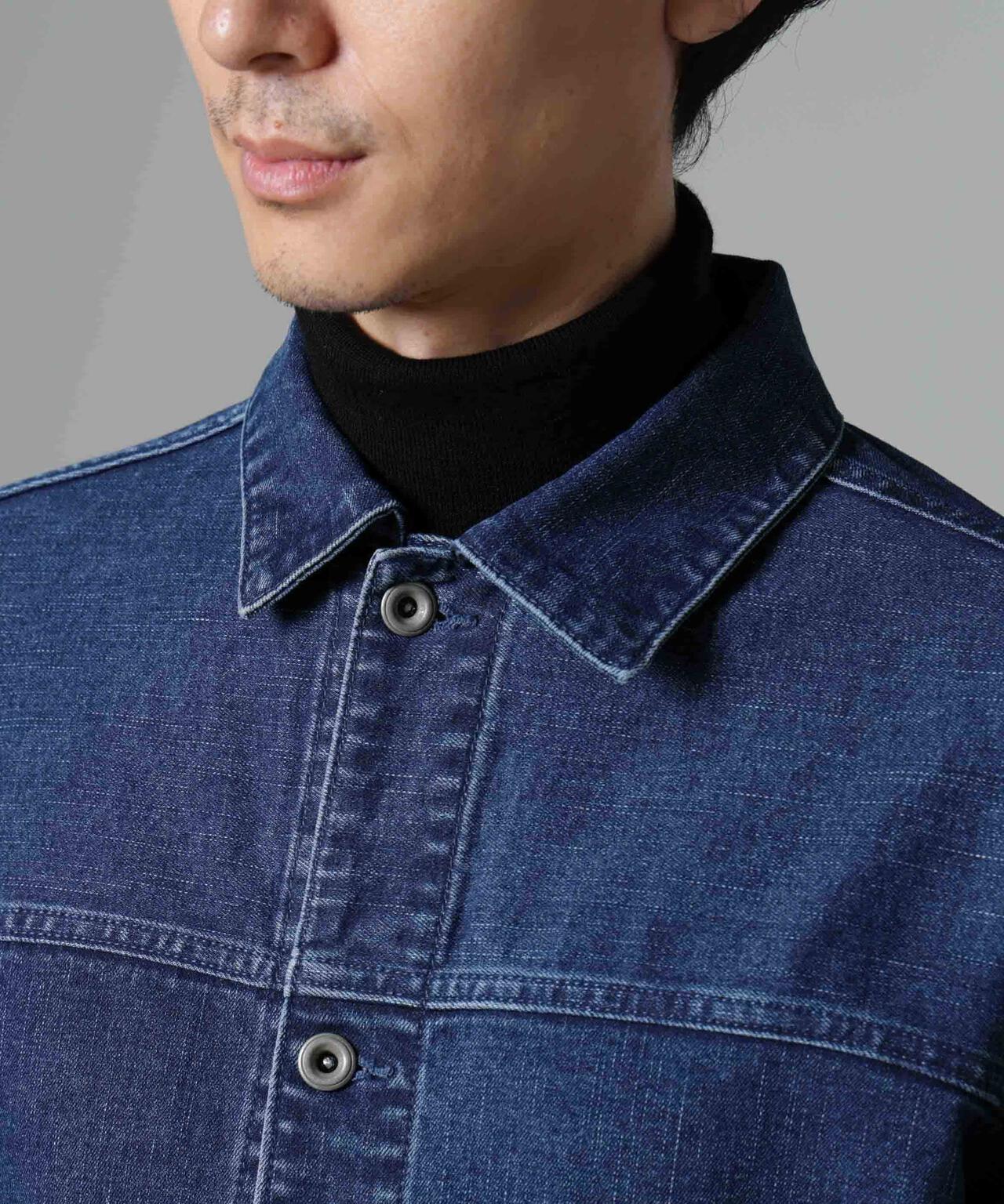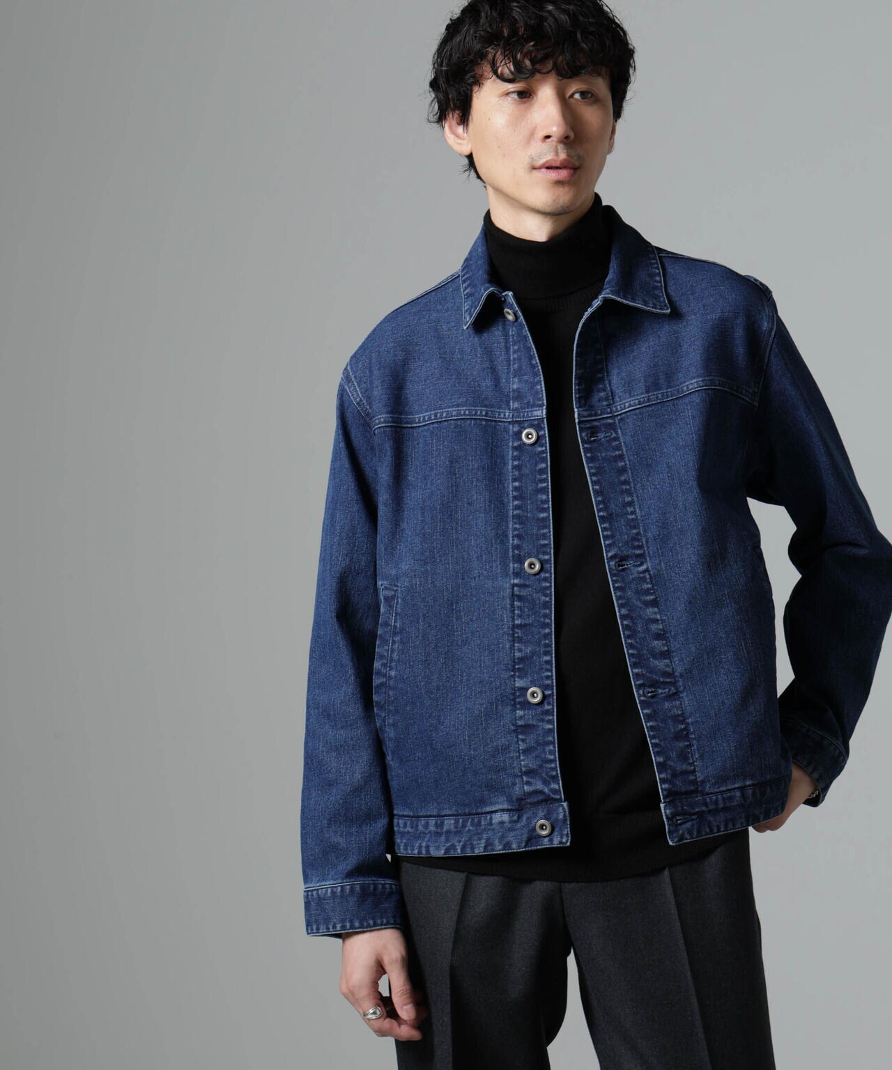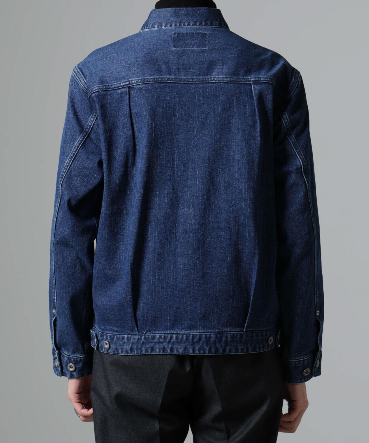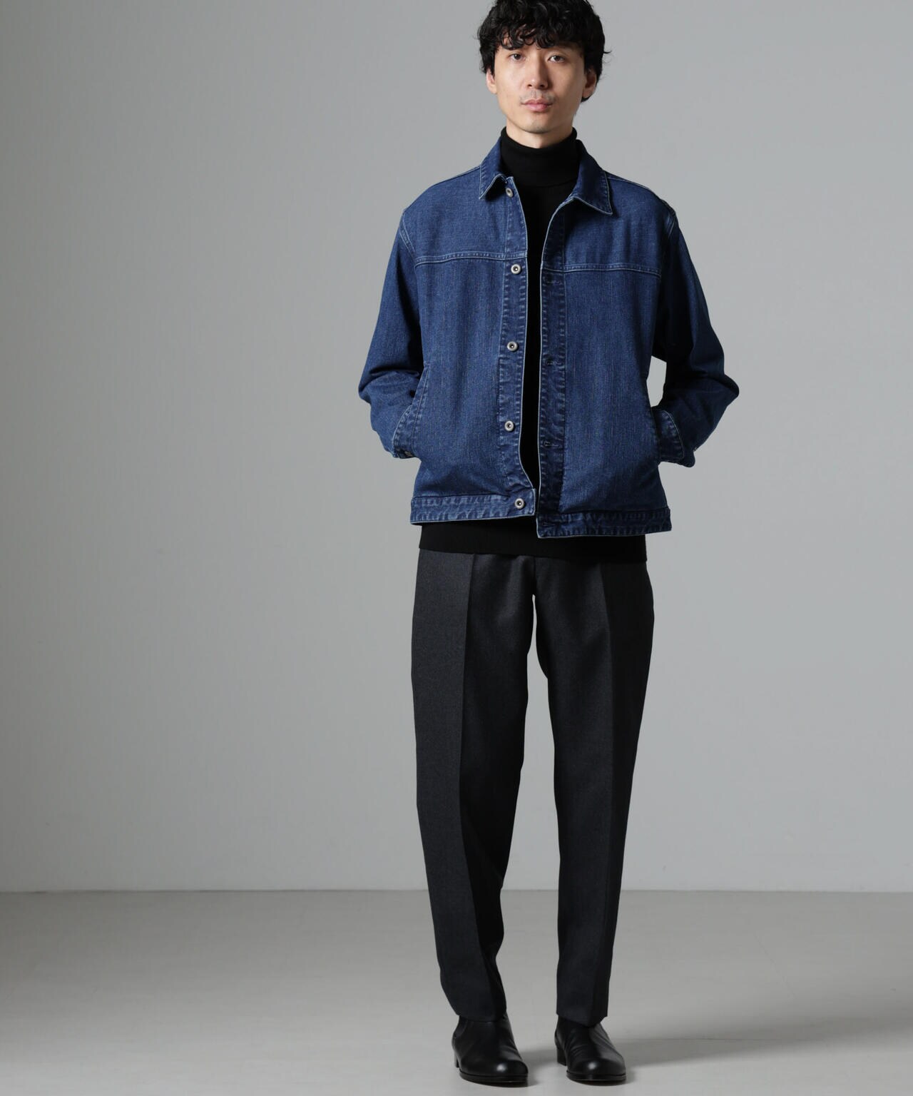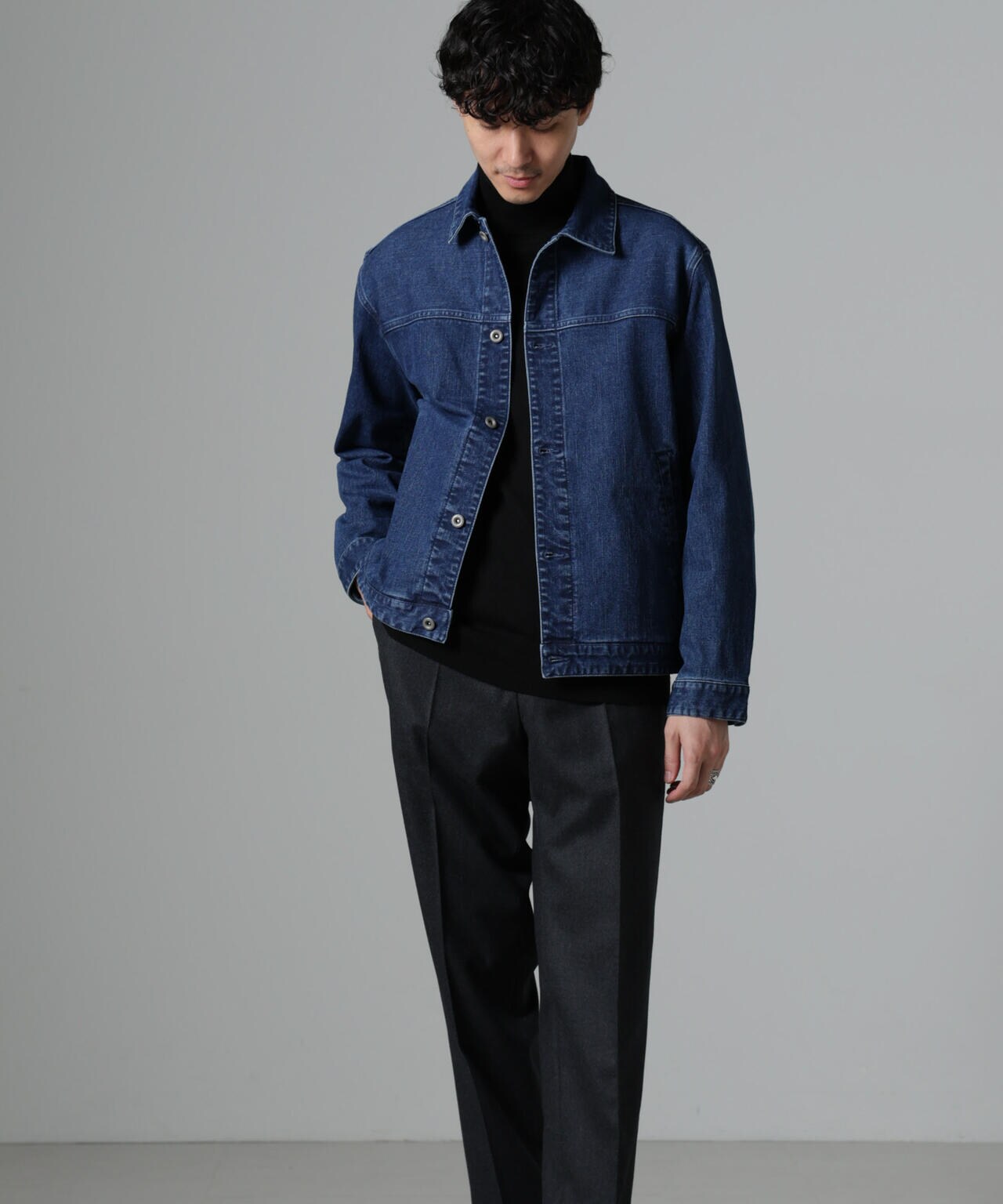 コンパクトなシルエットに仕上げたデニムブルゾン。伸縮性と回復性に優れた、肘抜けや型崩れしにくいライクラ混の素材を使用。ストレッチの効いた快適な履き心地が魅力のハイブリットデニムブルゾンです。