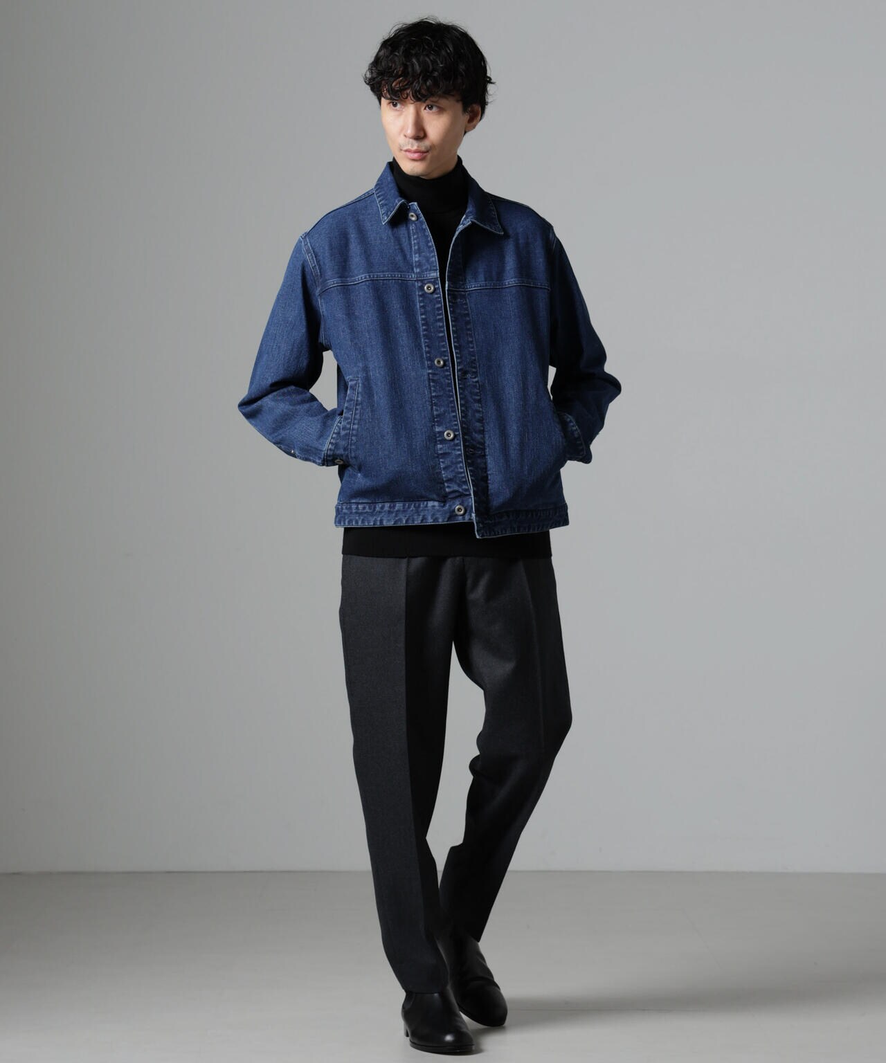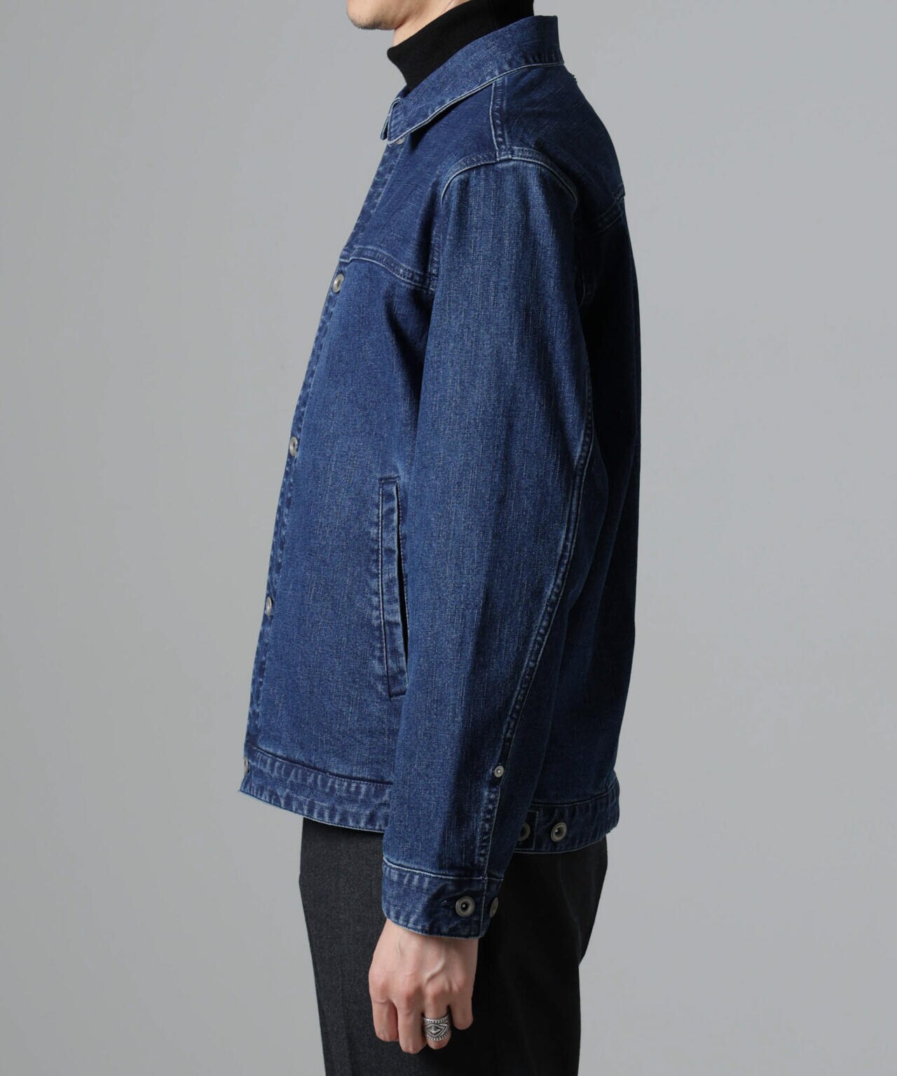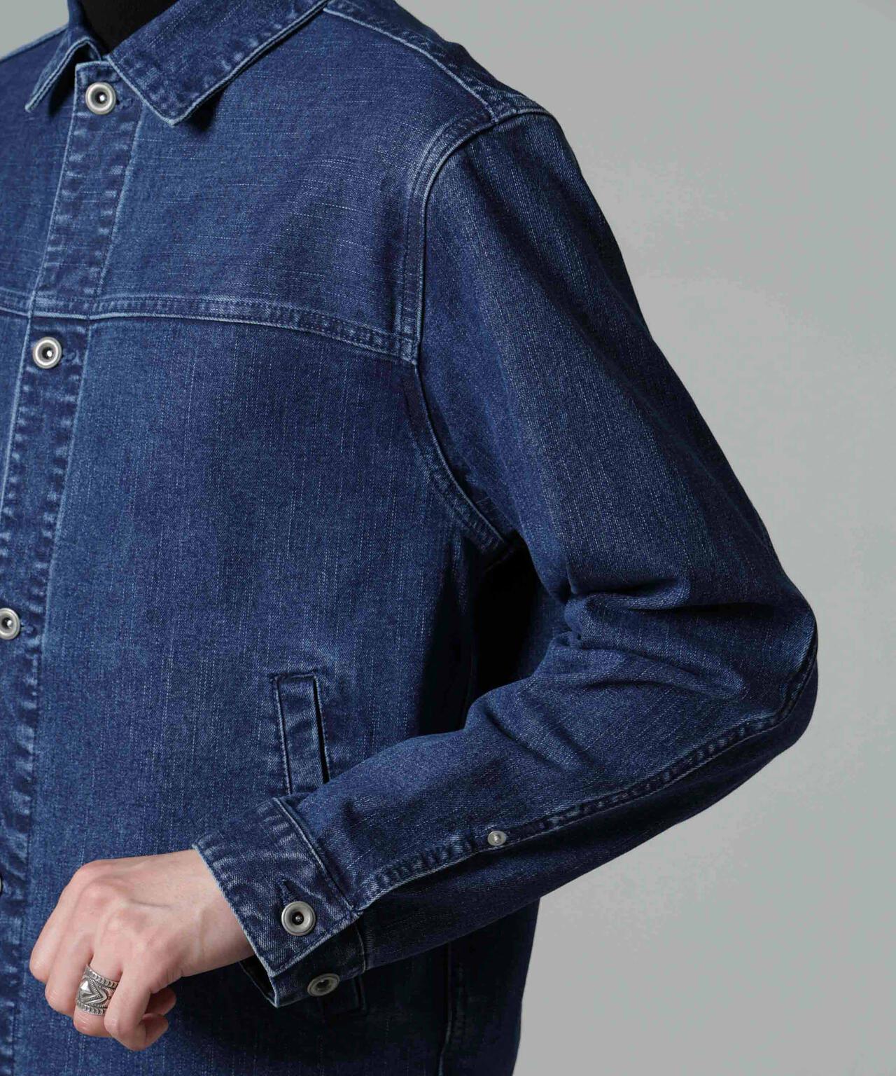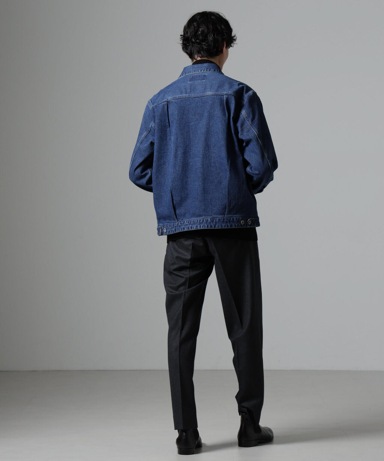 コンパクトなシルエットに仕上げたデニムブルゾン。伸縮性と回復性に優れた、肘抜けや型崩れしにくいライクラ混の素材を使用。ストレッチの効いた快適な履き心地が魅力のハイブリットデニムブルゾンです。