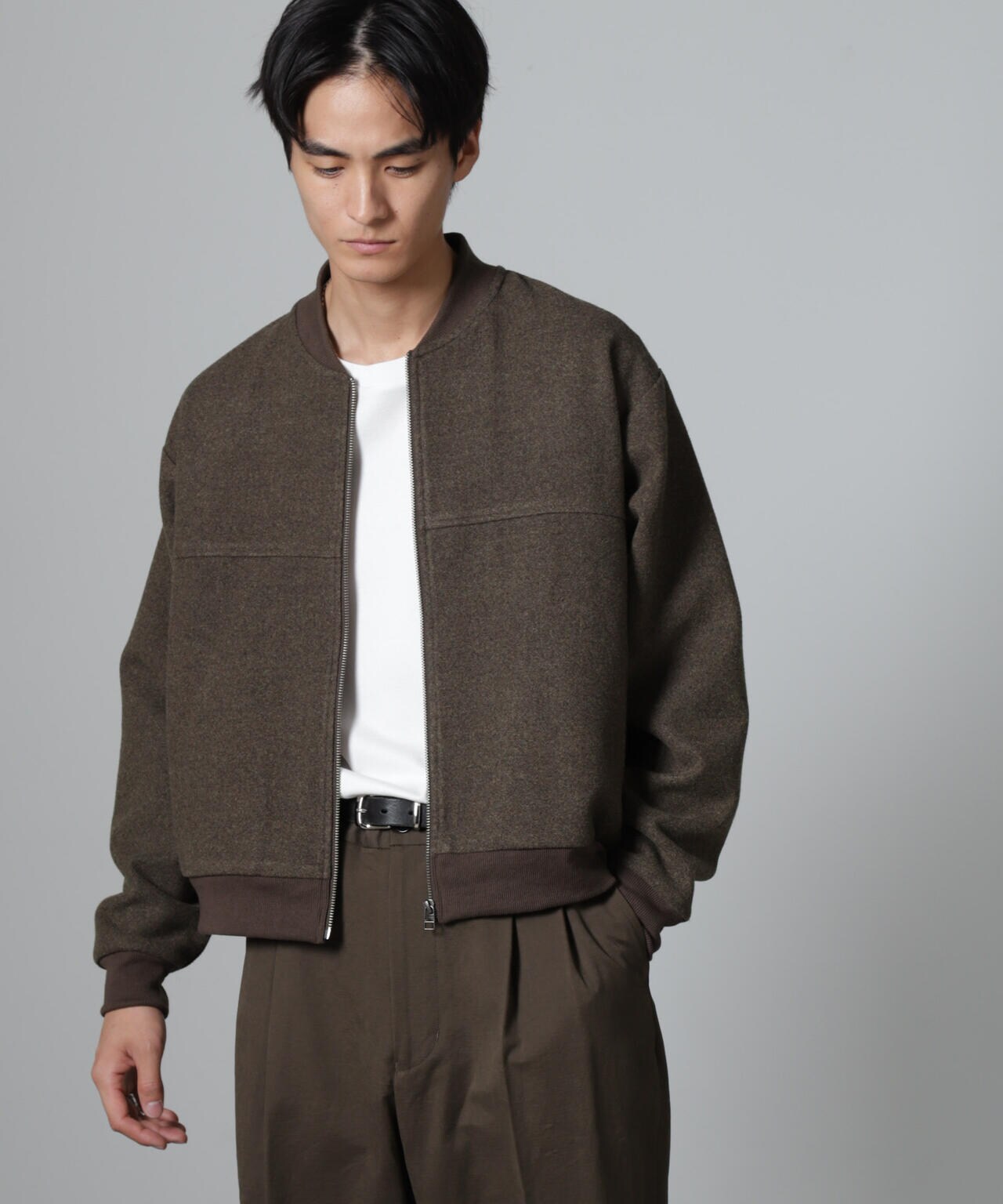 秋冬のムードを高める厚手のメルトン素材のブルゾン。前身頃の切り替えデザインがポイントの今季おすすめの1着です。