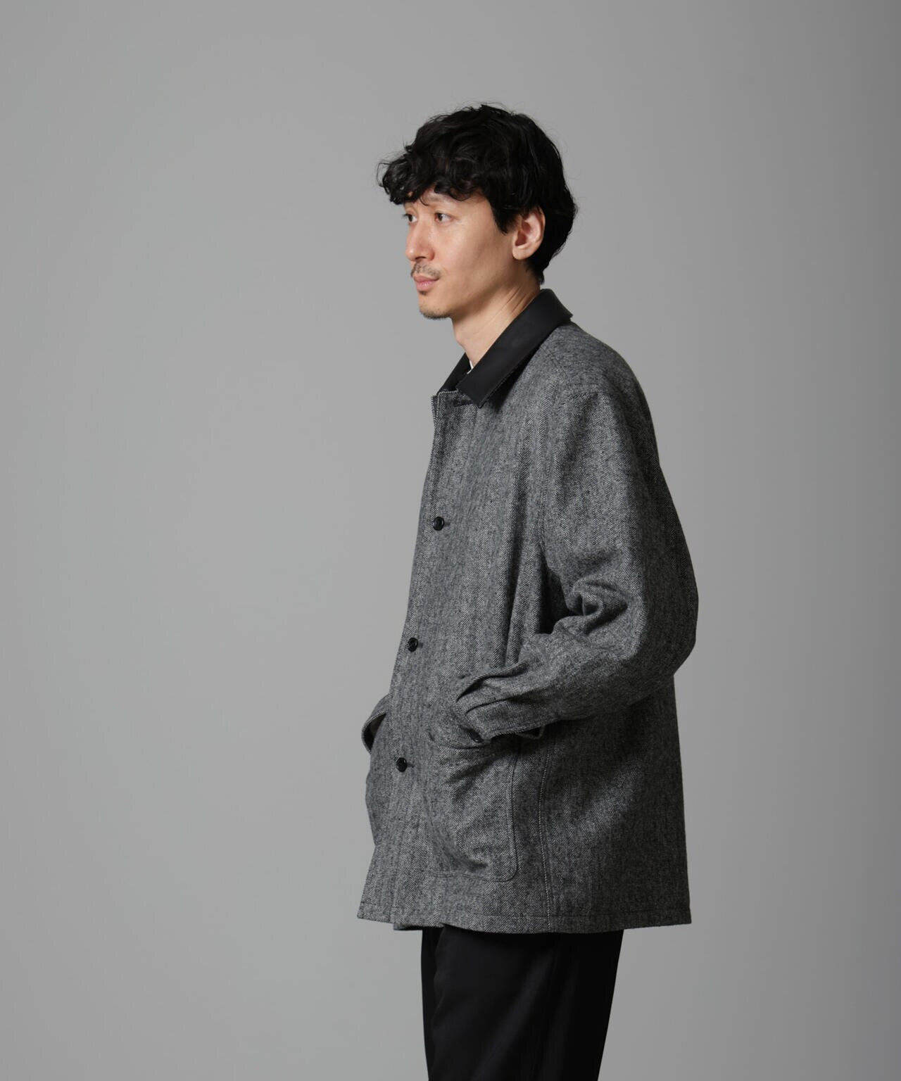 落ち着いた印象を与えるツイードカバージャケット。肉厚で重厚感のあるヘリンボーンツイードを採用し、保温性にも優れた1着です。