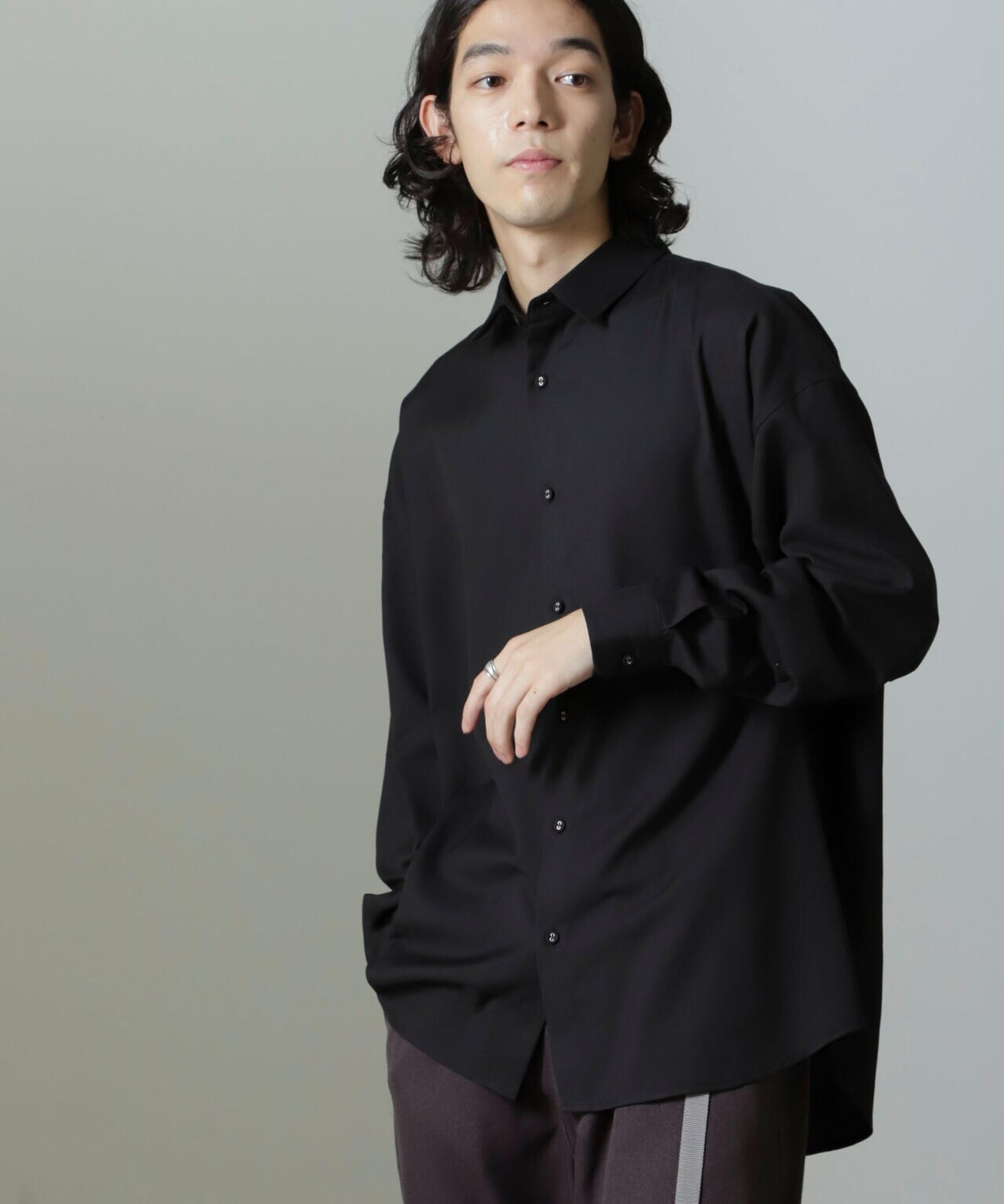 トレンド感のあるビックシルエットのドレープシャツ。合わせるパンツを選ばない着回しやすいシルエットが魅力で、タックインとの相性も◎今年らしい着こなしが楽しめるアイテムです。