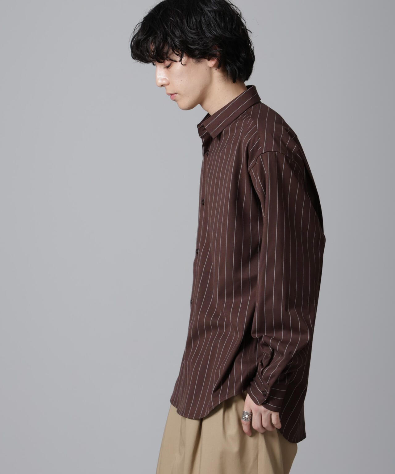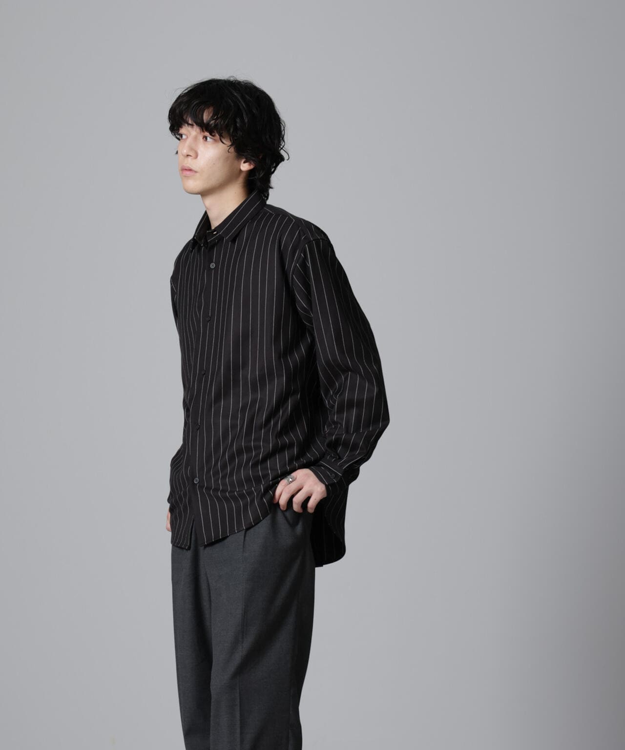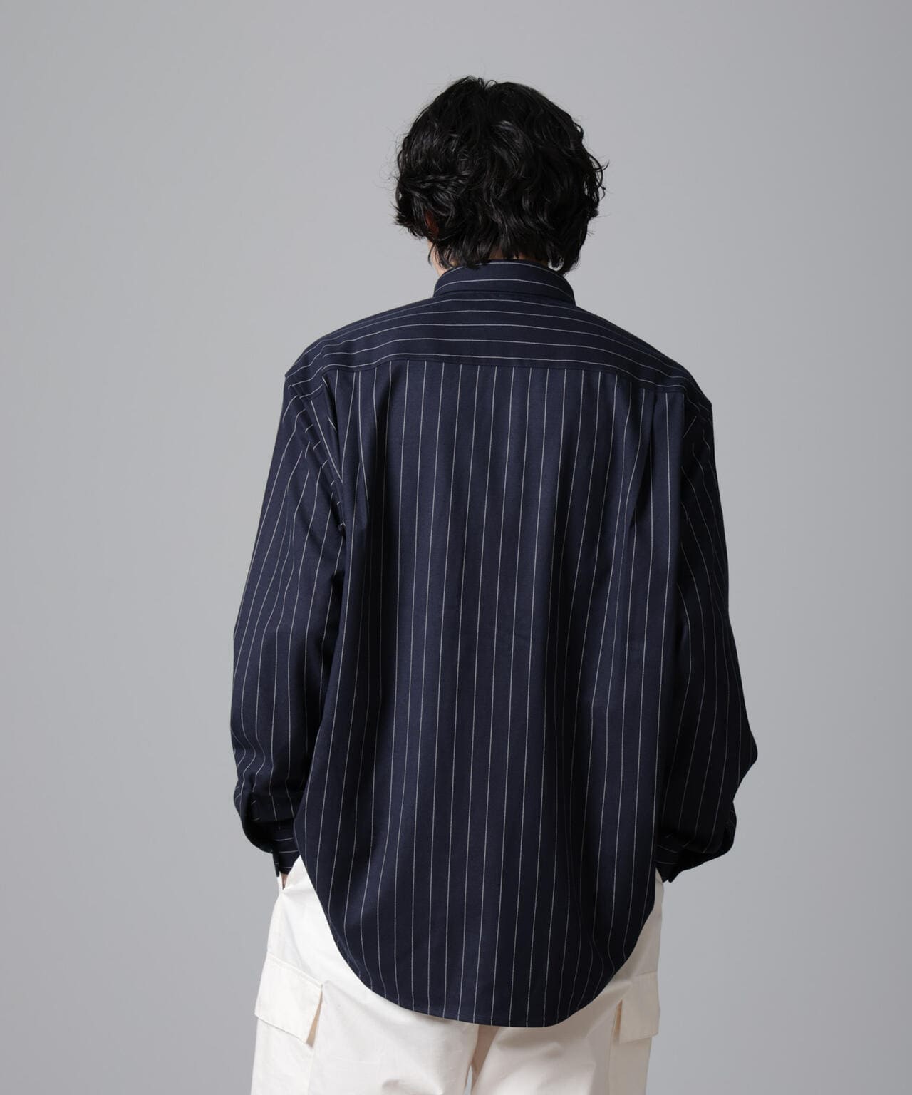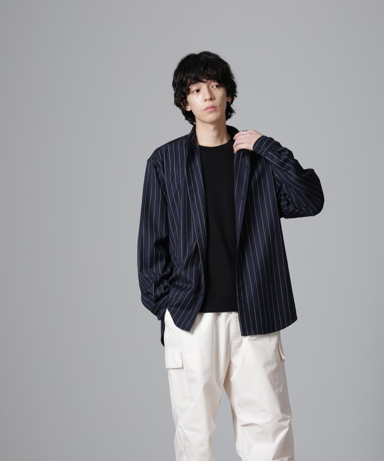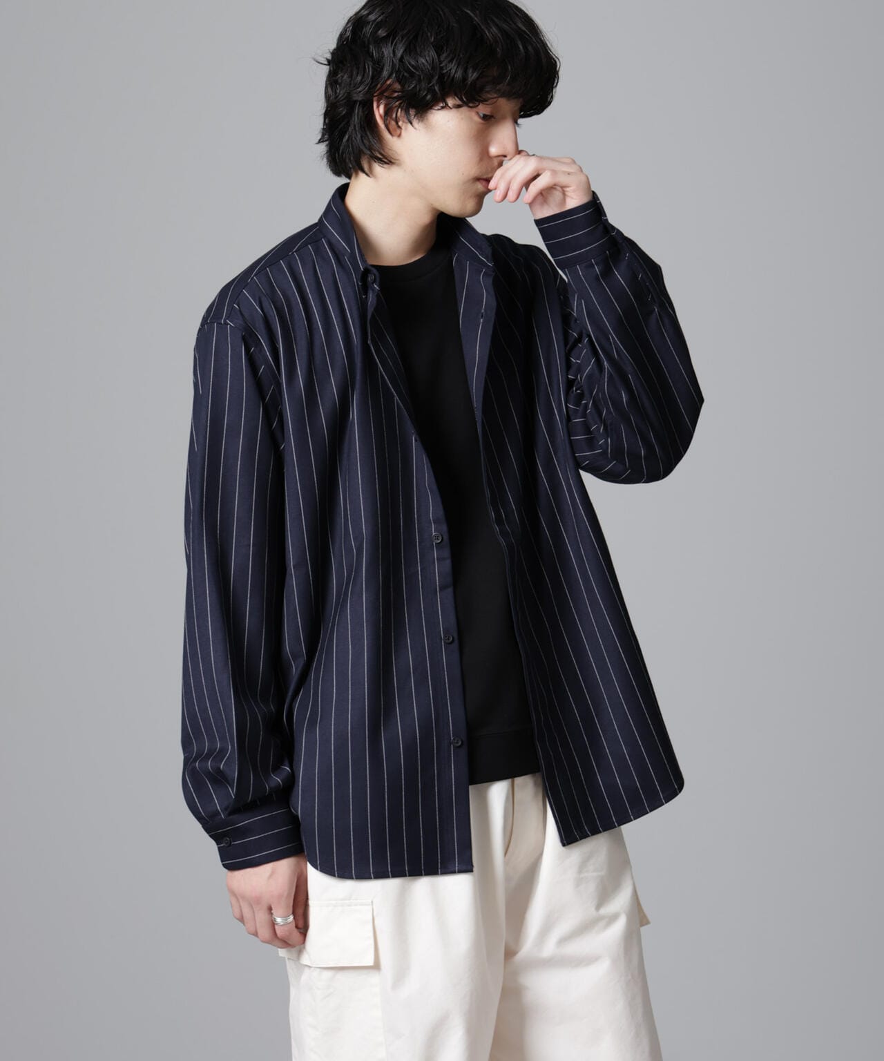 品のある微起毛素材とピンストライプが魅力のシャツ。1枚着としても羽織としてもサマになるアイテムです。