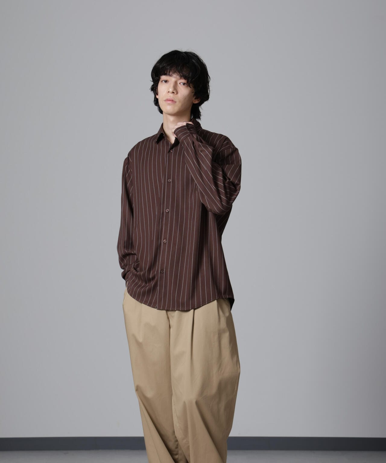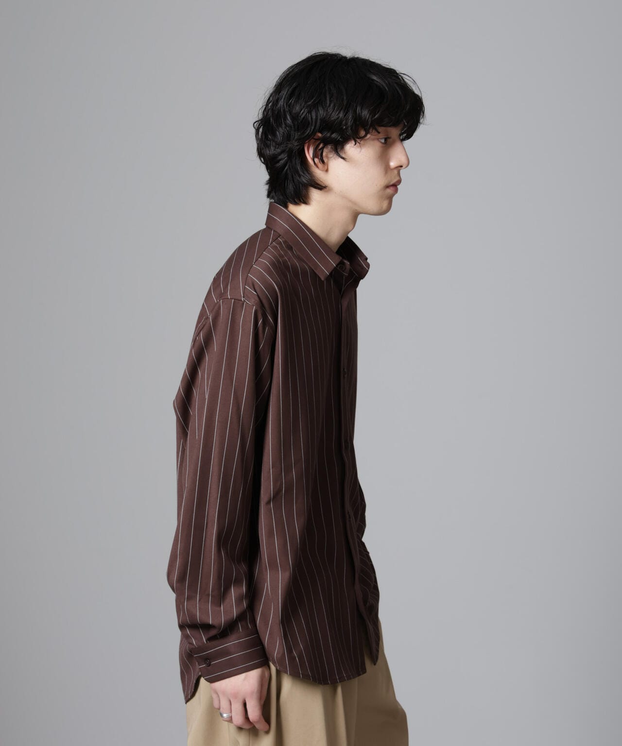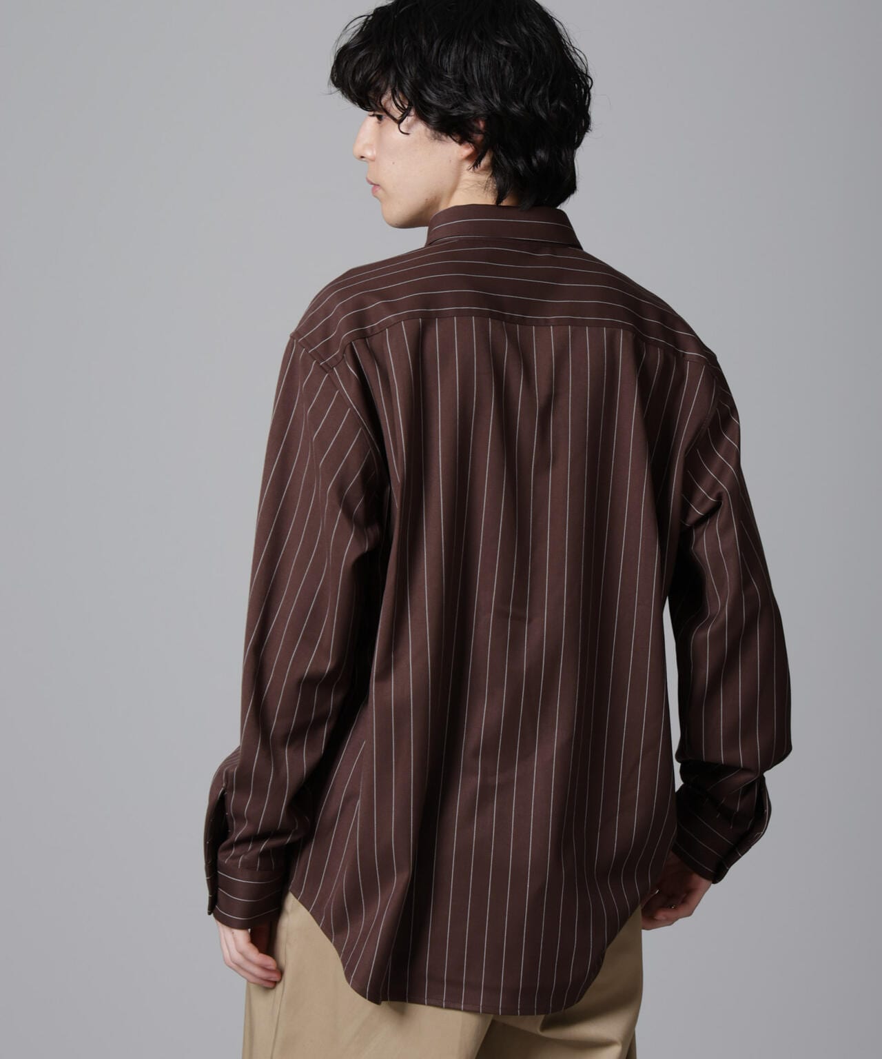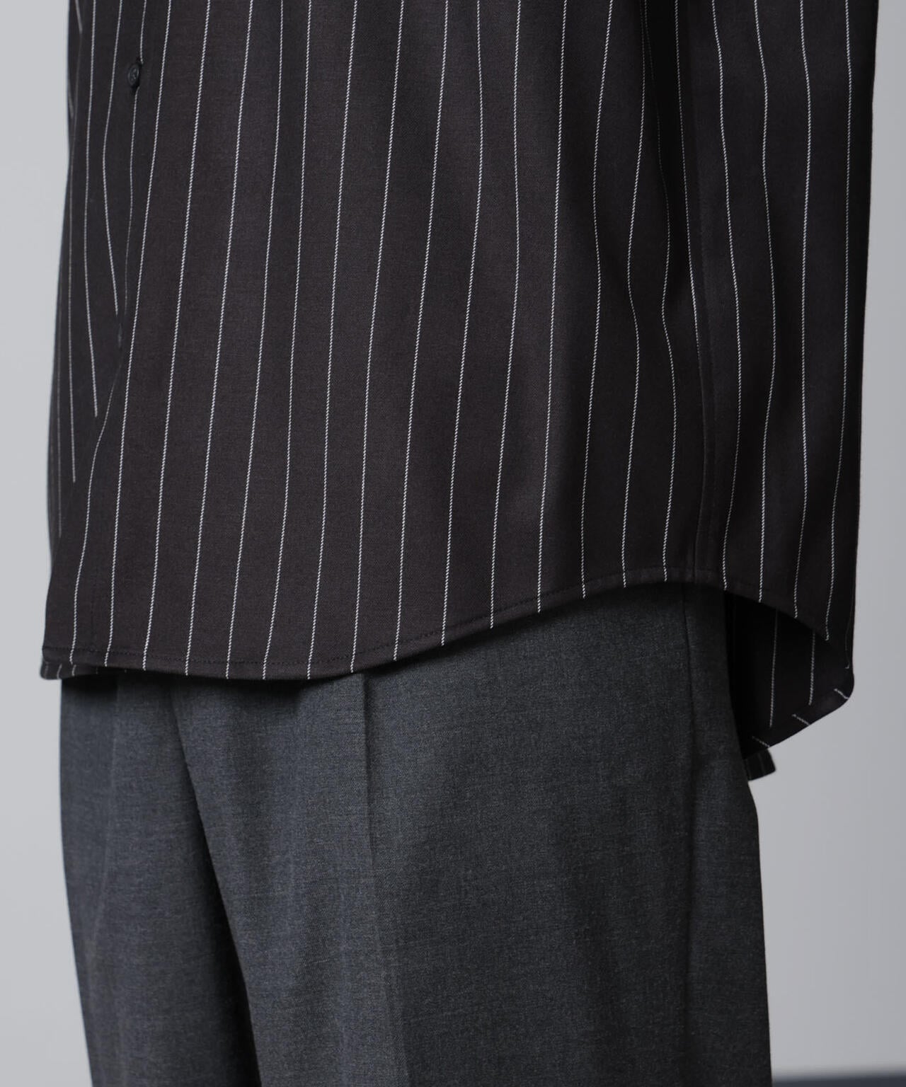 品のある微起毛素材とピンストライプが魅力のシャツ。1枚着としても羽織としてもサマになるアイテムです。