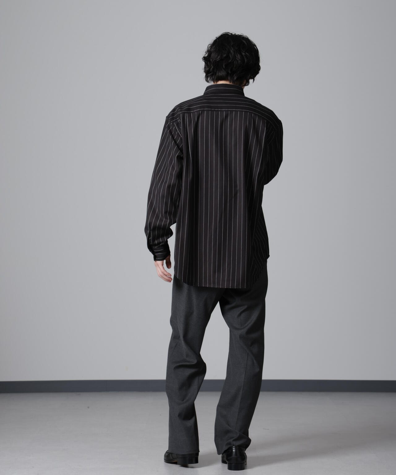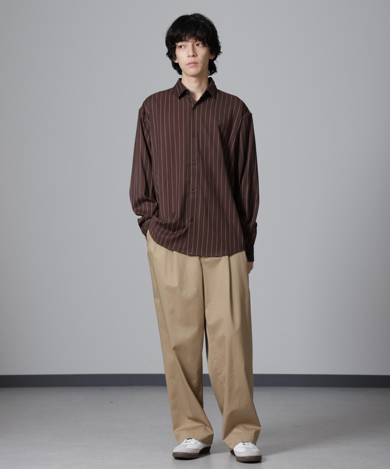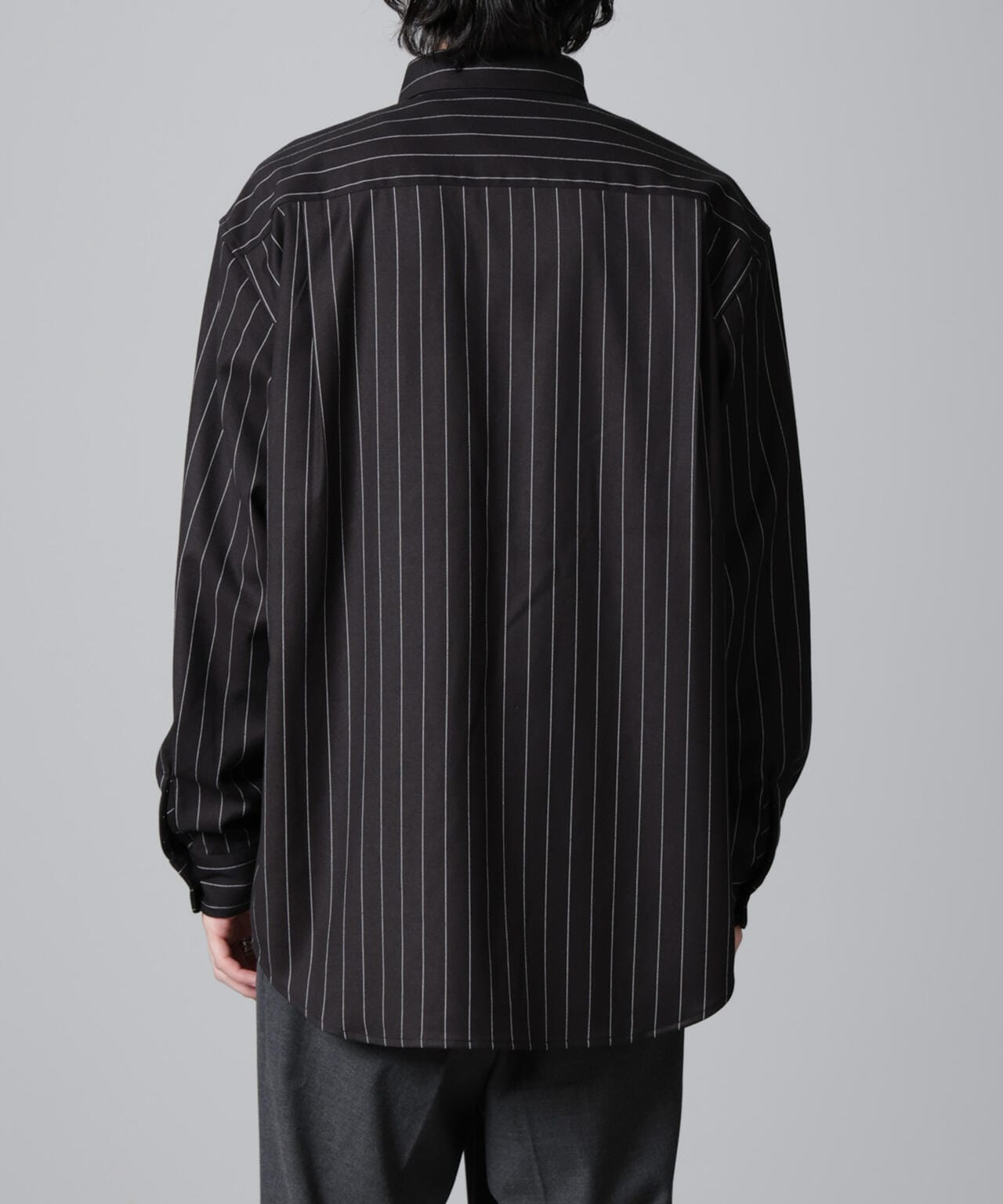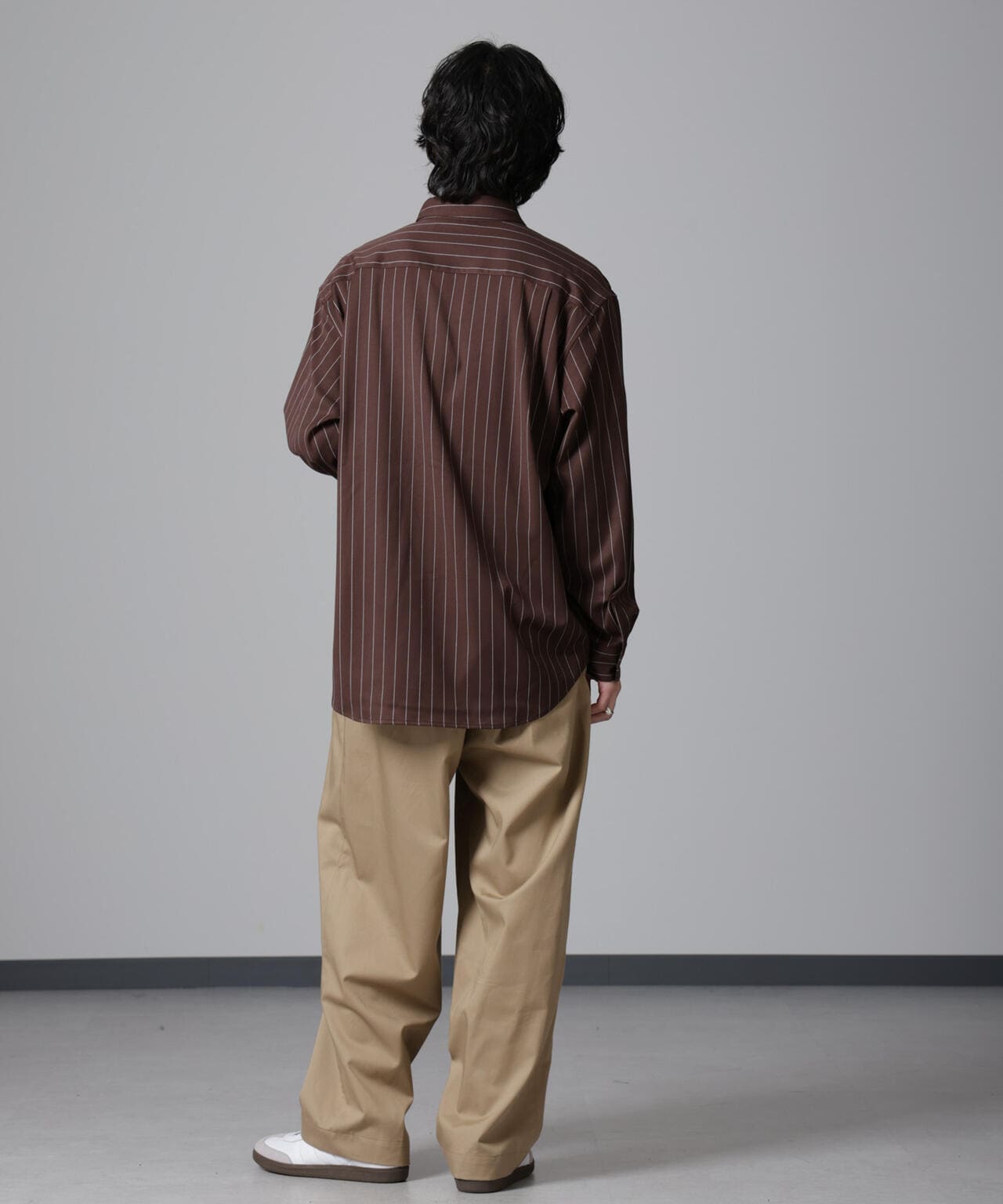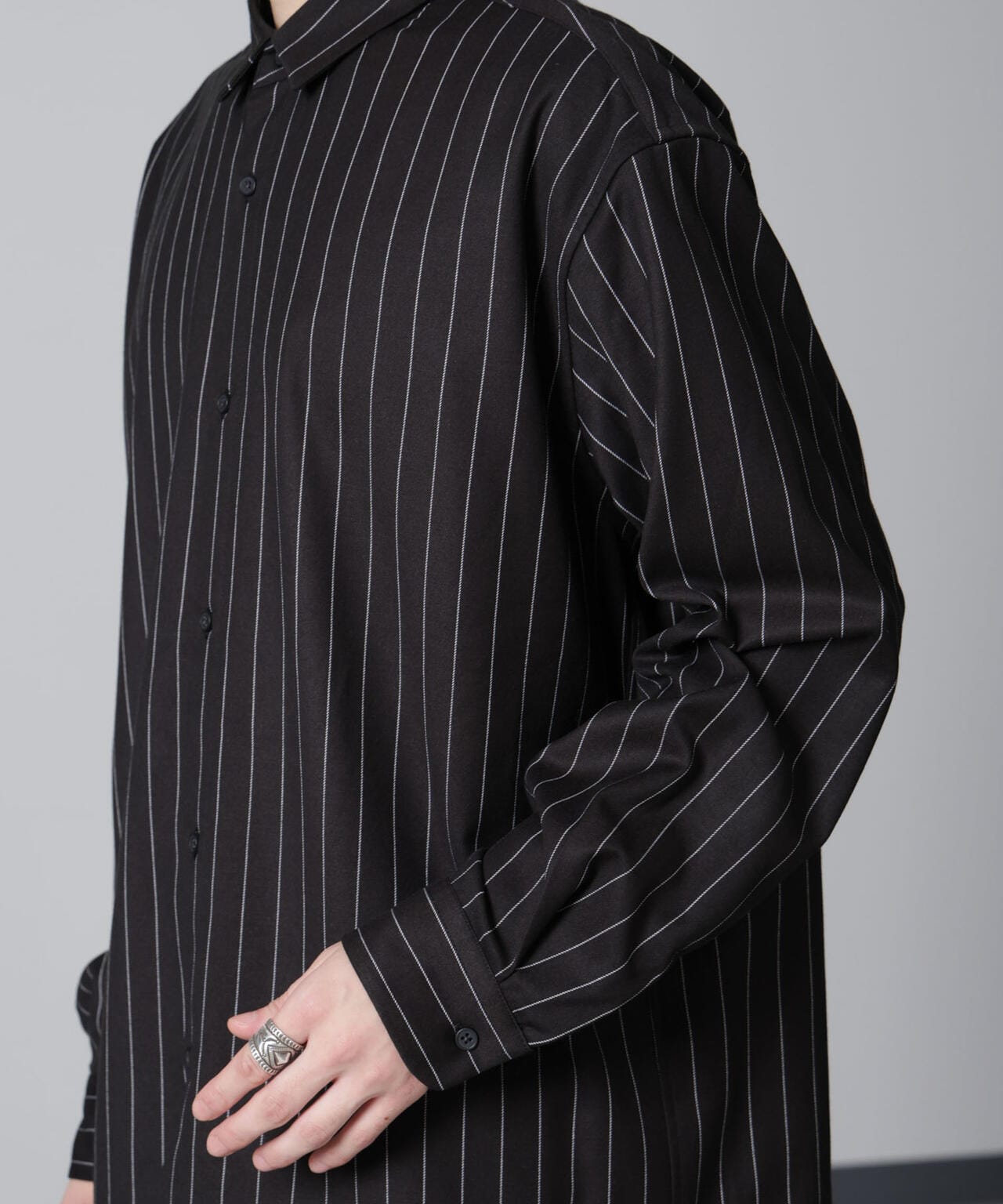 品のある微起毛素材とピンストライプが魅力のシャツ。1枚着としても羽織としてもサマになるアイテムです。