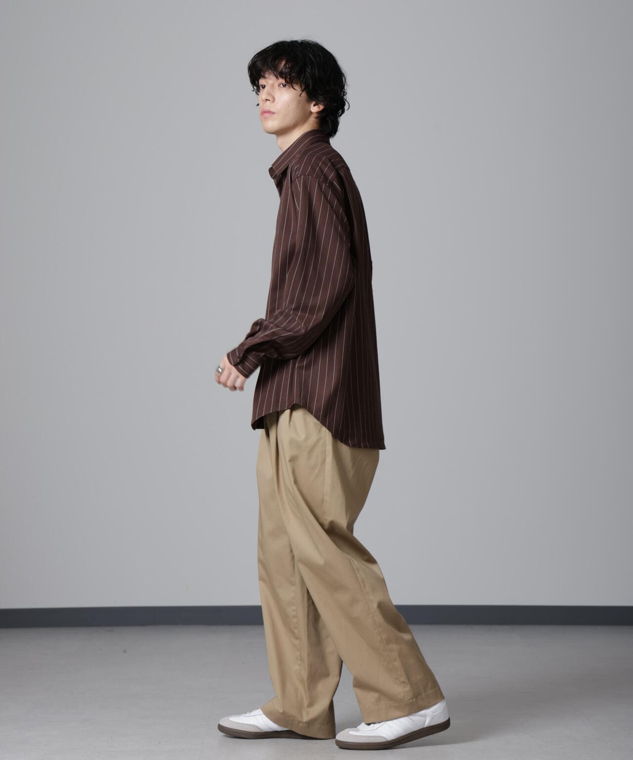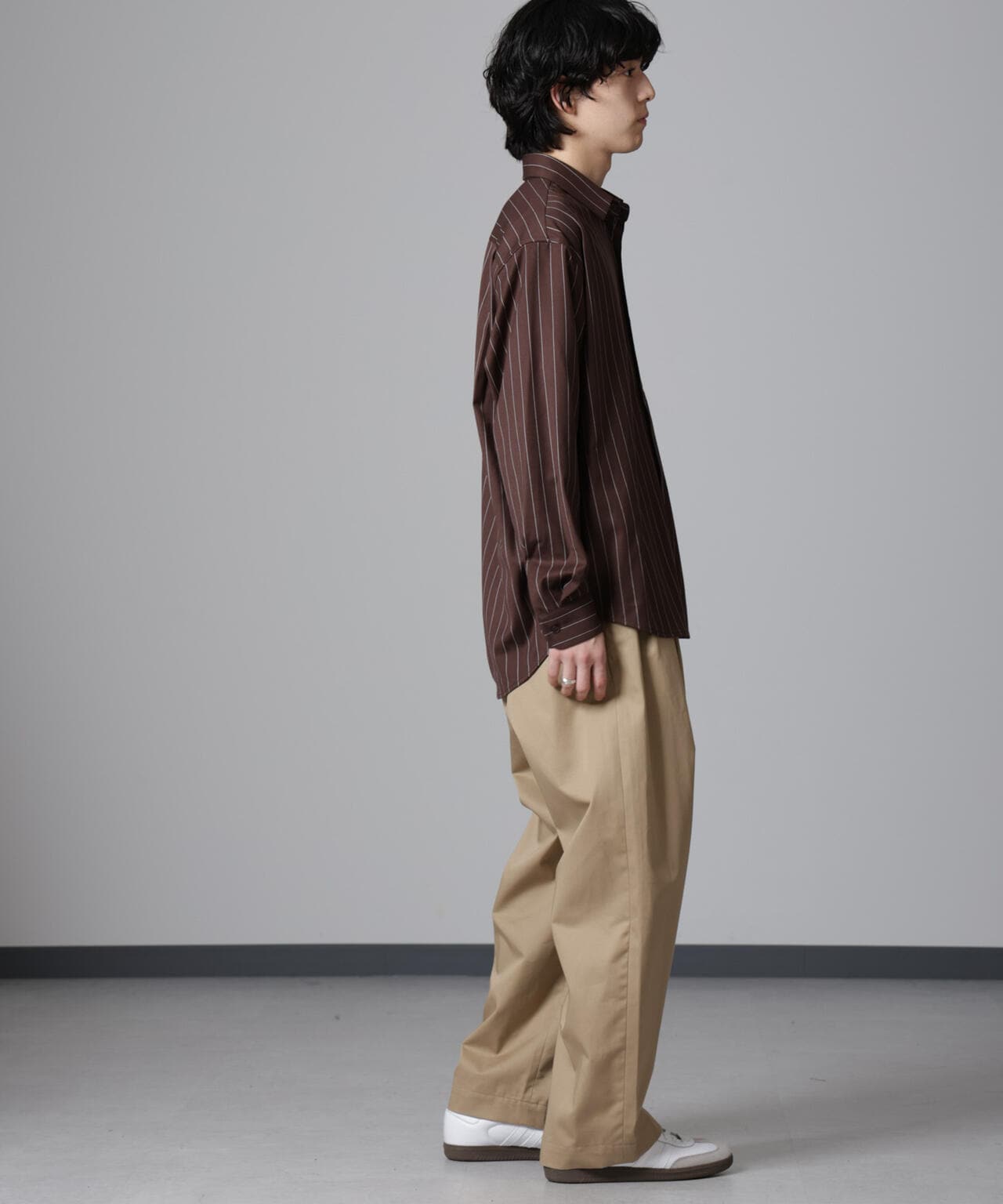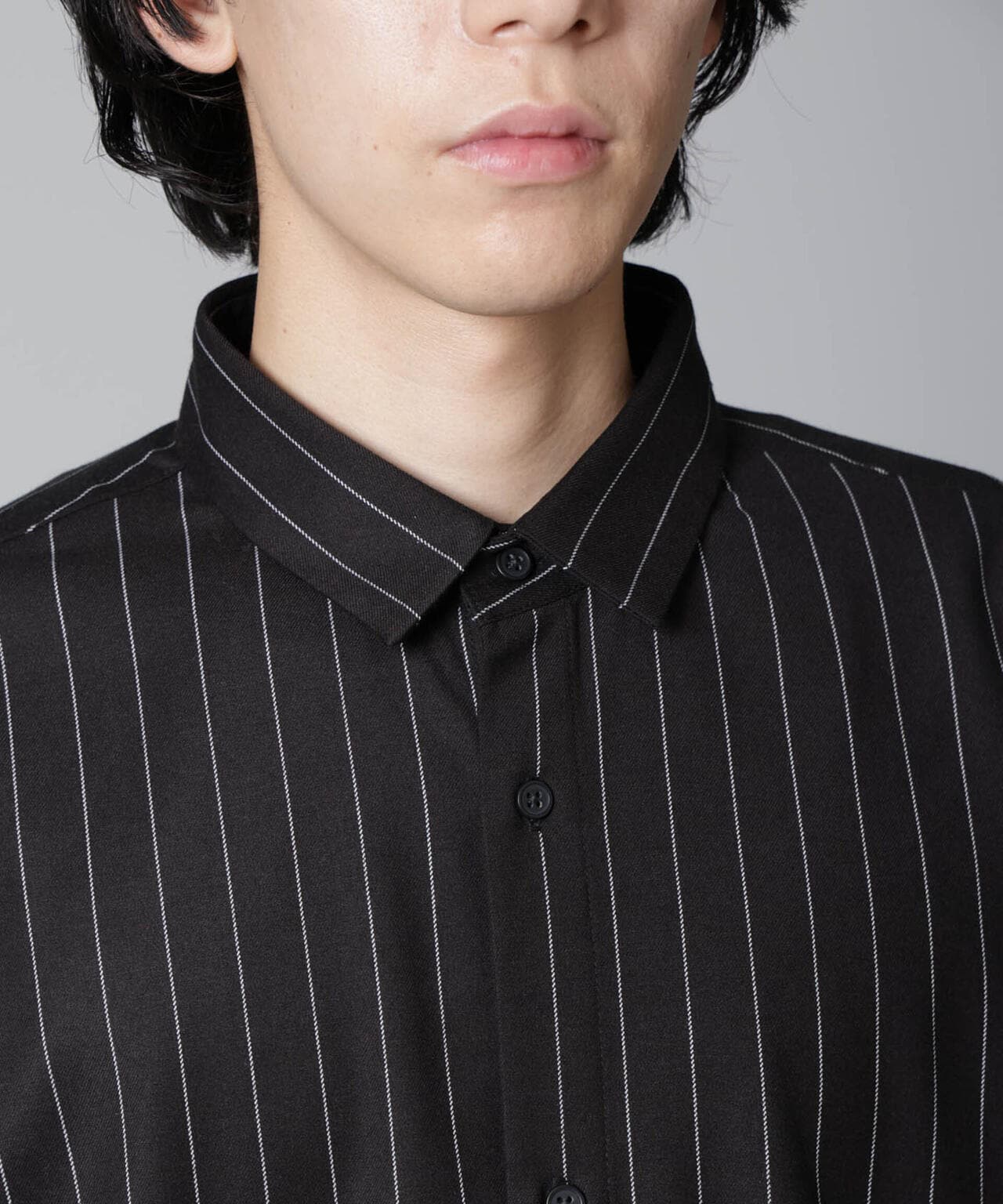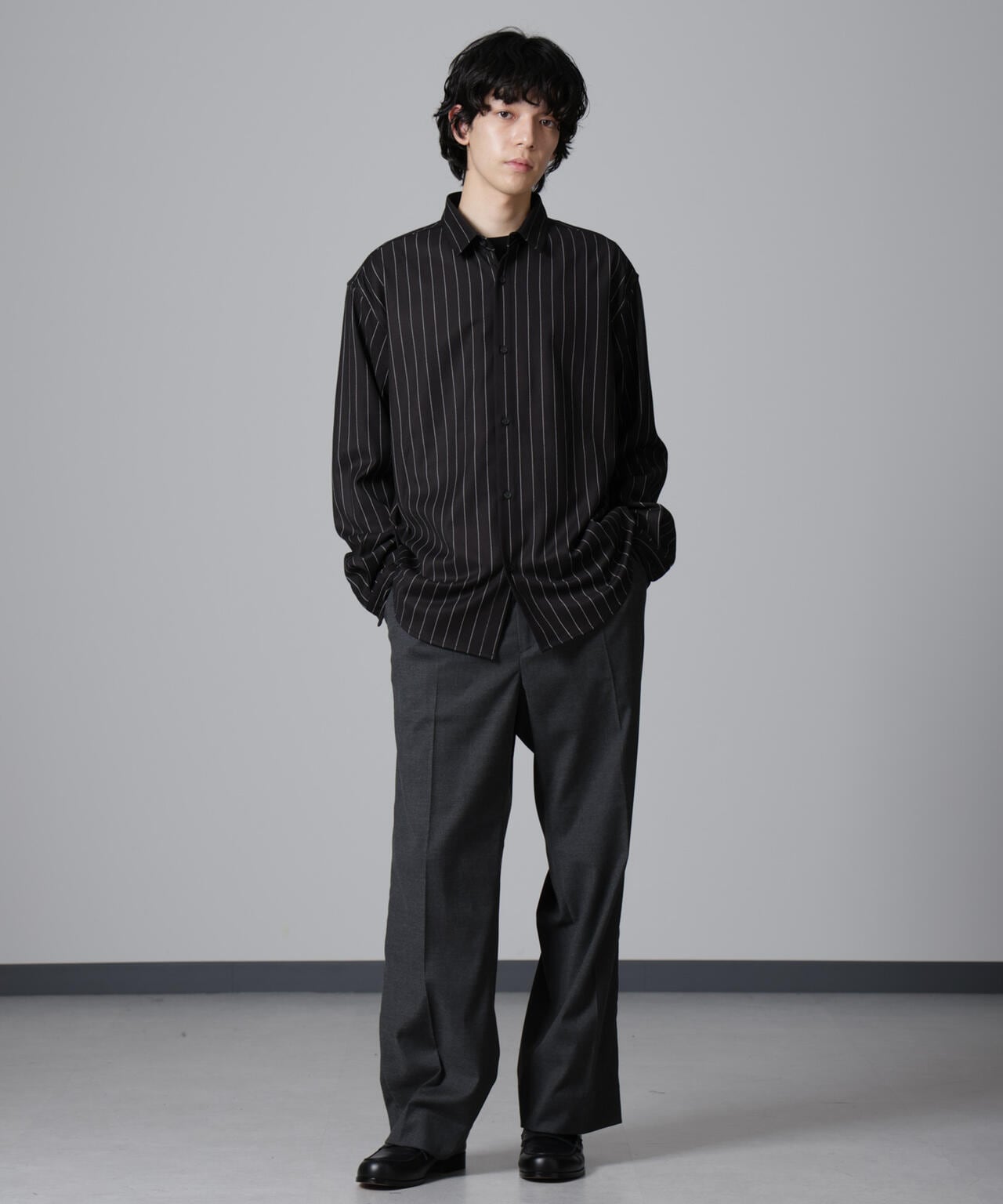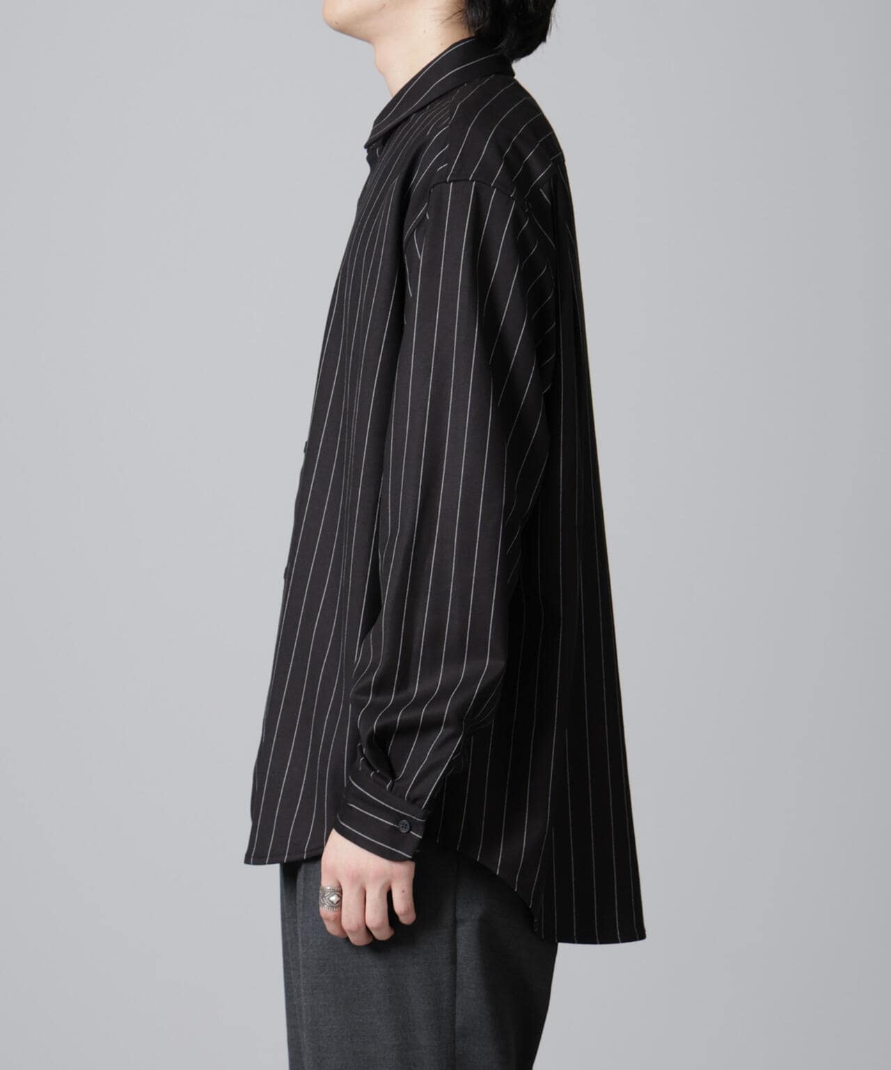 品のある微起毛素材とピンストライプが魅力のシャツ。1枚着としても羽織としてもサマになるアイテムです。