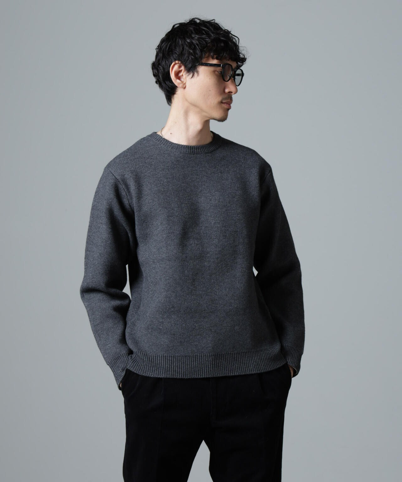 1枚できれい見えを実現するクルーネックニット。学校行事などカジュアル過ぎない服装が求められるシーンに最適の1枚。