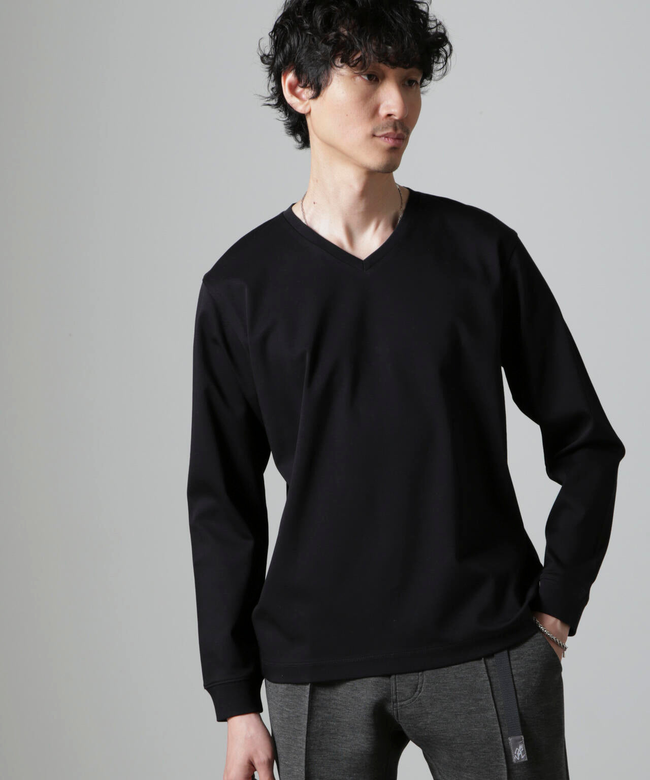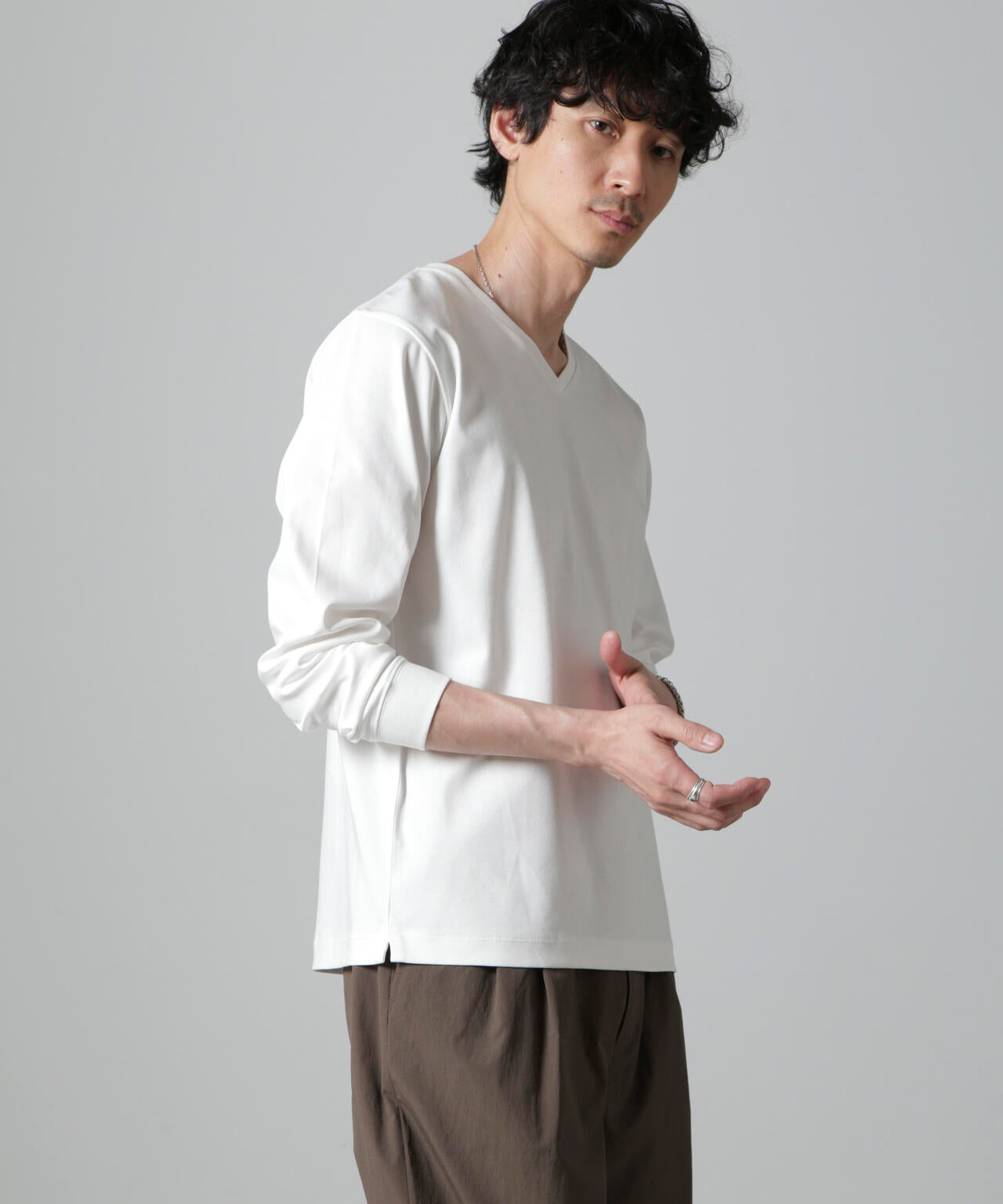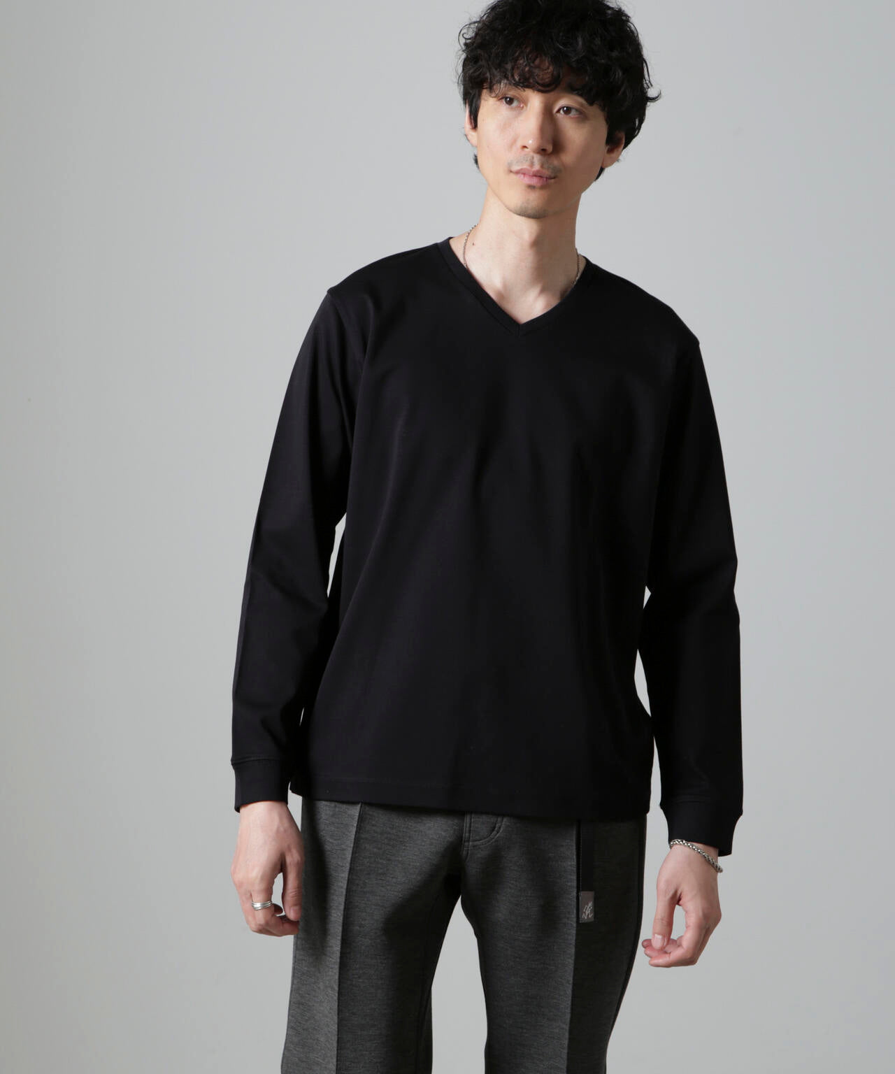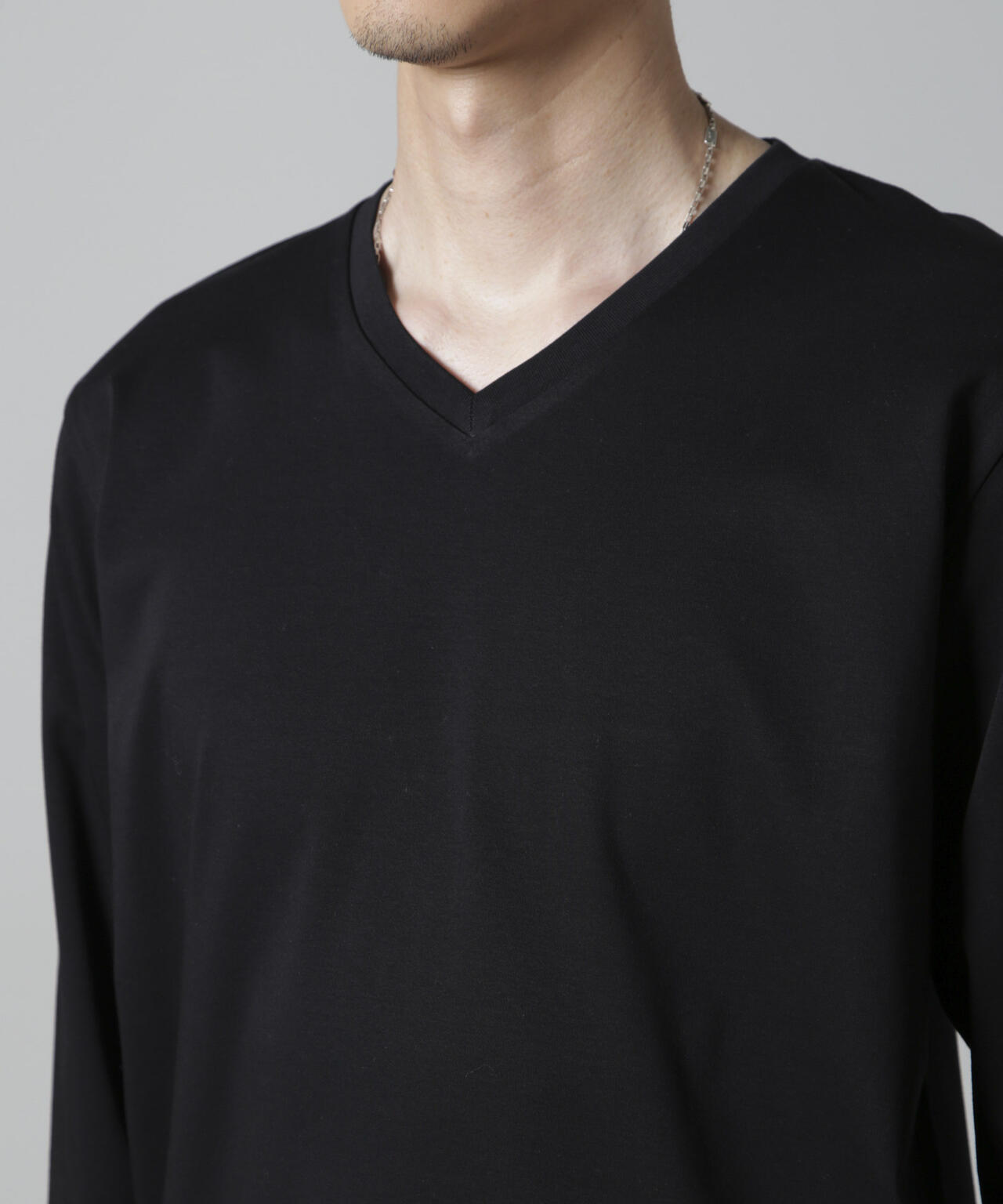 ・開きすぎないVネックデザインで幅広いスタイルにマッチ