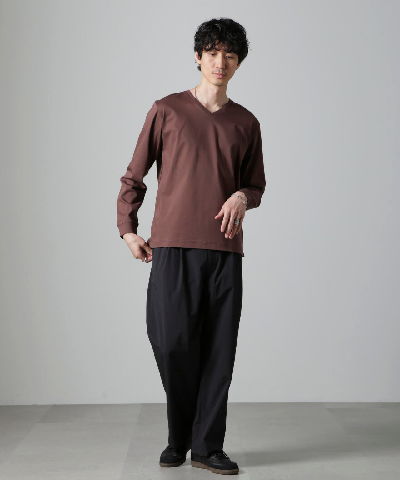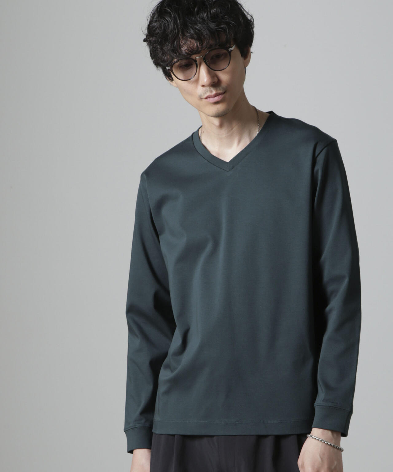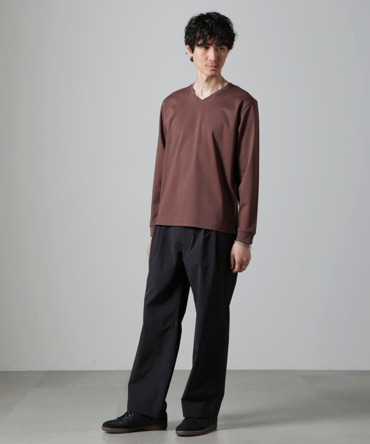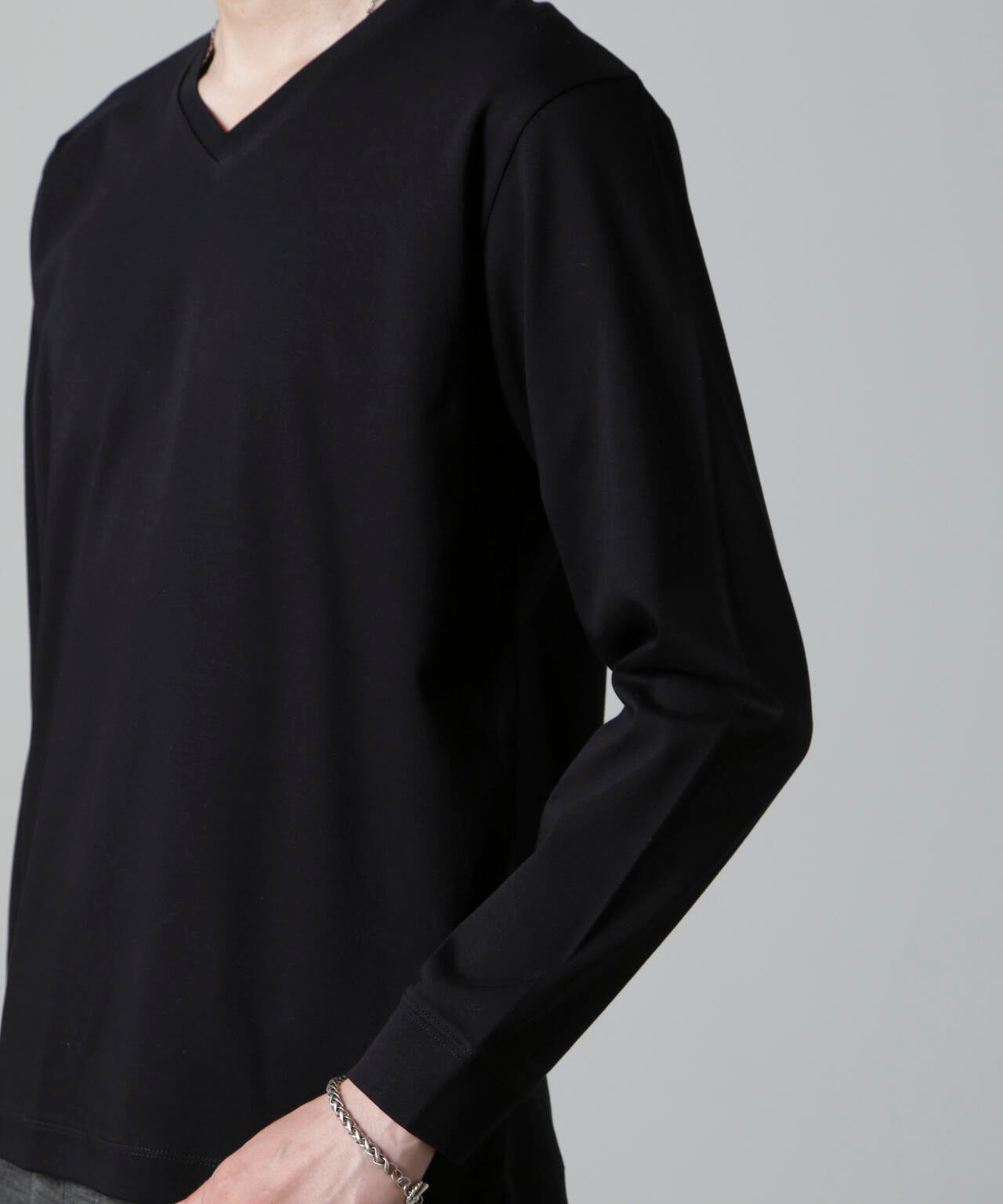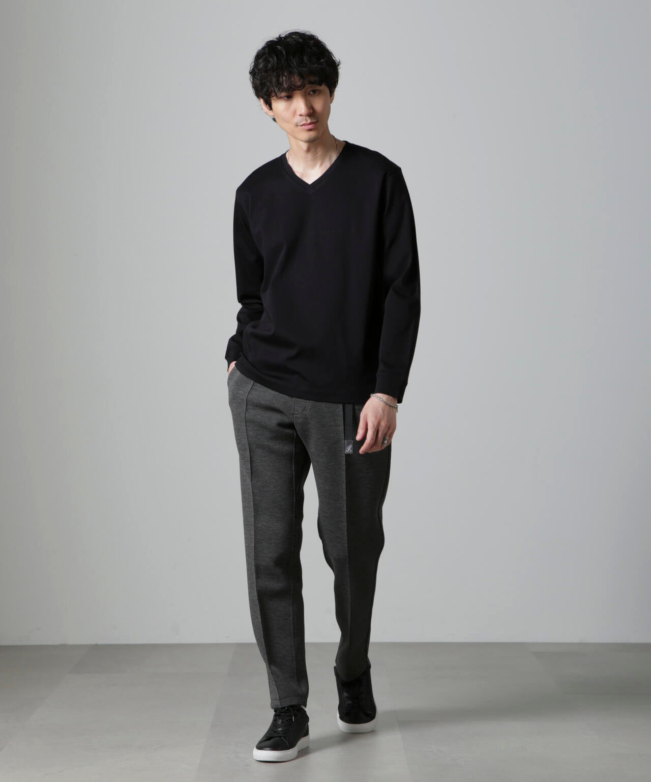 ・開きすぎないVネックデザインで幅広いスタイルにマッチ