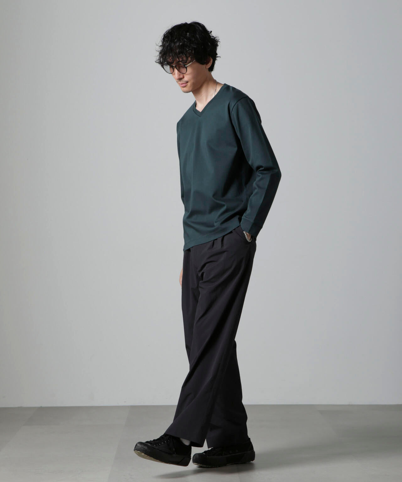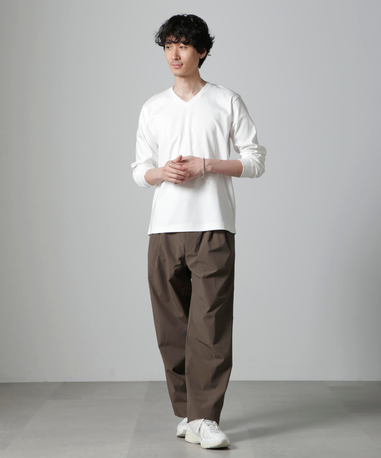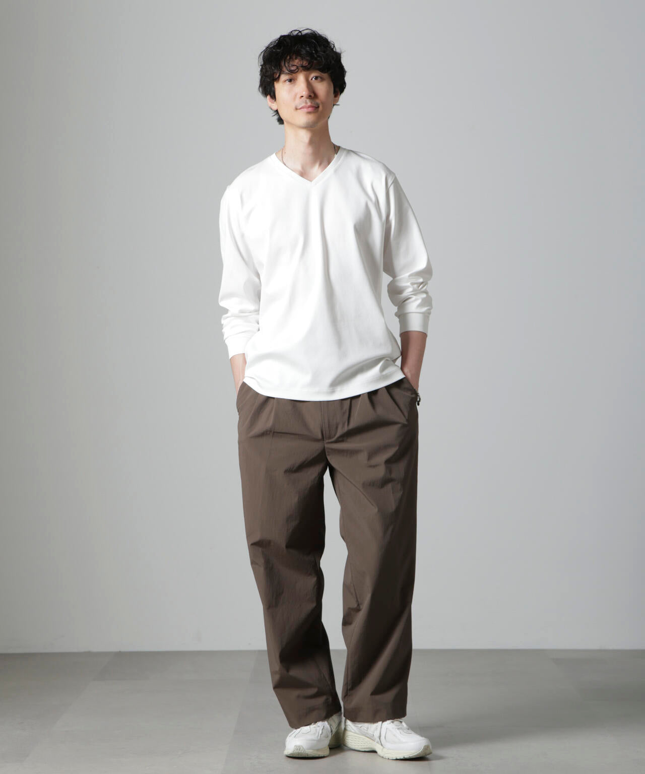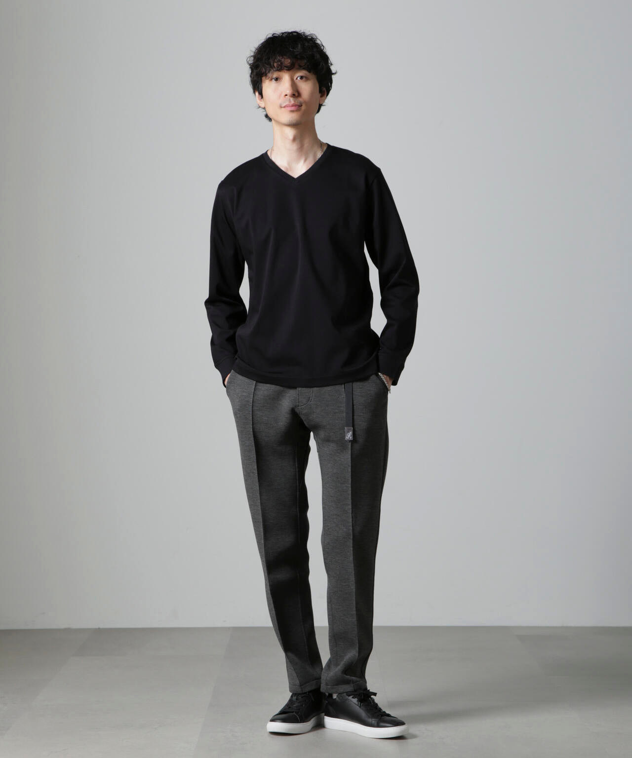 ・開きすぎないVネックデザインで幅広いスタイルにマッチ