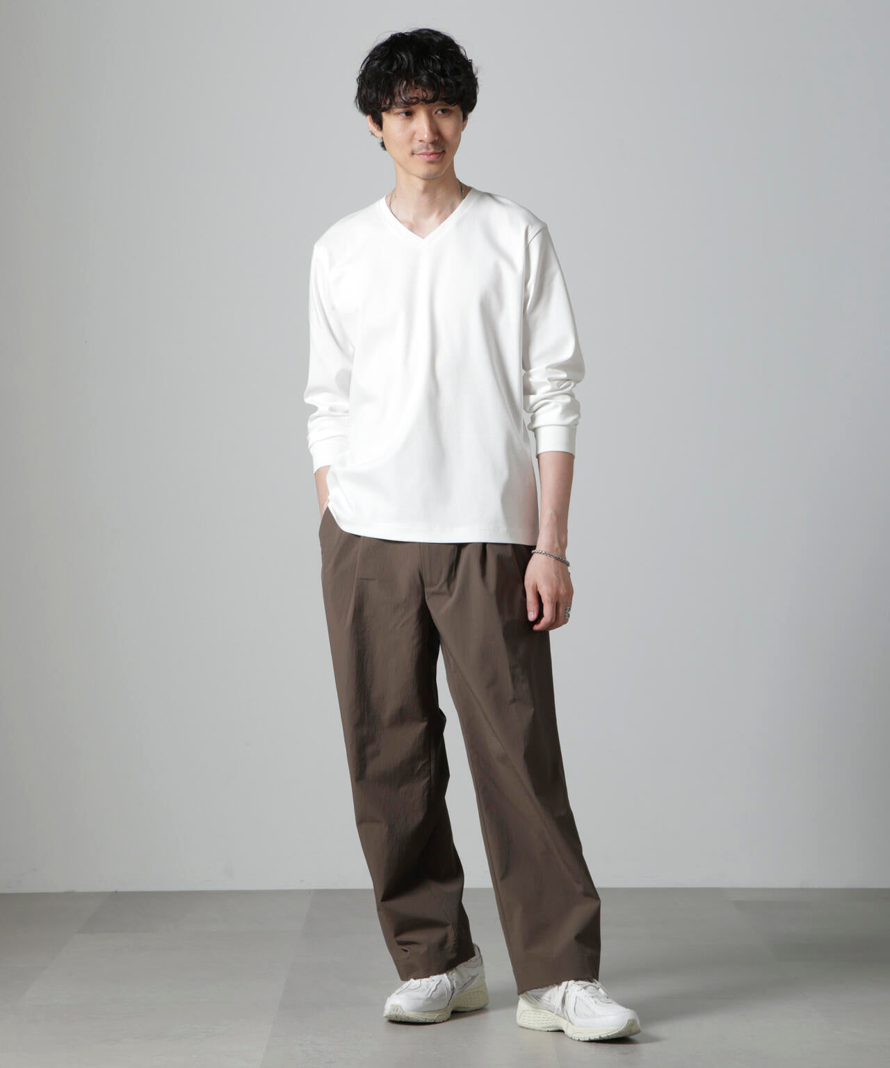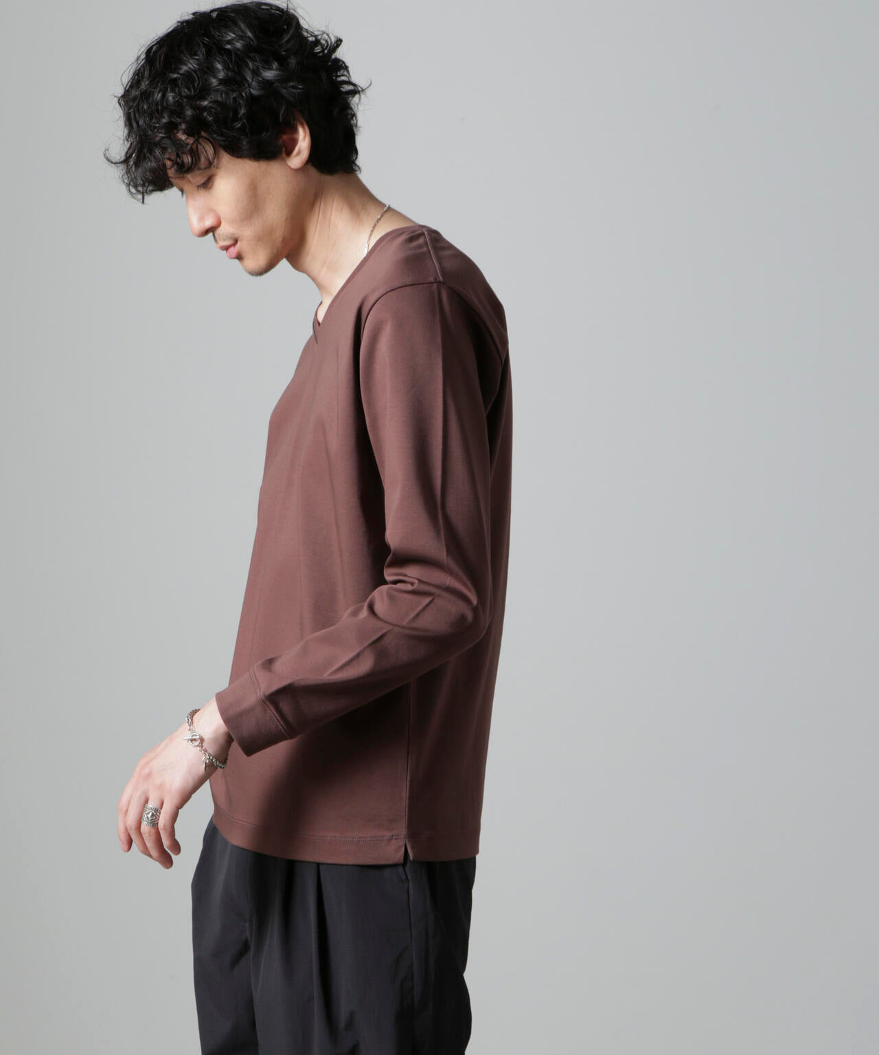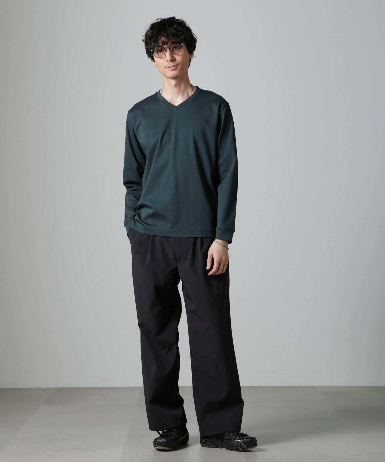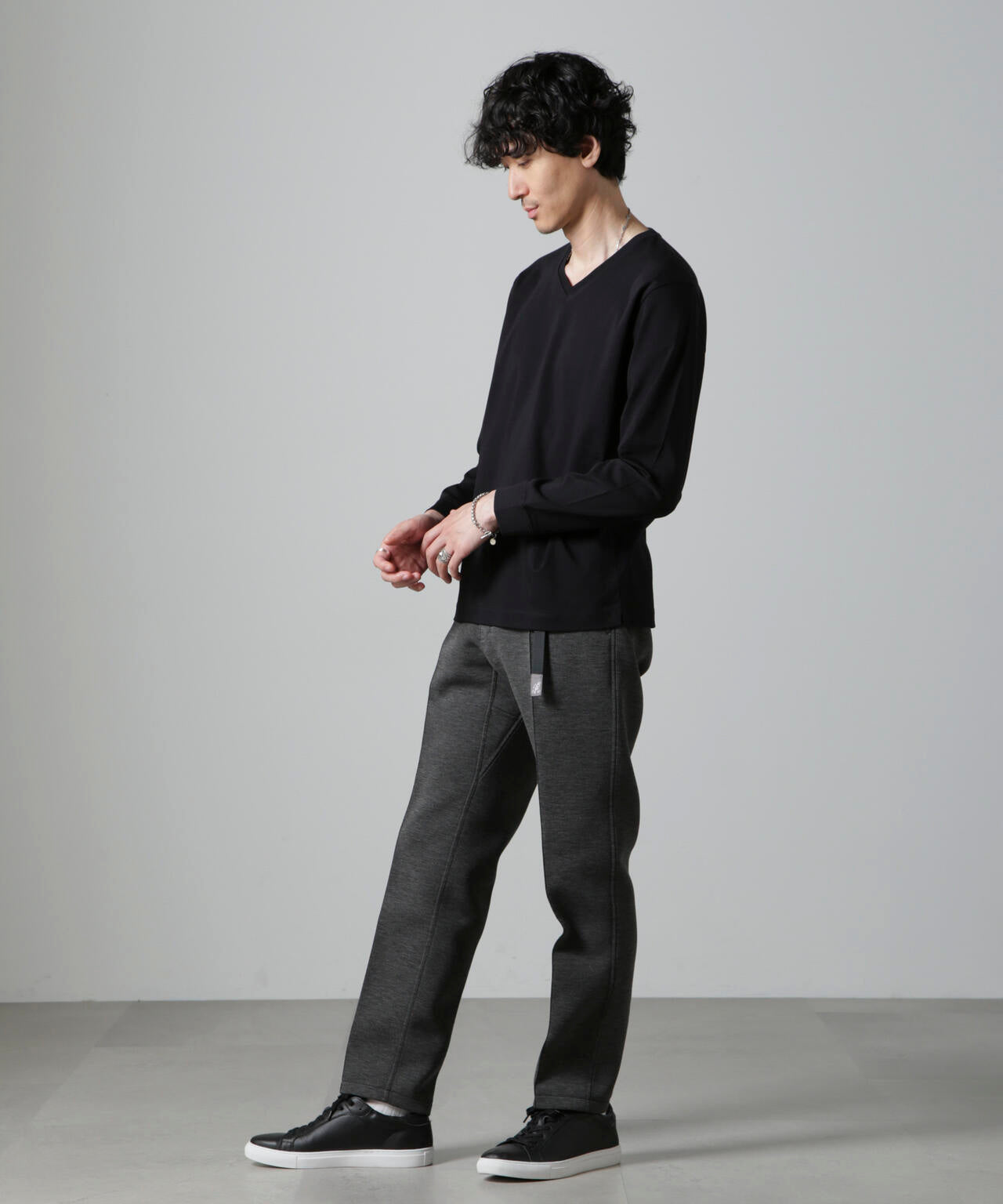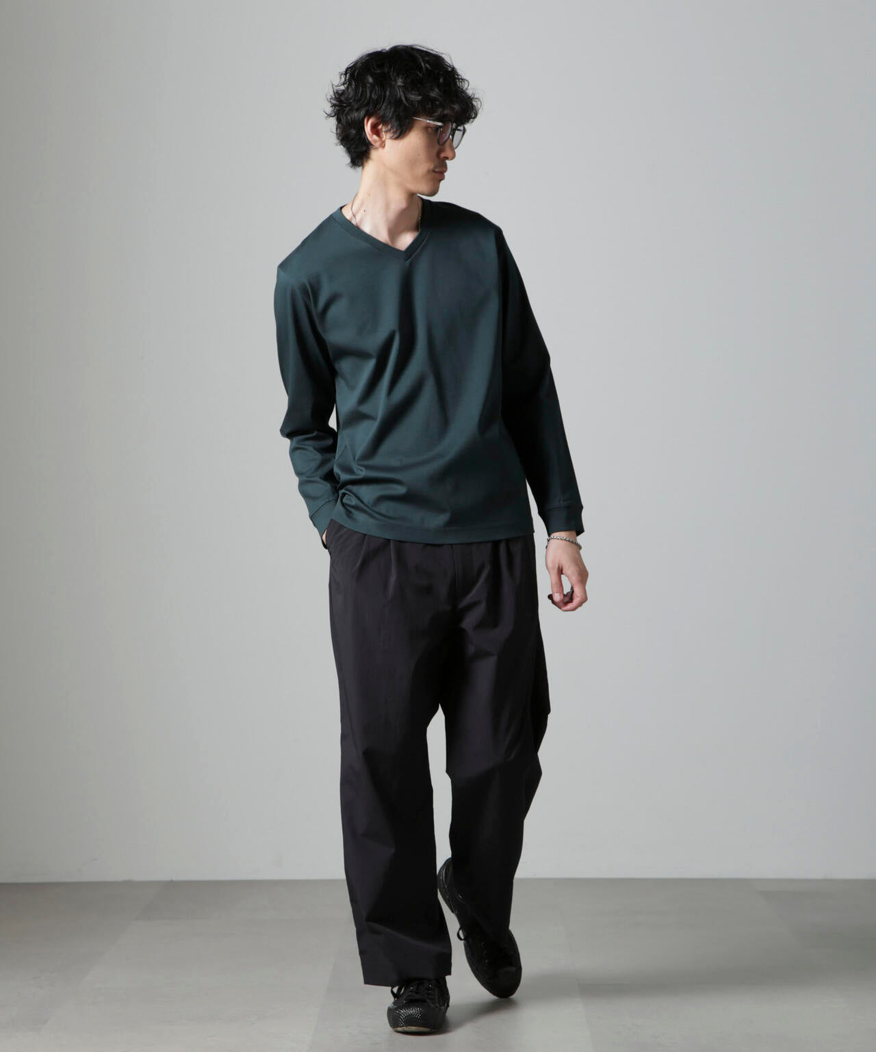 ・開きすぎないVネックデザインで幅広いスタイルにマッチ