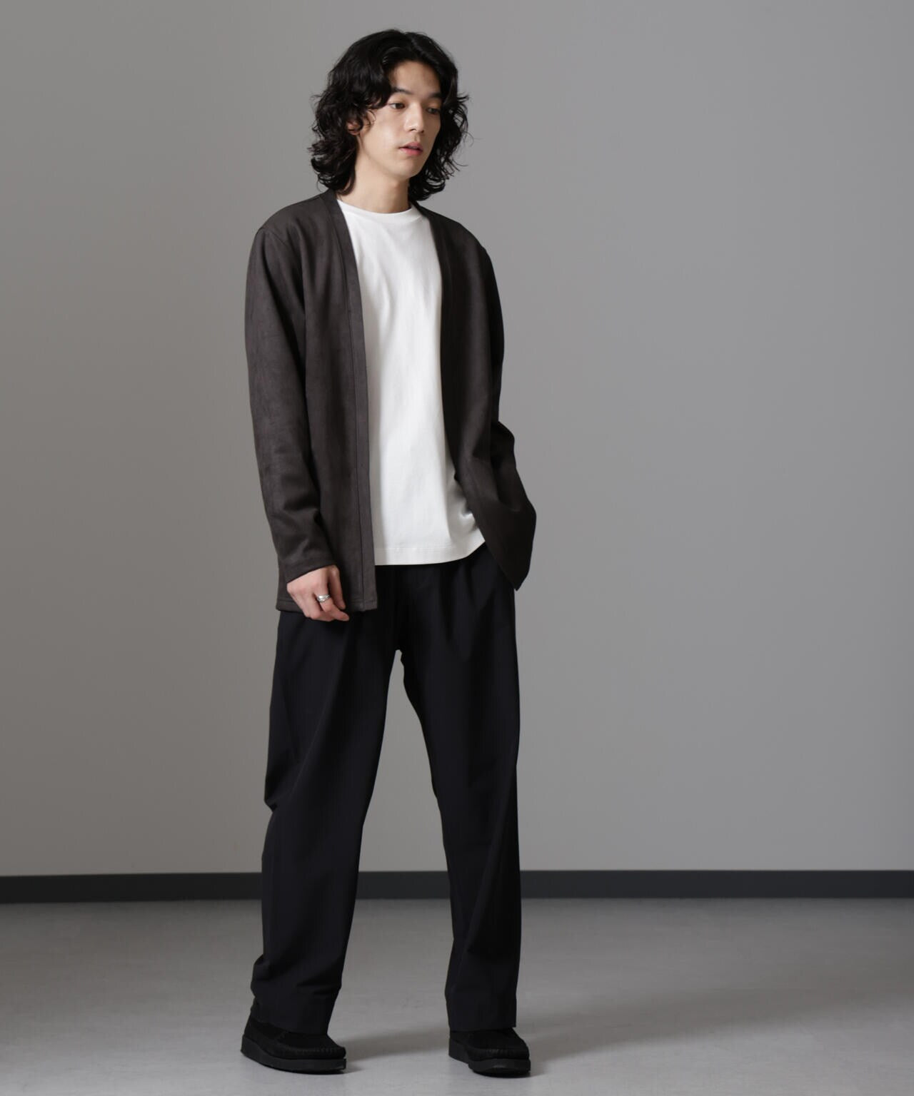 秋冬の定番「フェイクスエード」シリーズから登場のトッパーカーディガン。伸縮性だけでなく、心地よいタッチ感を演出した生地を採用。スタイリングに取り入れると、秋冬の季節感を演出するおすすめアイテムです。
