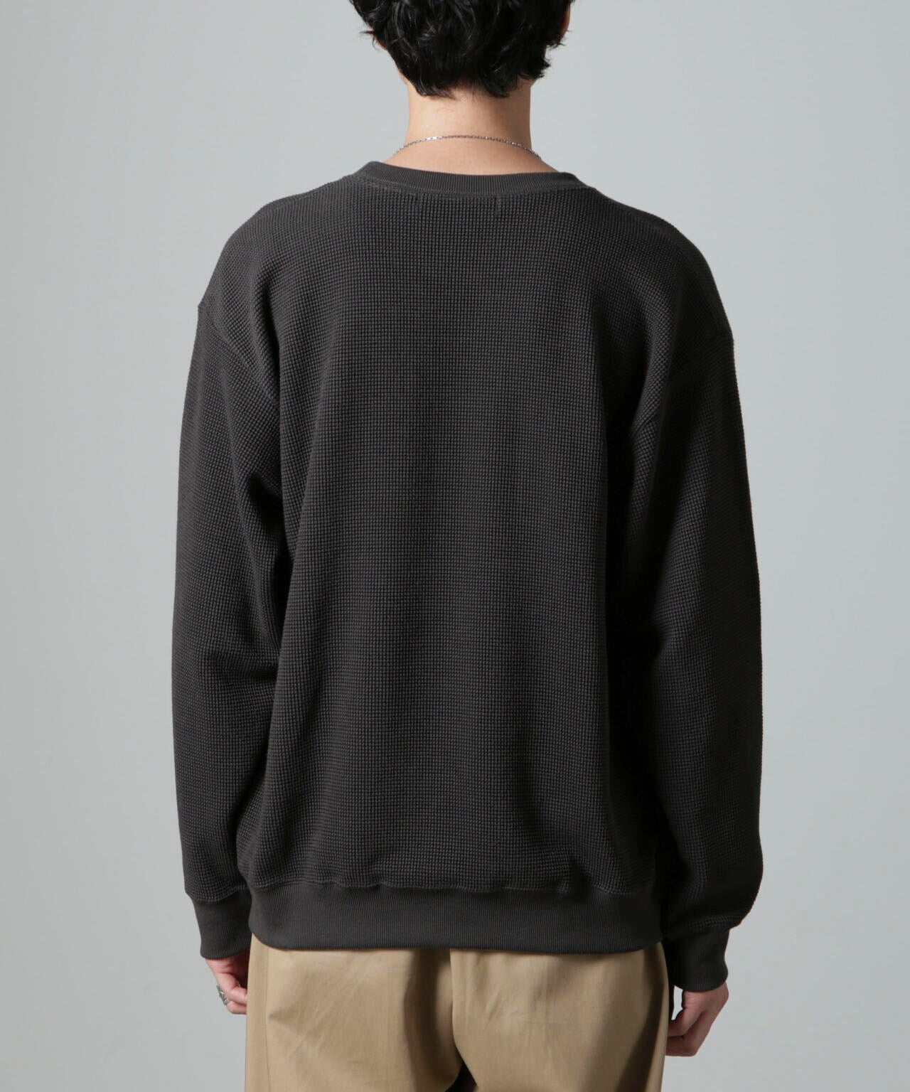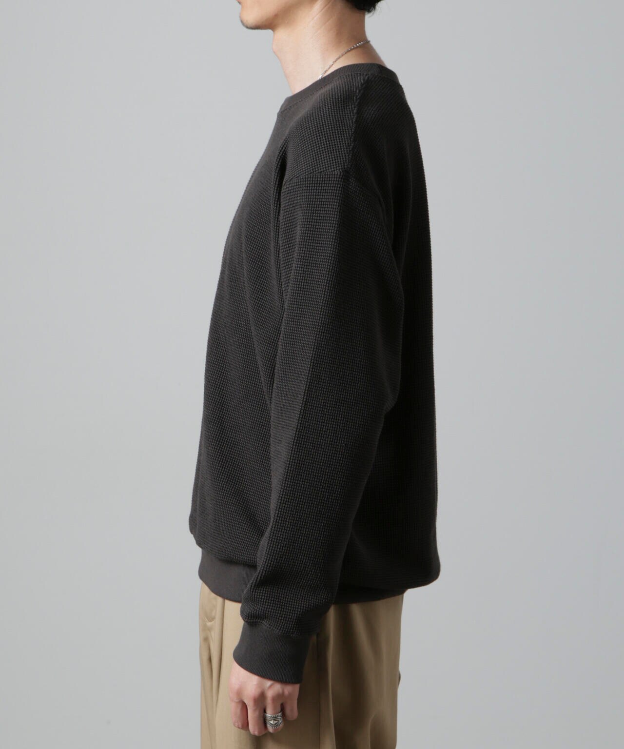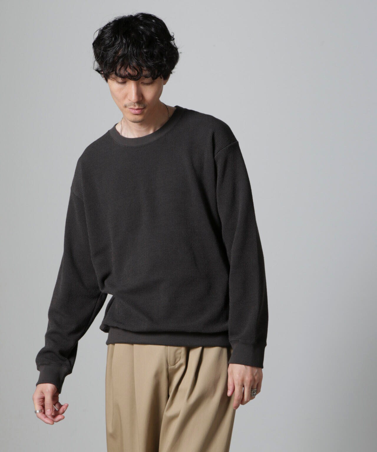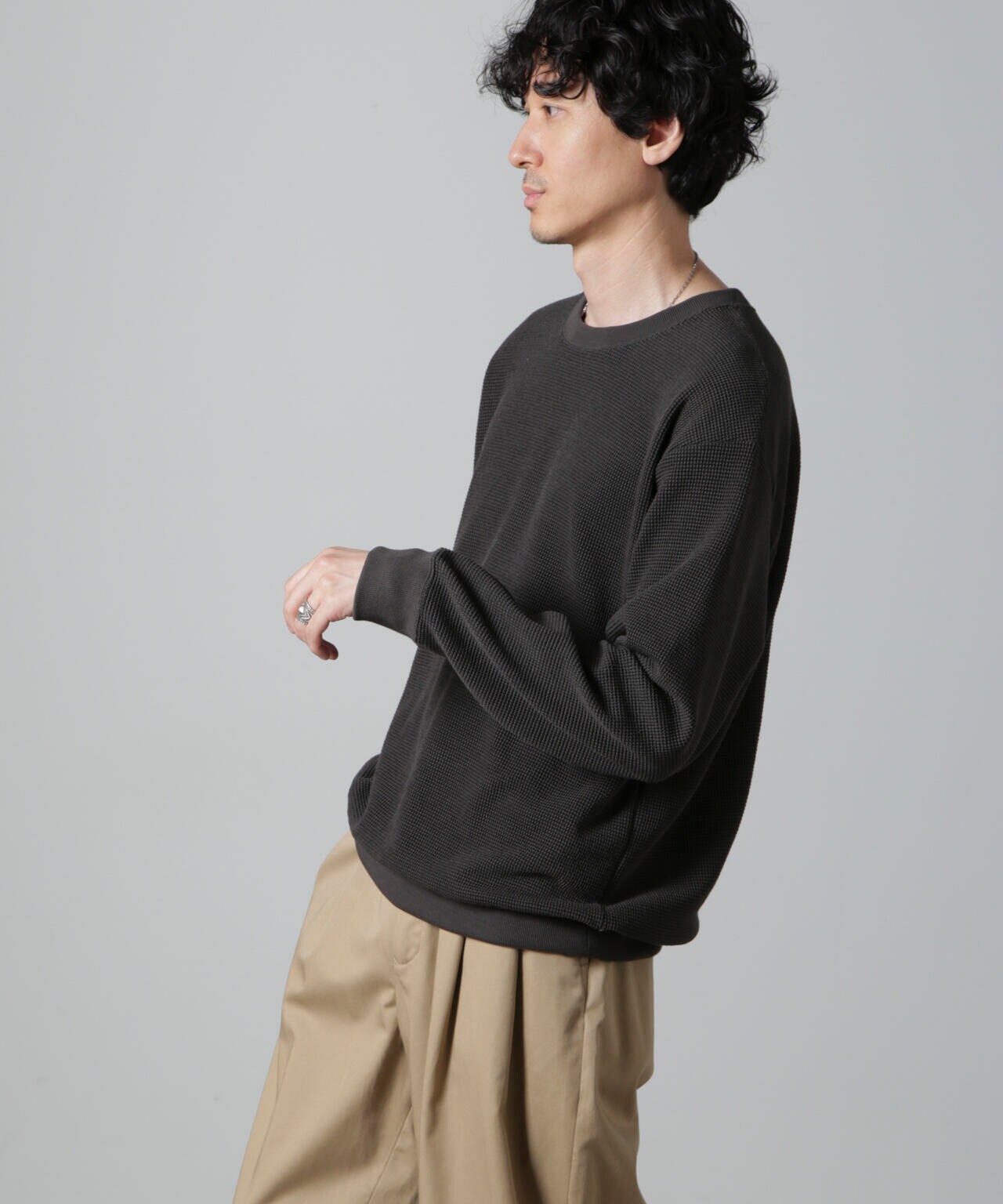 ワッフル生地を使用した程よいサイズ感のプルオーバー。ポリエステルが入っている為、見た目ほど重くなく乾きやすい、秋口に活躍するアイテムです。