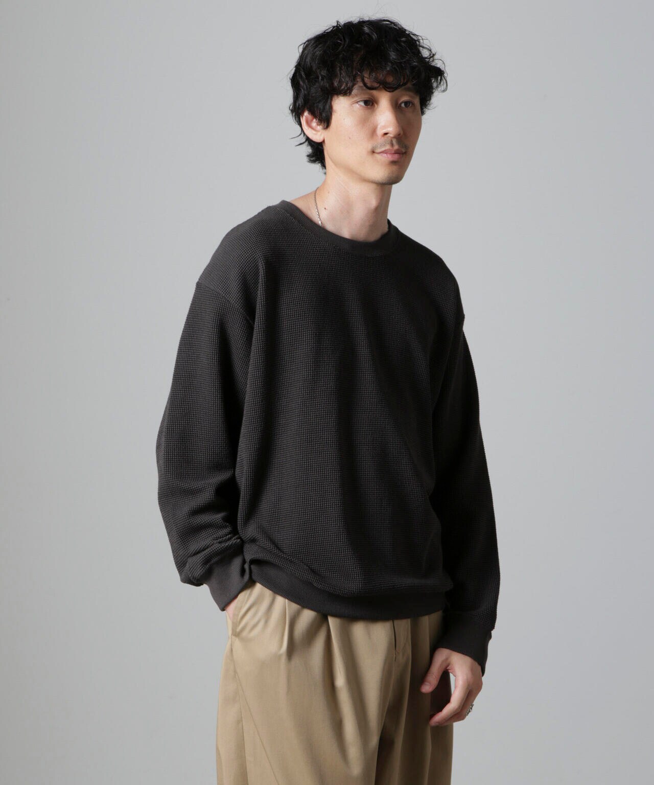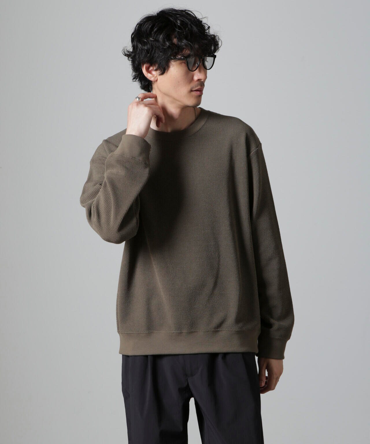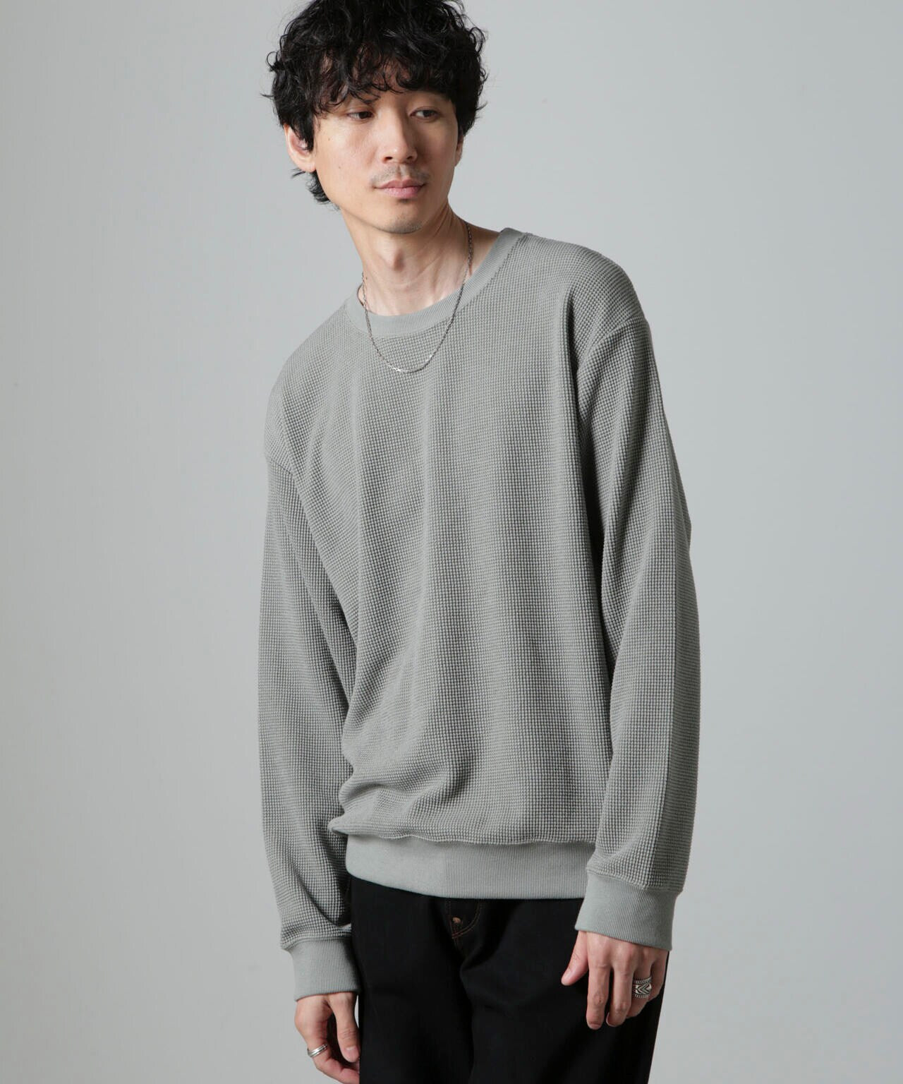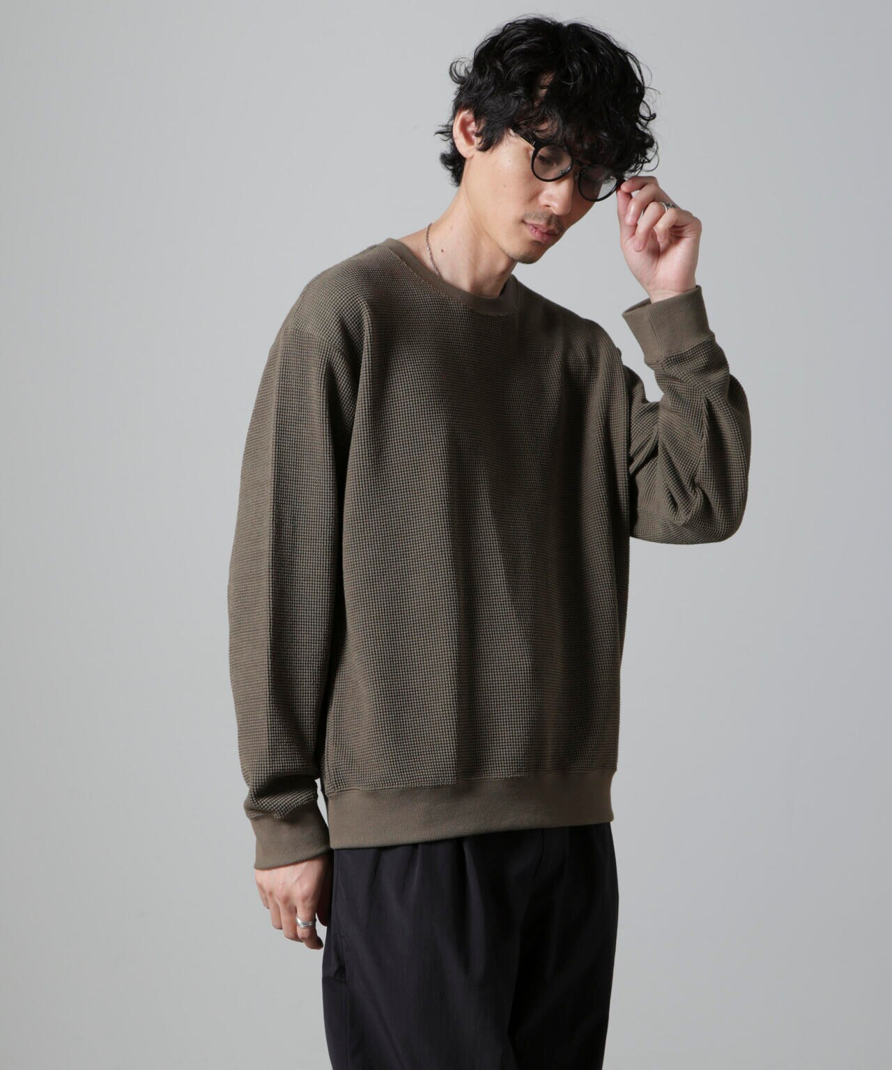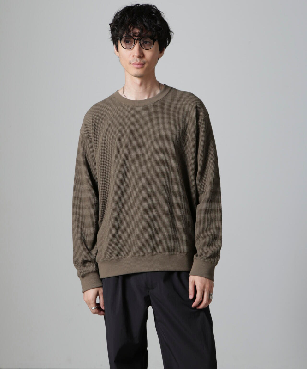 ワッフル生地を使用した程よいサイズ感のプルオーバー。ポリエステルが入っている為、見た目ほど重くなく乾きやすい、秋口に活躍するアイテムです。