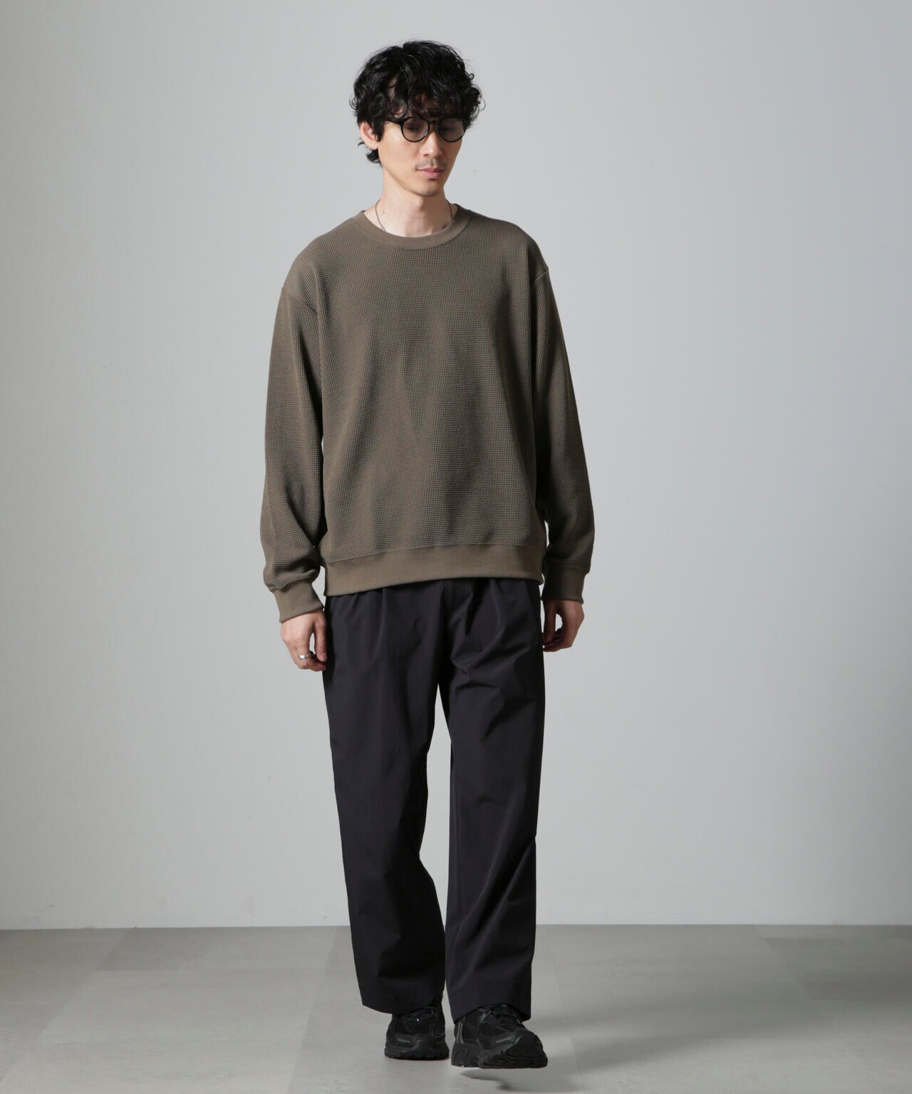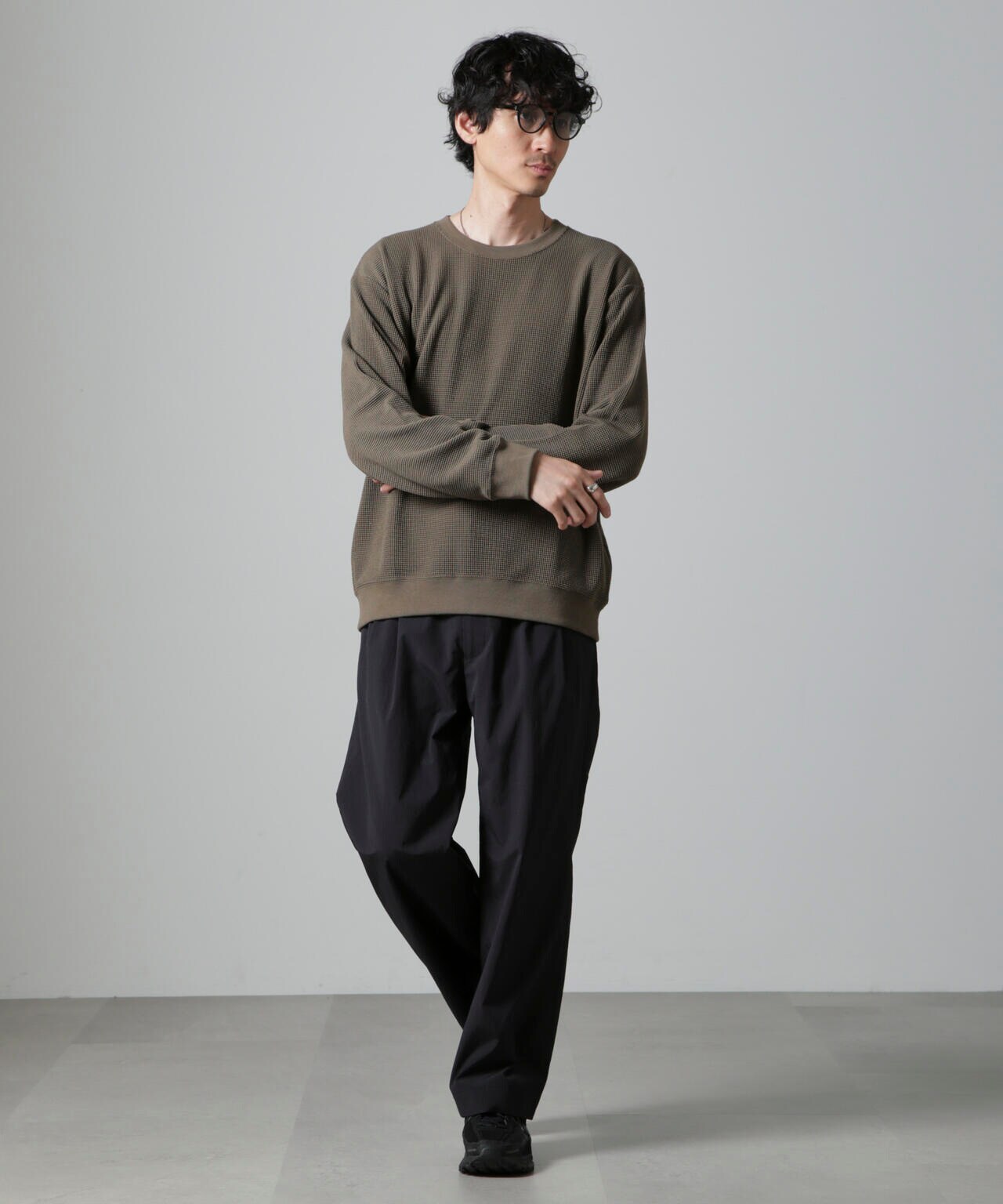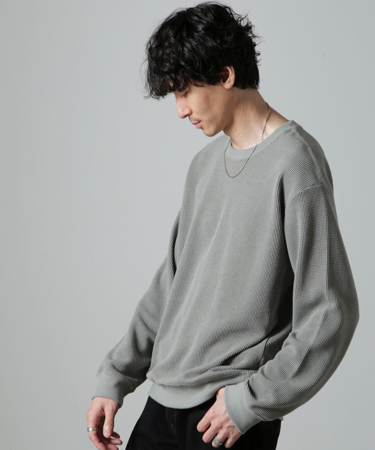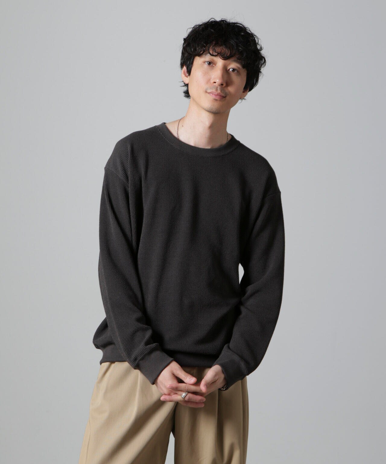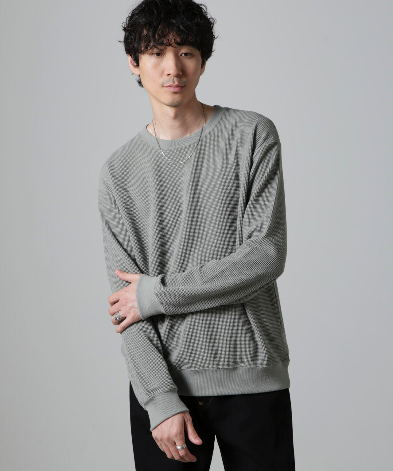 ワッフル生地を使用した程よいサイズ感のプルオーバー。ポリエステルが入っている為、見た目ほど重くなく乾きやすい、秋口に活躍するアイテムです。