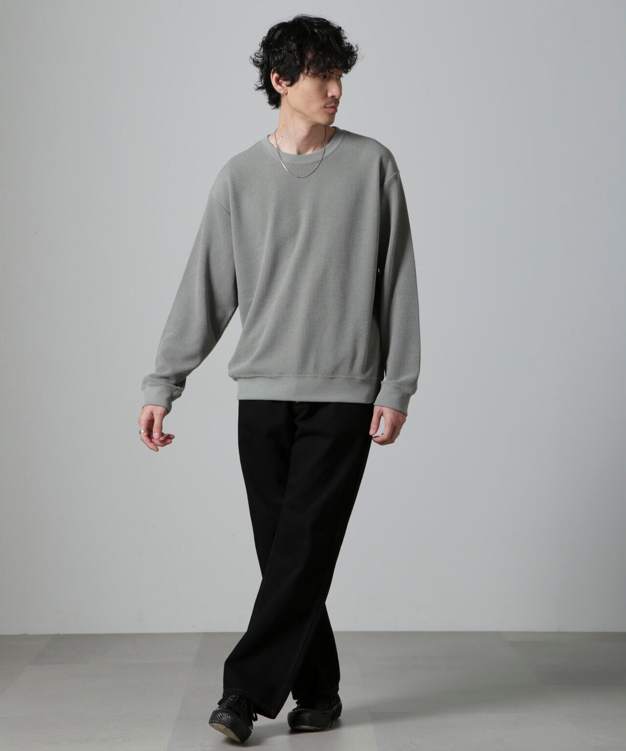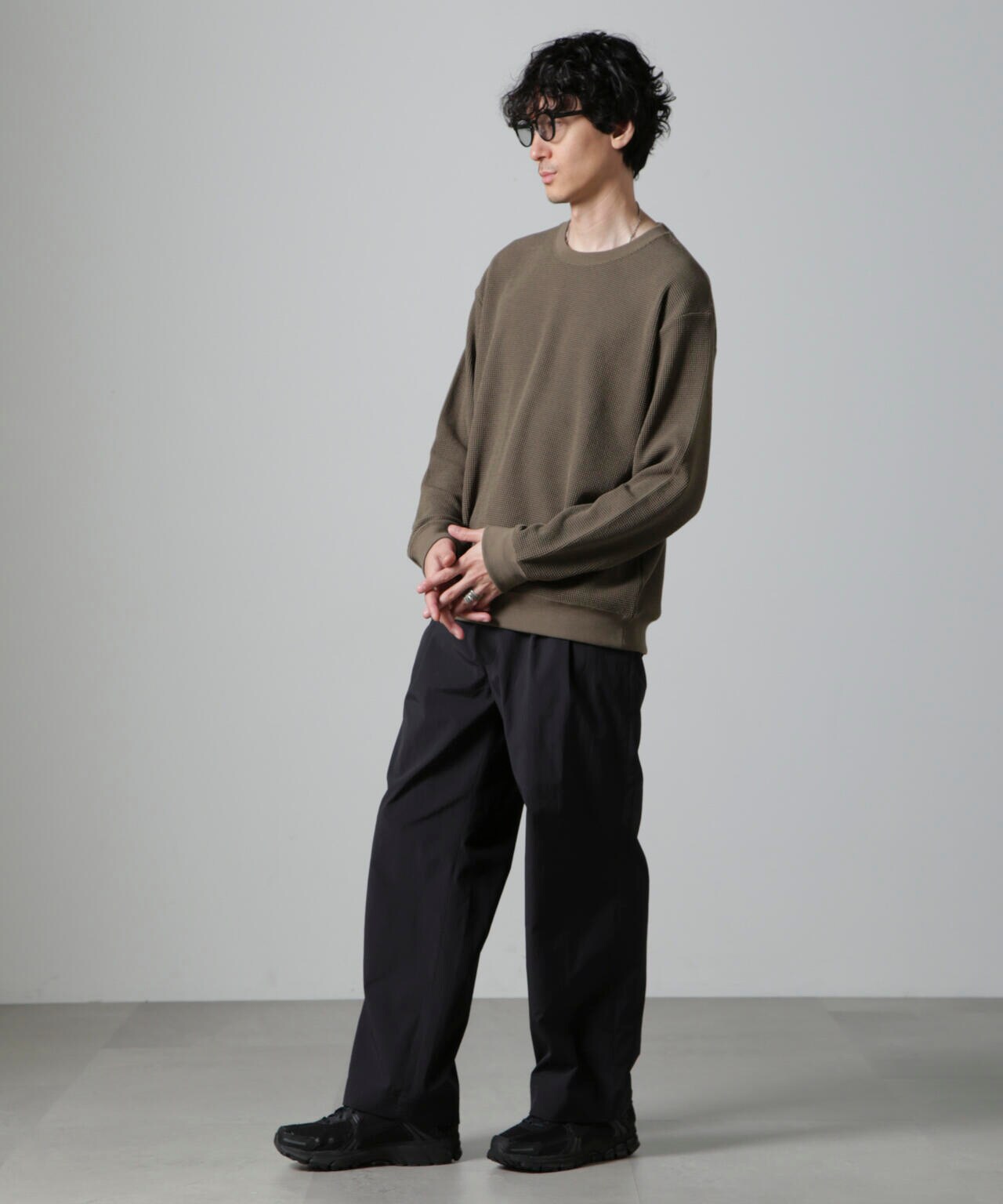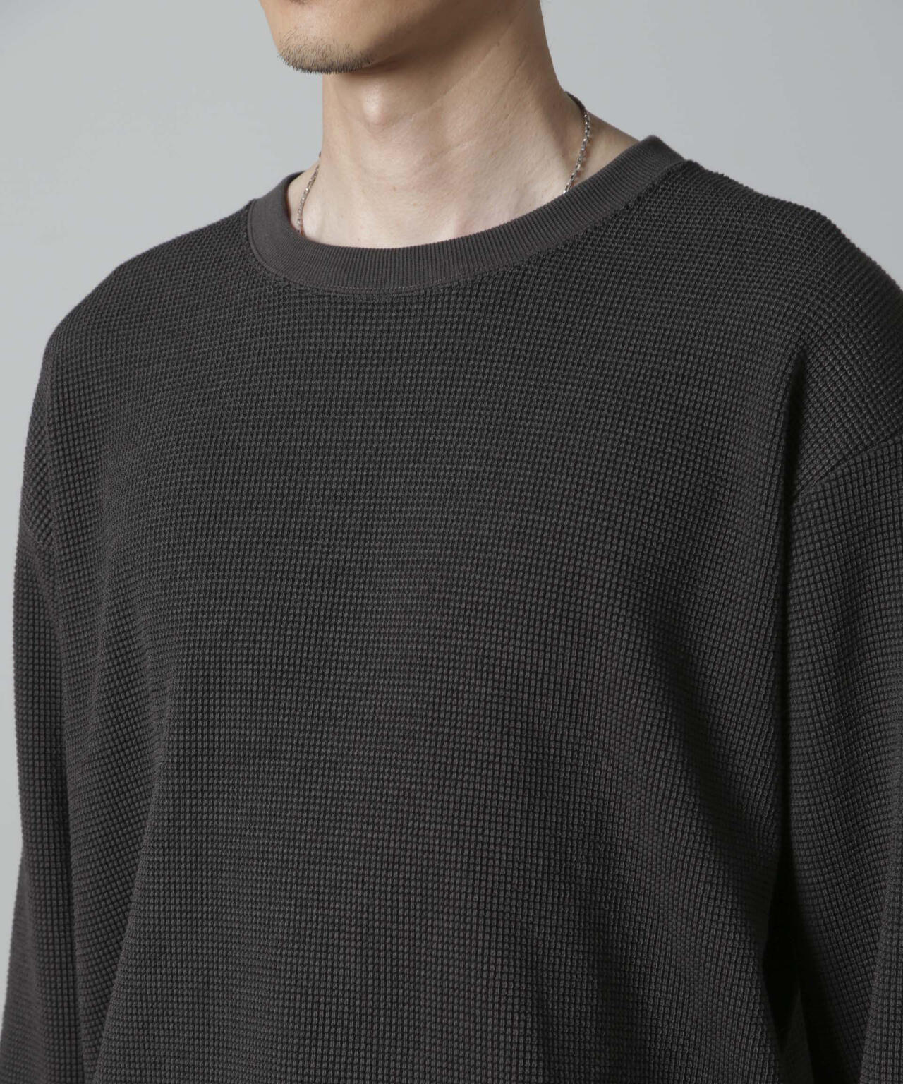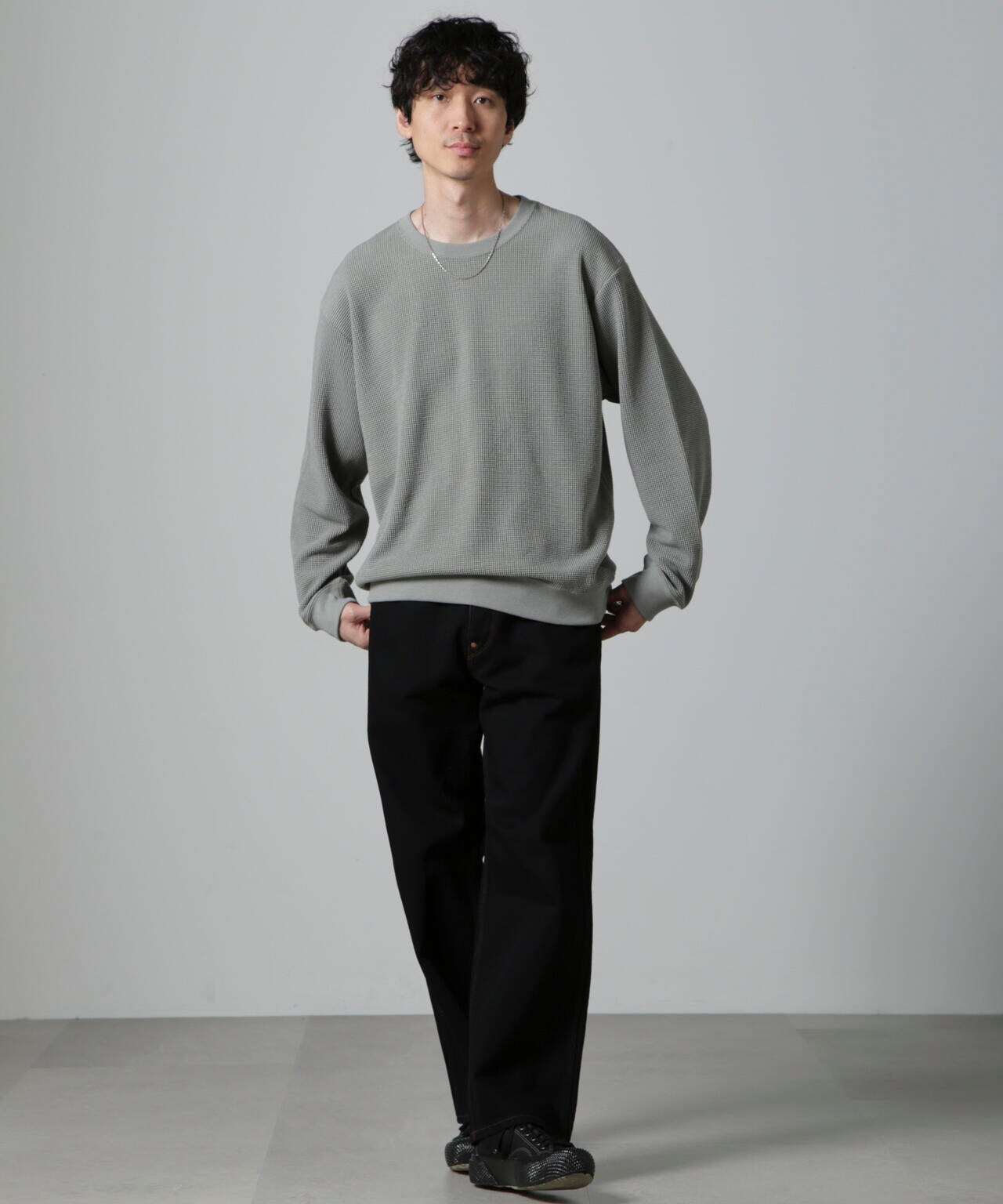 ワッフル生地を使用した程よいサイズ感のプルオーバー。ポリエステルが入っている為、見た目ほど重くなく乾きやすい、秋口に活躍するアイテムです。