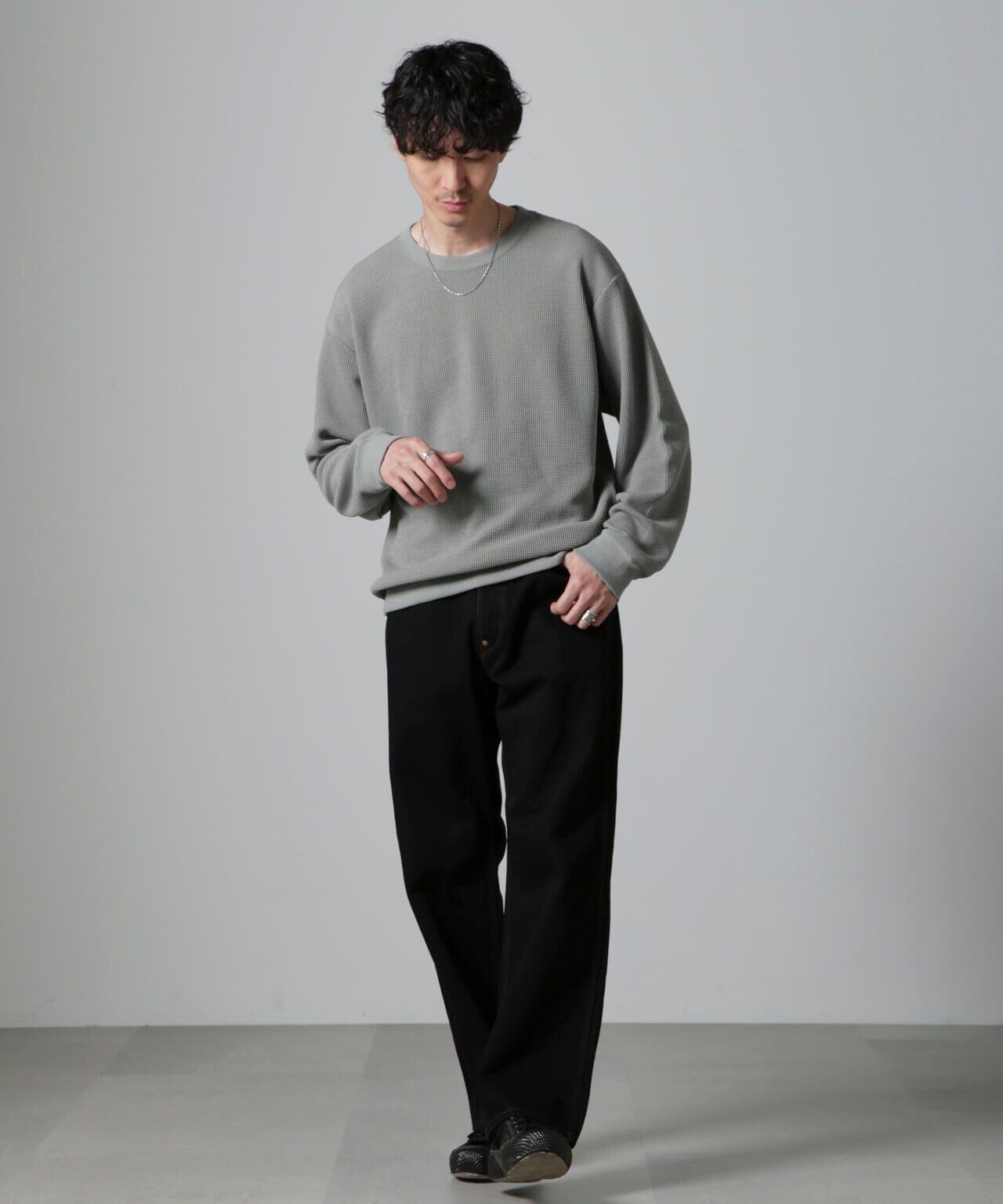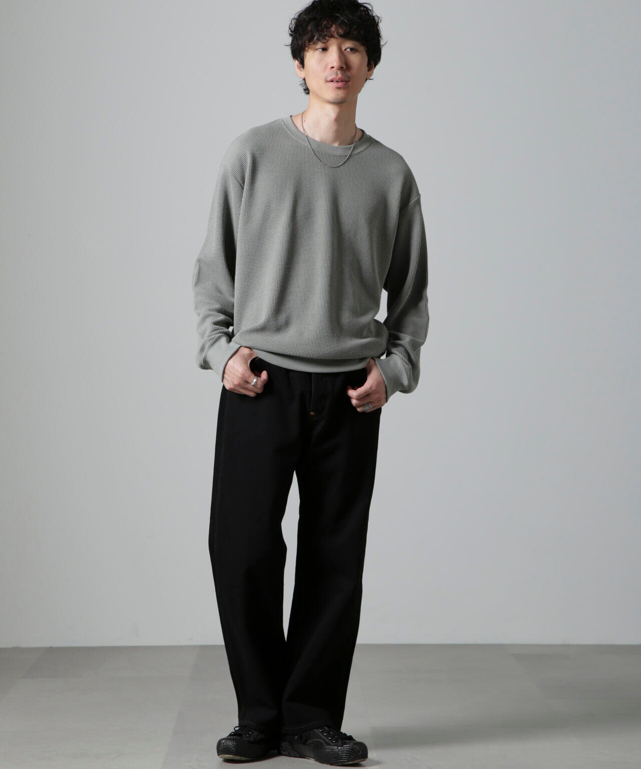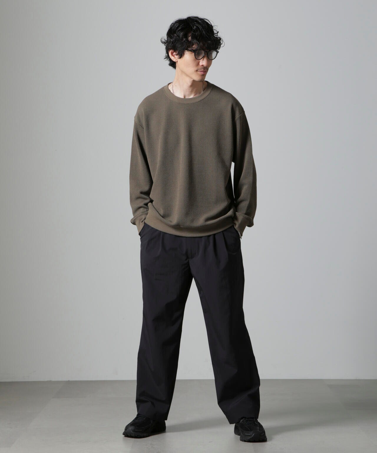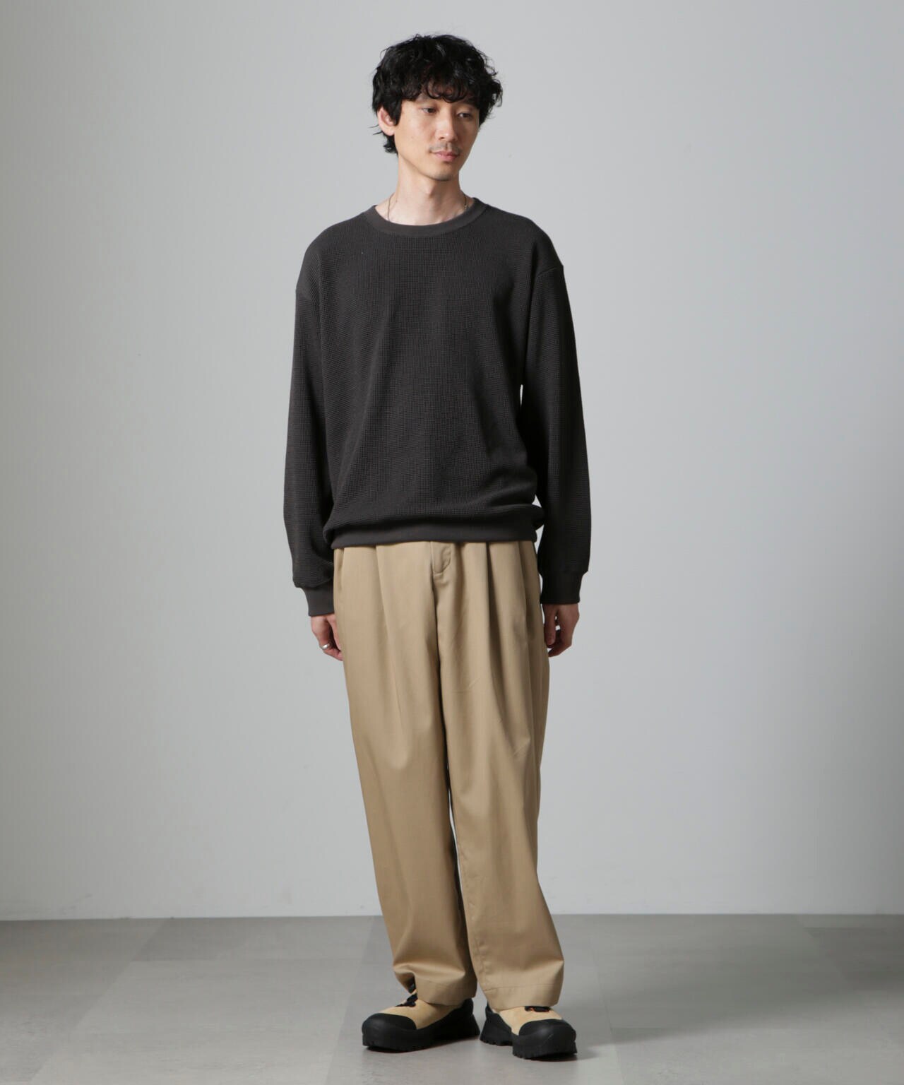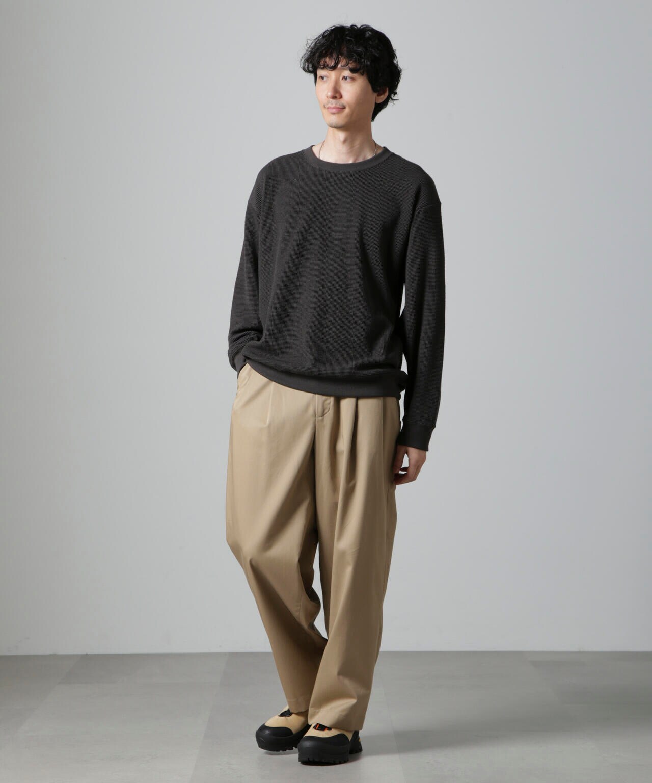 ワッフル生地を使用した程よいサイズ感のプルオーバー。ポリエステルが入っている為、見た目ほど重くなく乾きやすい、秋口に活躍するアイテムです。