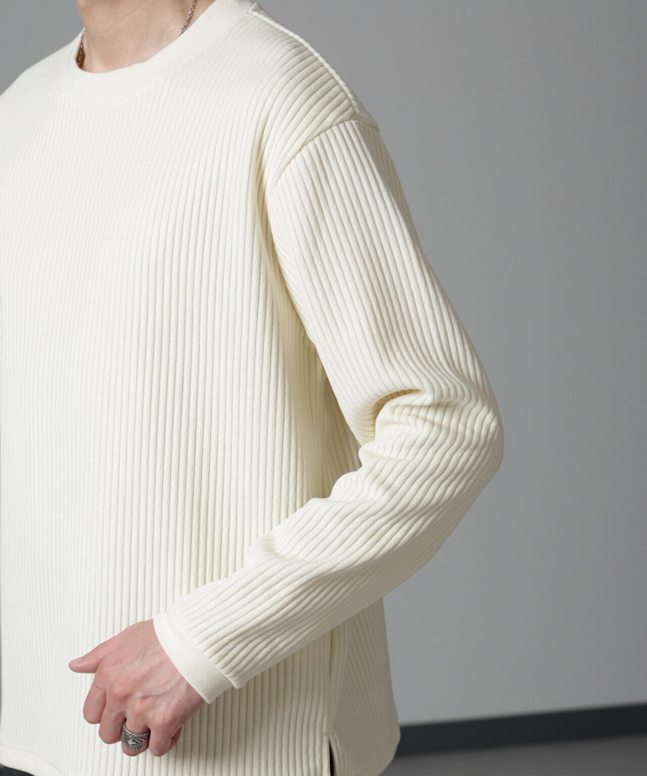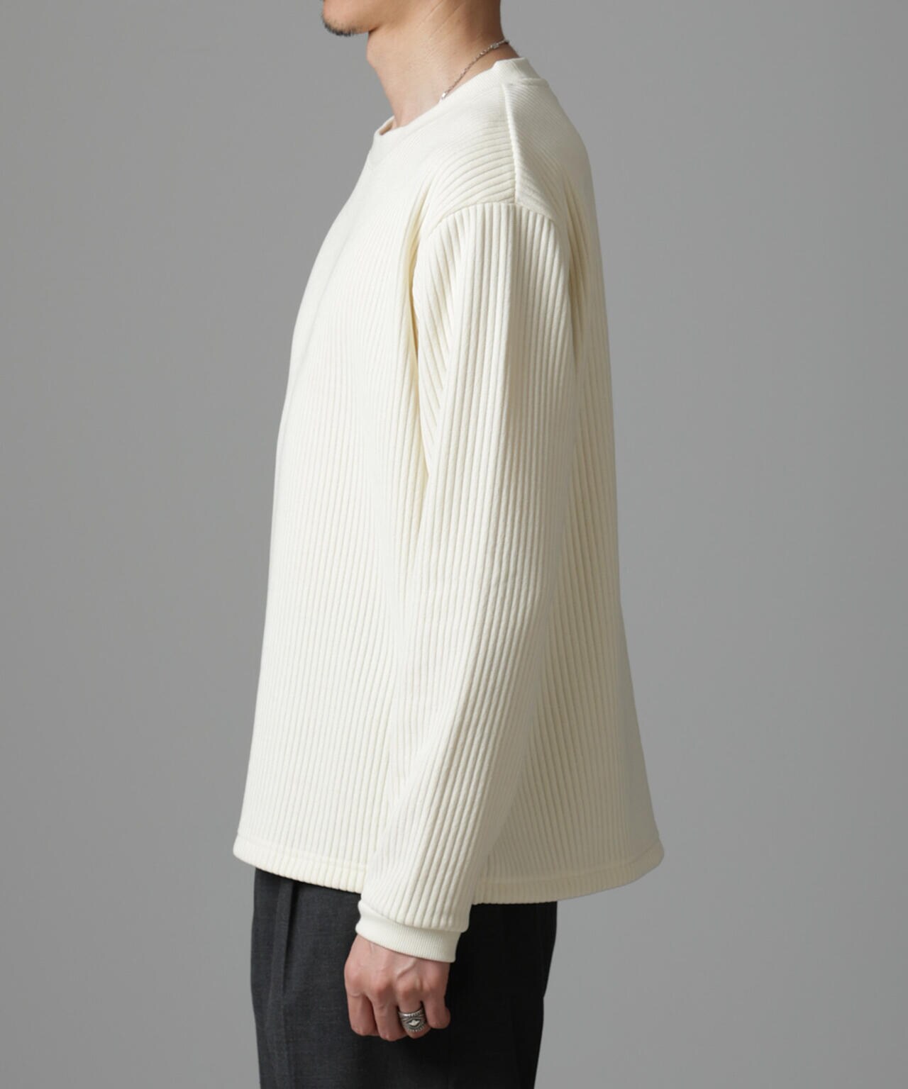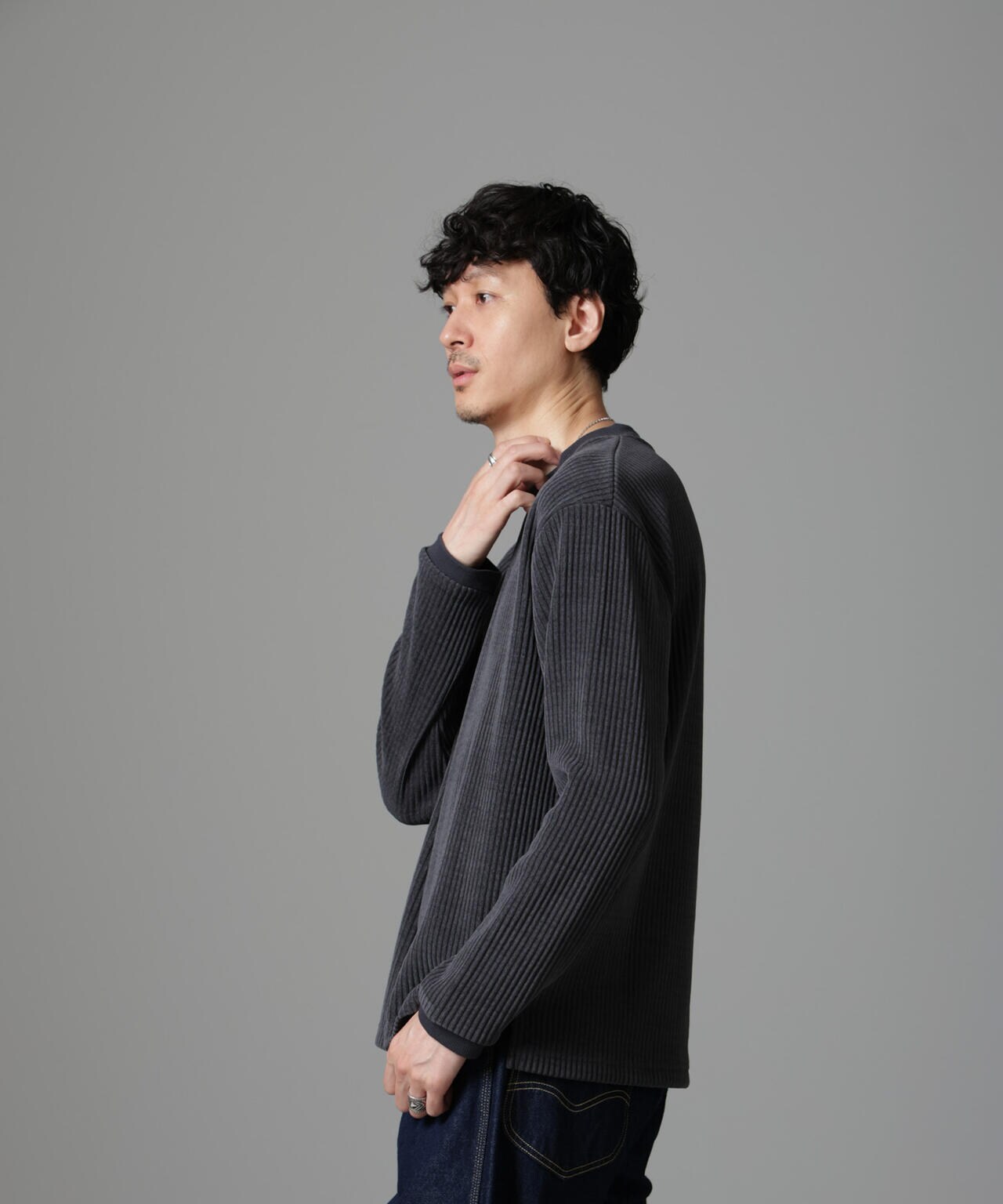秋冬らしいジャージのコーデュロイを使用したプルオーバー。スウェット感覚で着用できる着心地の良さが魅力です。
