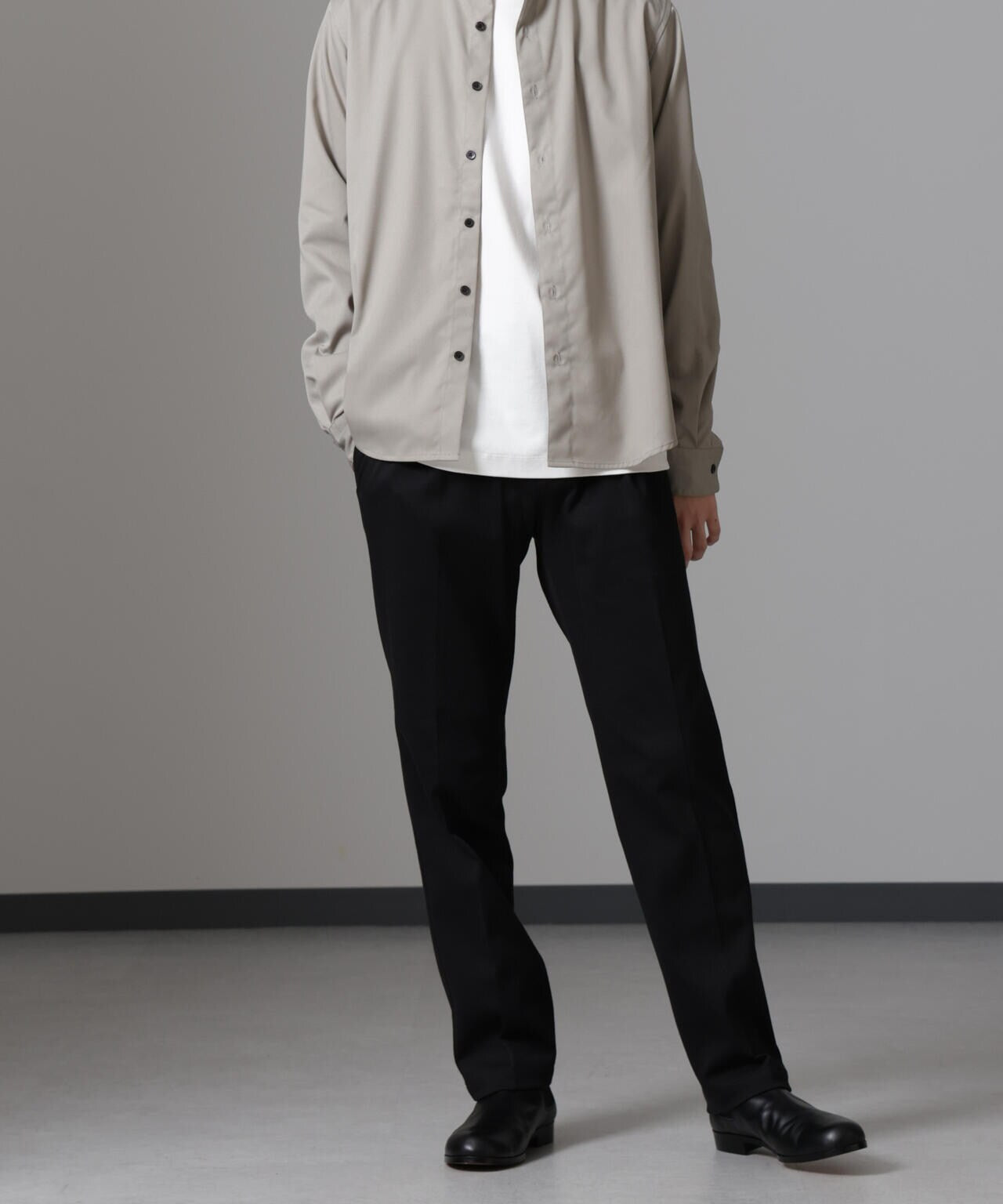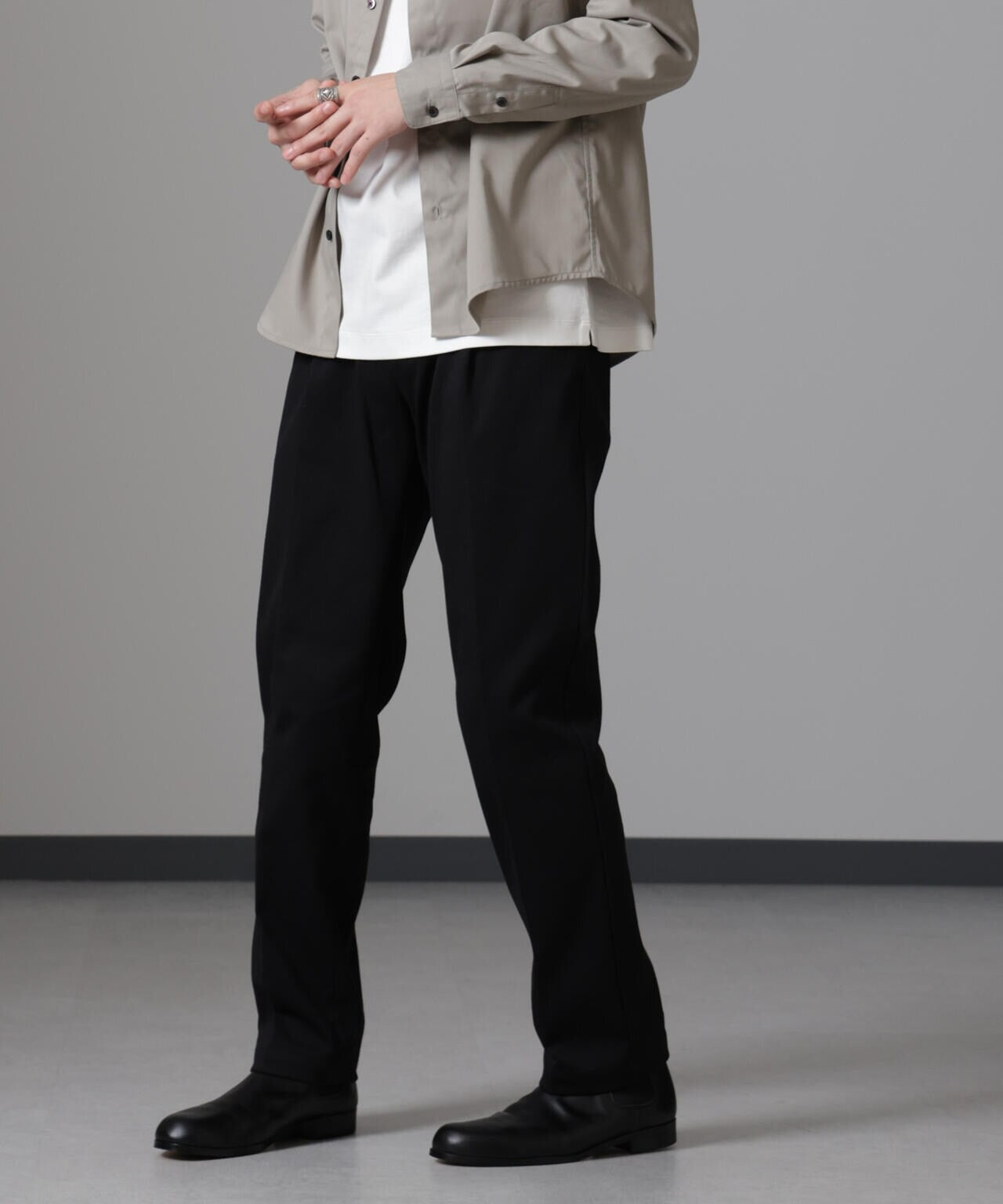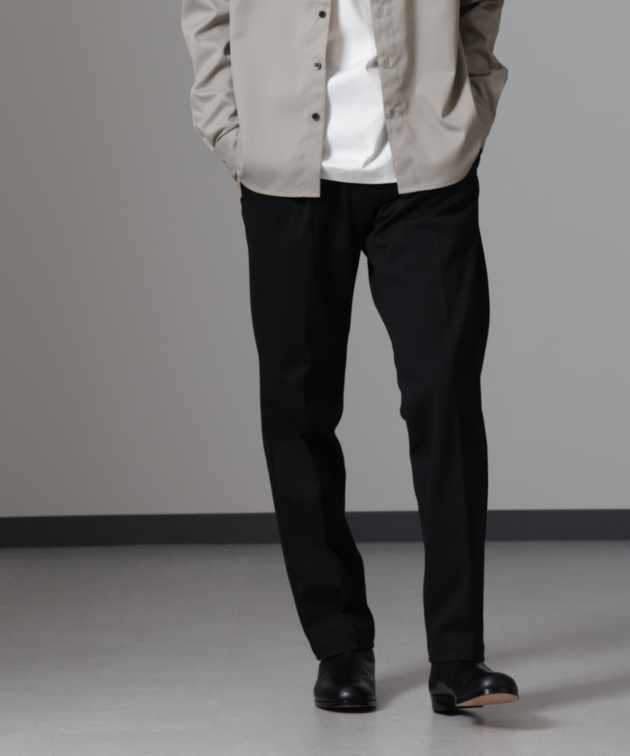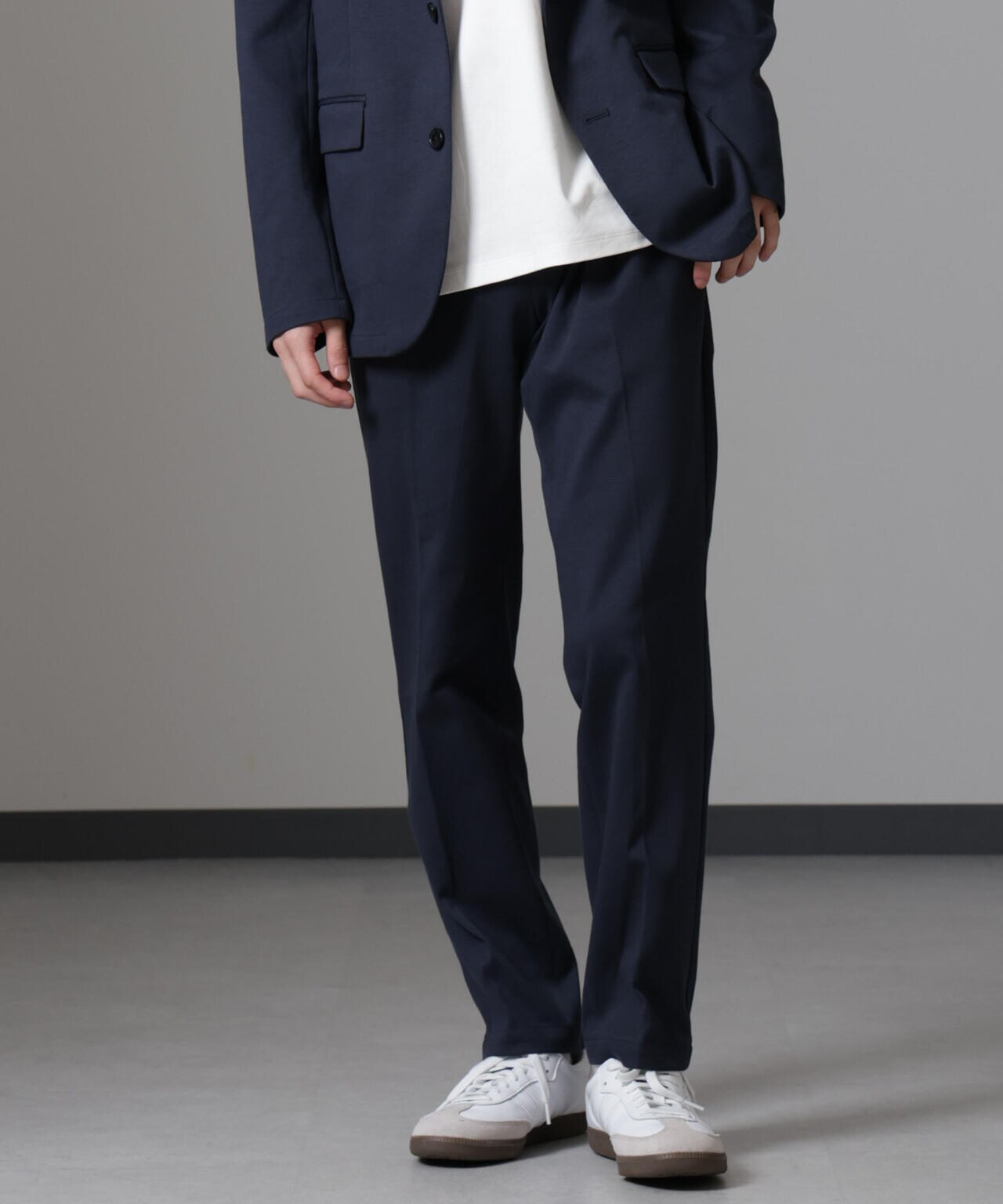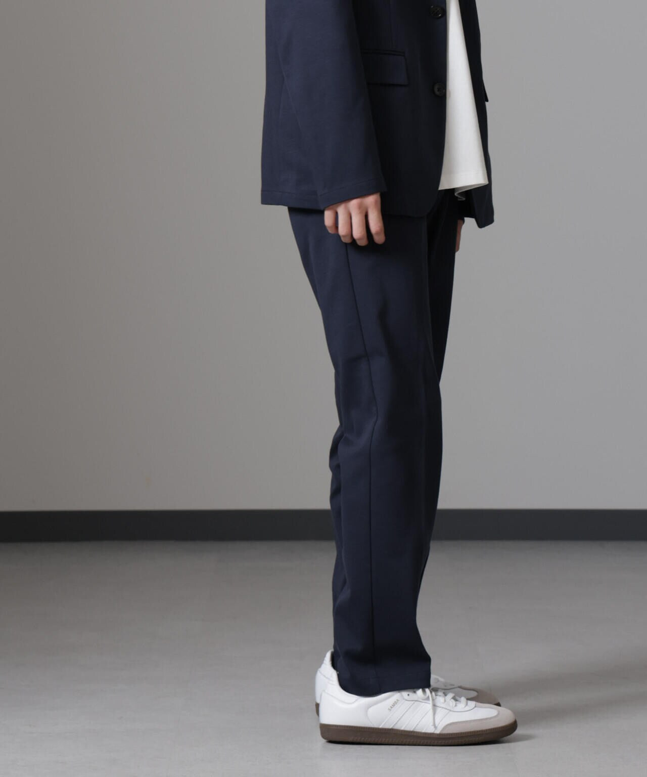 ナノユニバースの定番的なジャストシルエットのイージースラックス。裾にかけてテーパードしている細めのシルエットですが、伸縮性に優れている鹿の子素材を使用しているためノンストレスでご着用いただけます。ONスタイルでもOFFスタイルでも活躍するオススメのアイテムです。