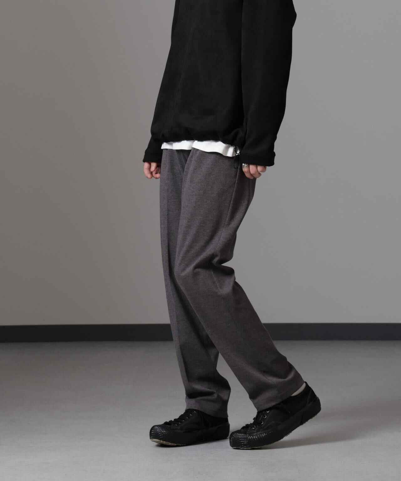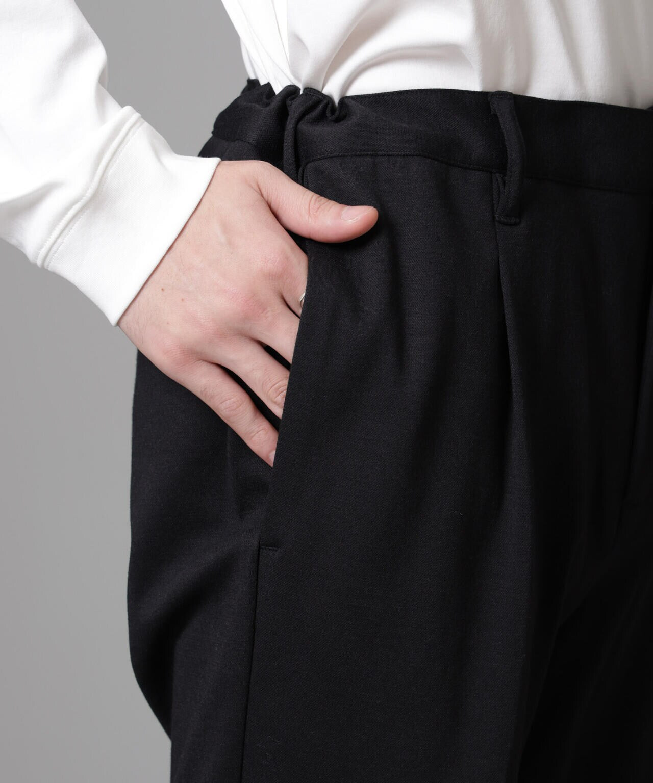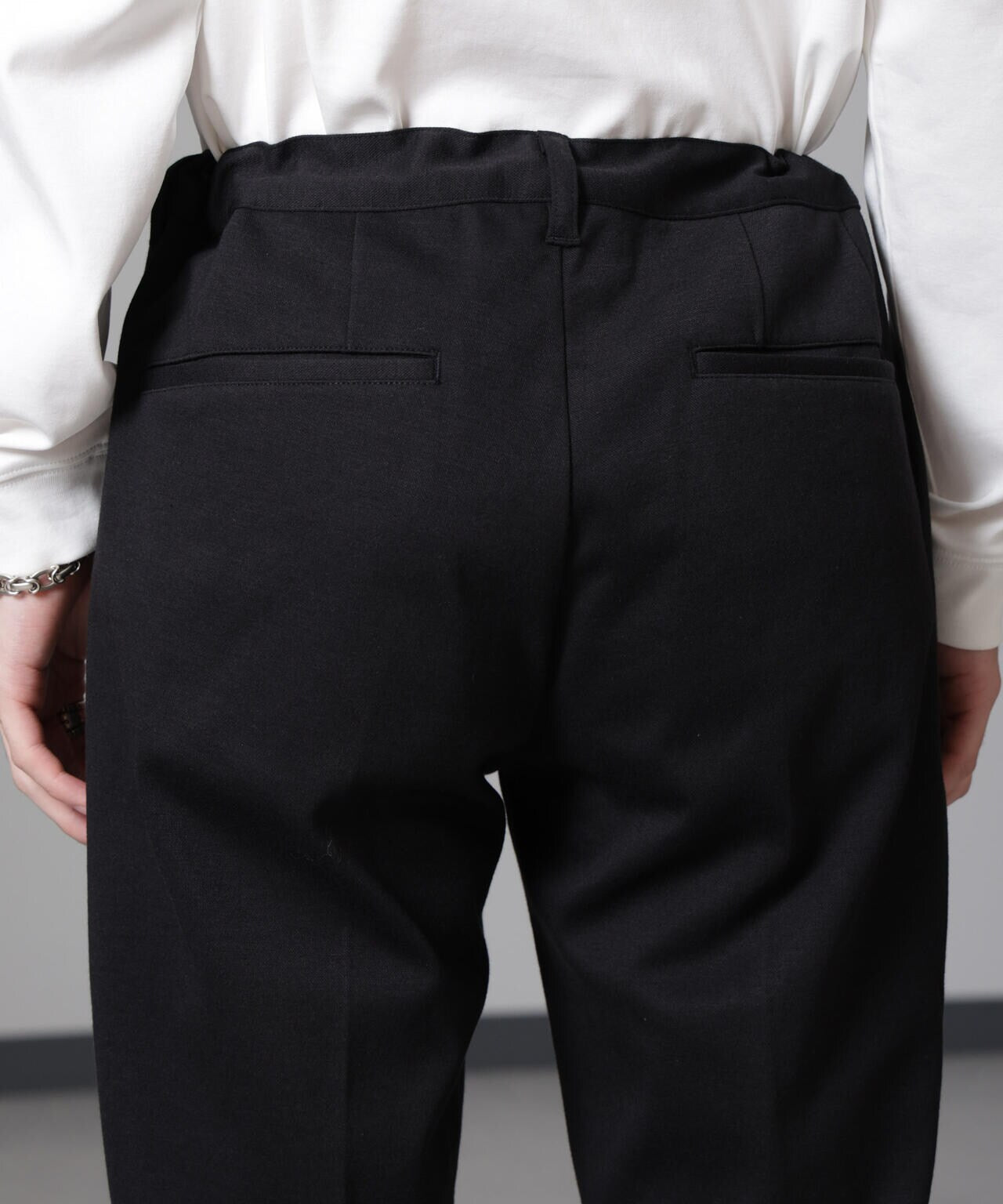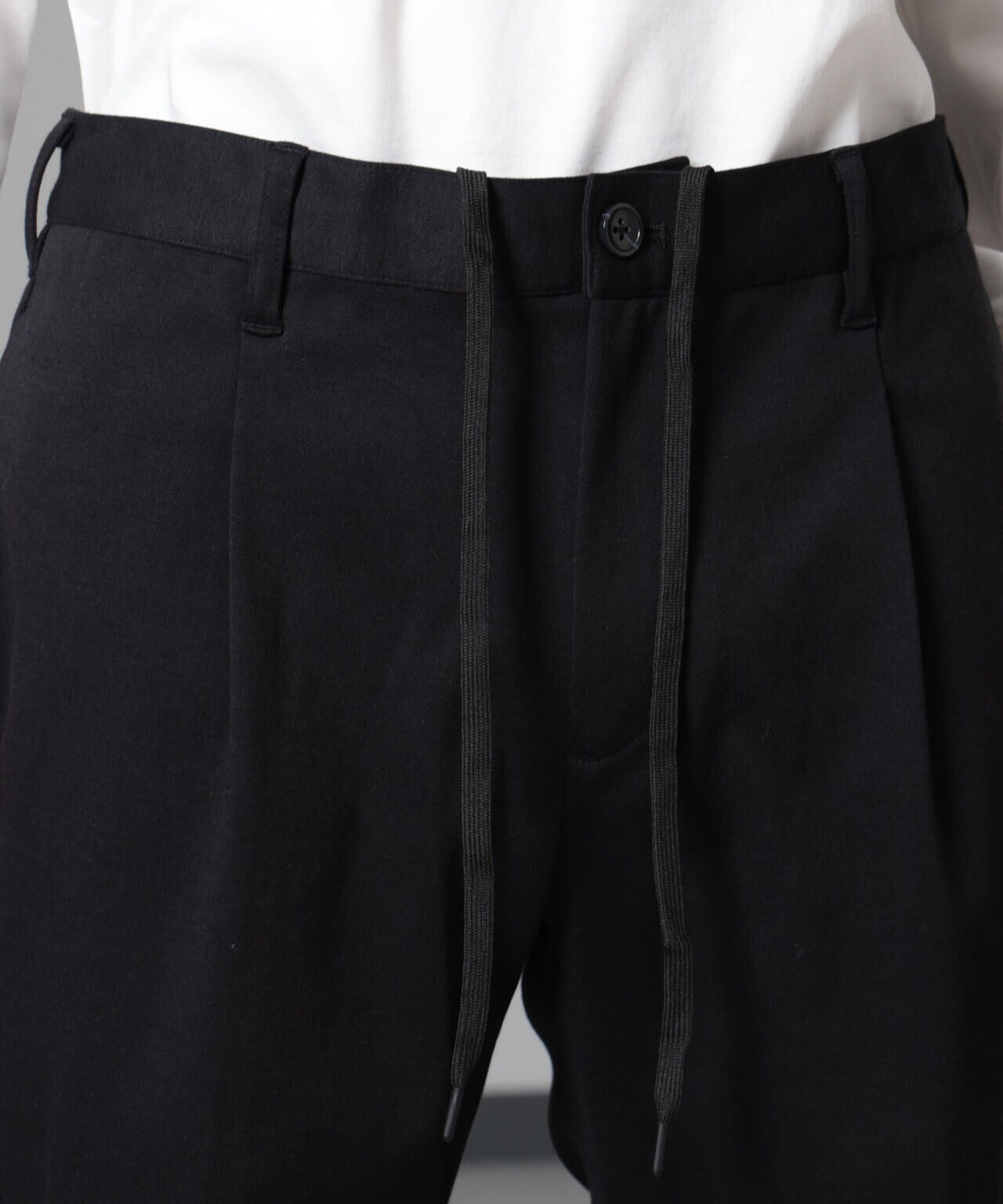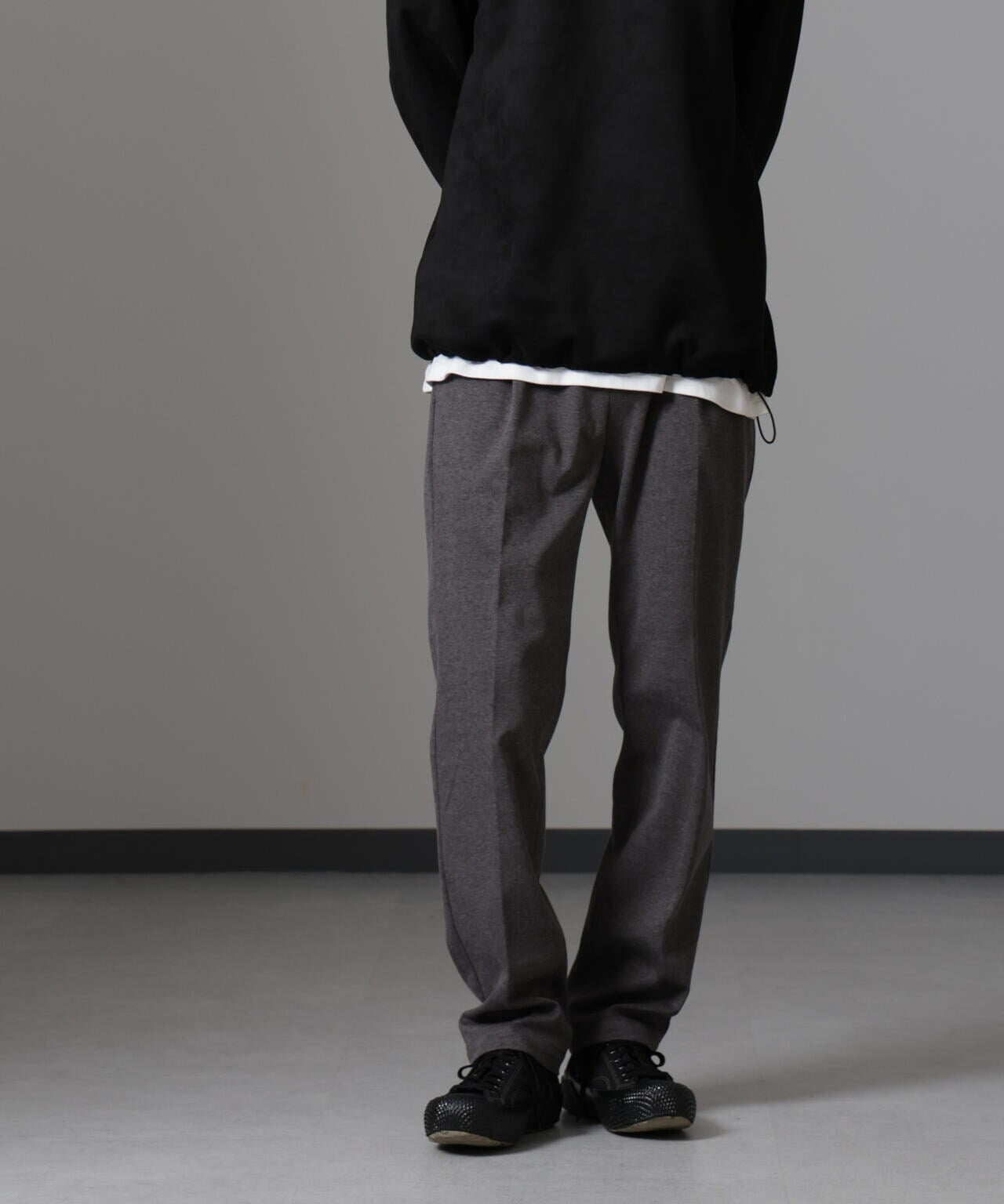 ナノユニバースの定番的なジャストシルエットのイージースラックス。裾にかけてテーパードしている細めのシルエットですが、伸縮性に優れている鹿の子素材を使用しているためノンストレスでご着用いただけます。ONスタイルでもOFFスタイルでも活躍するオススメのアイテムです。