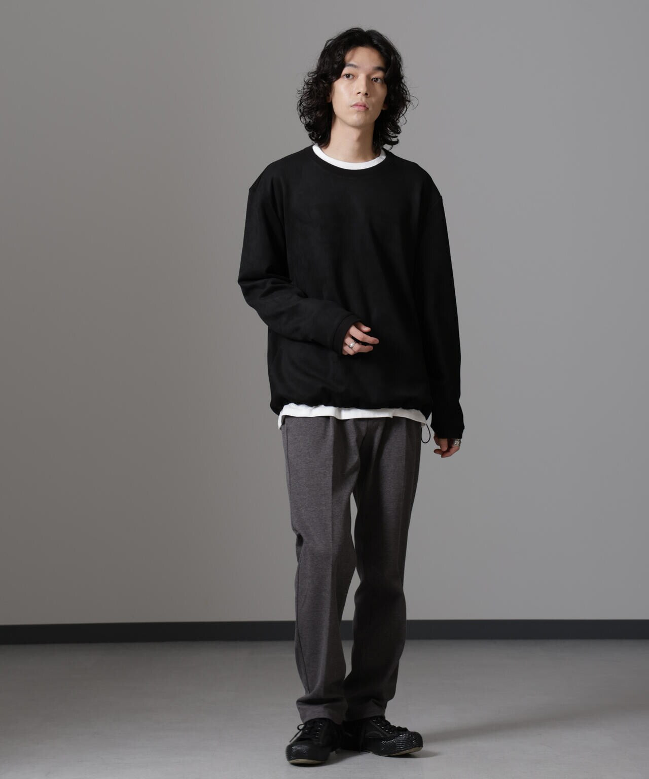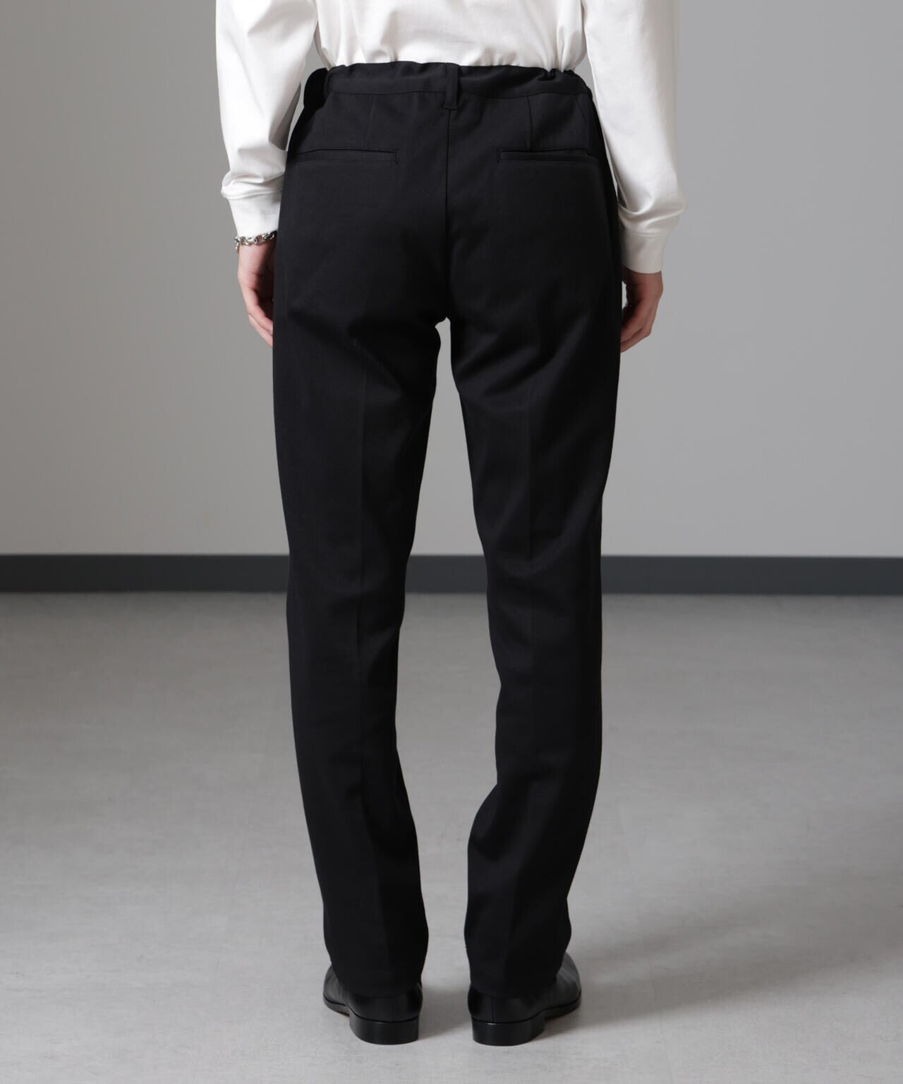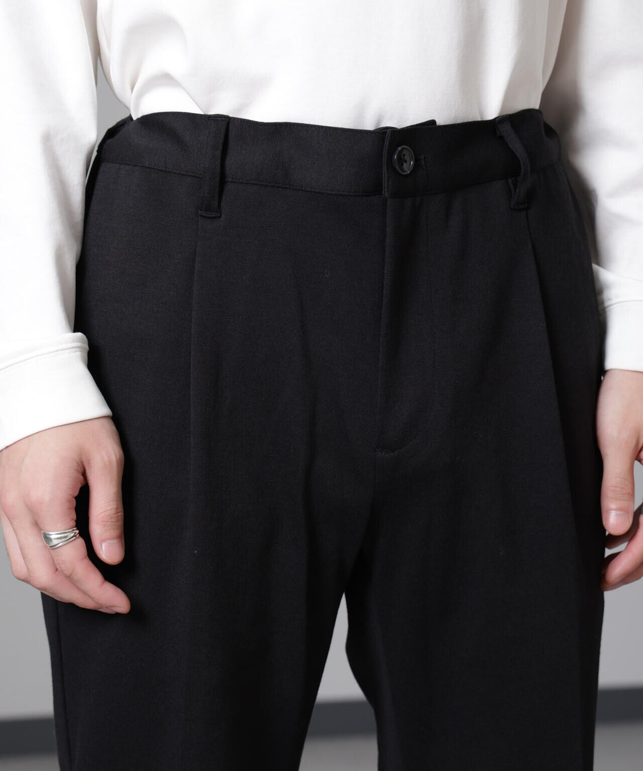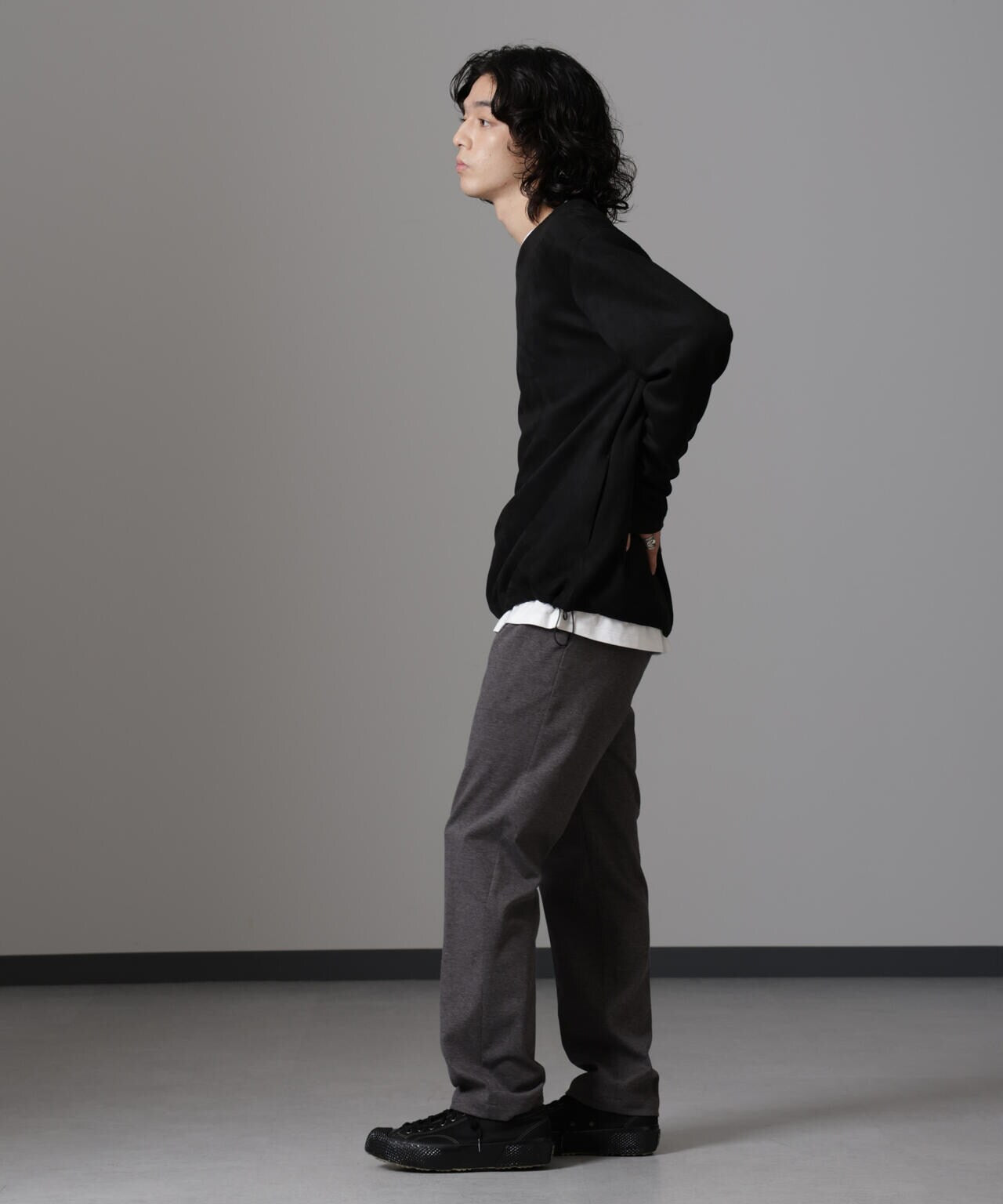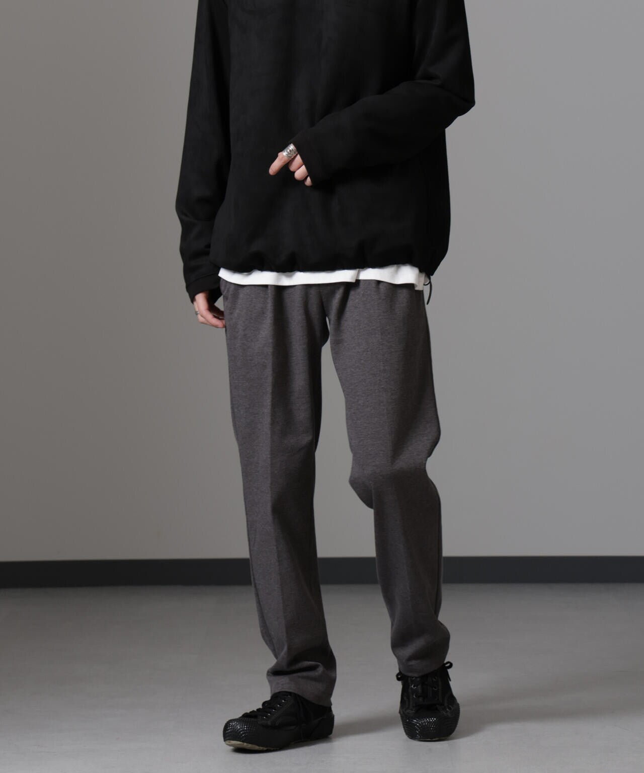 ナノユニバースの定番的なジャストシルエットのイージースラックス。裾にかけてテーパードしている細めのシルエットですが、伸縮性に優れている鹿の子素材を使用しているためノンストレスでご着用いただけます。ONスタイルでもOFFスタイルでも活躍するオススメのアイテムです。