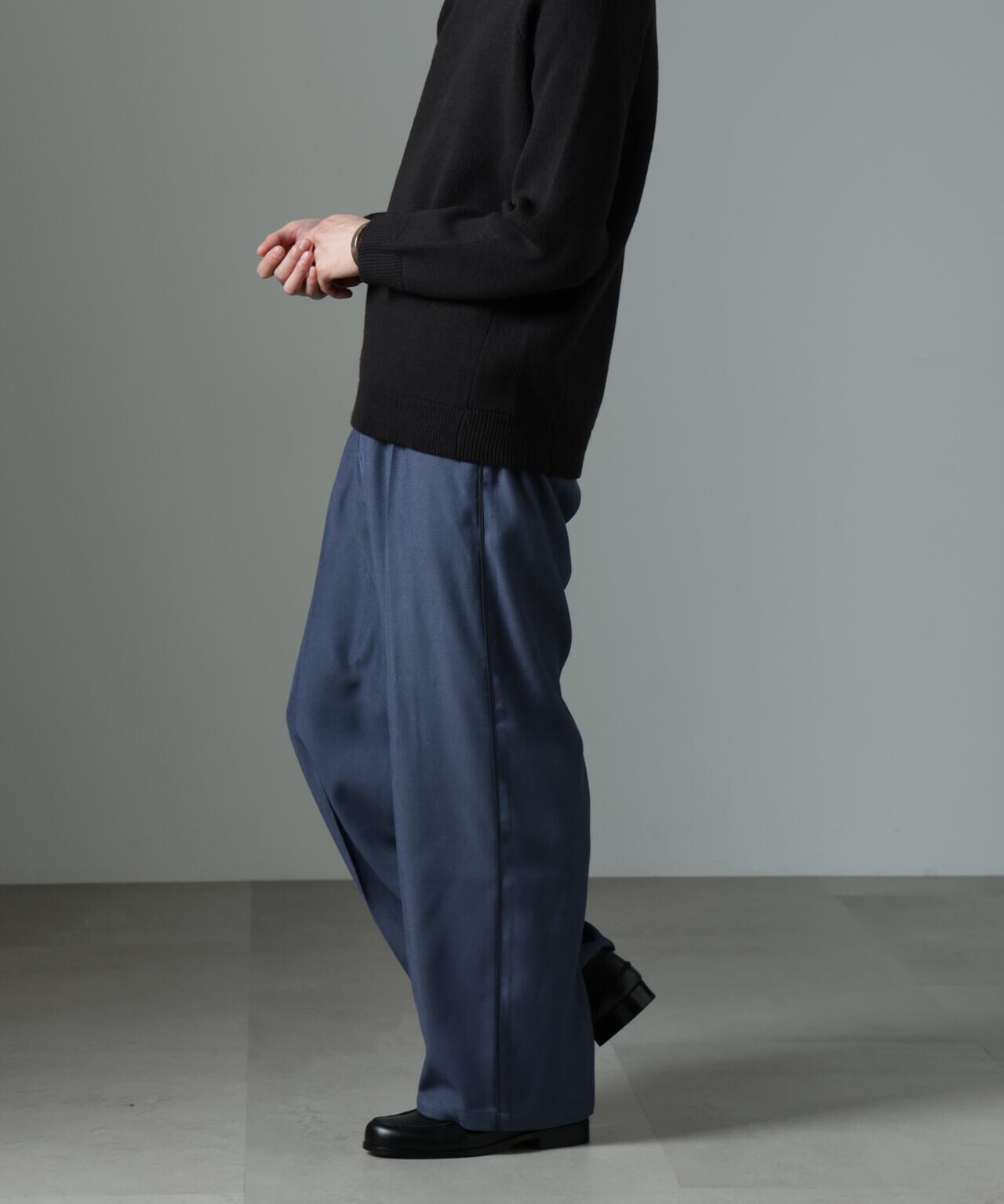 綺麗なストレートシルエットに配色のサイドラインがポイントのスラックス。目立ちすぎないサイドラインがシンプルながらに程よいアクセントを効かせる1本。幅広いスタイルに合わせやすいおすすめアイテムです。