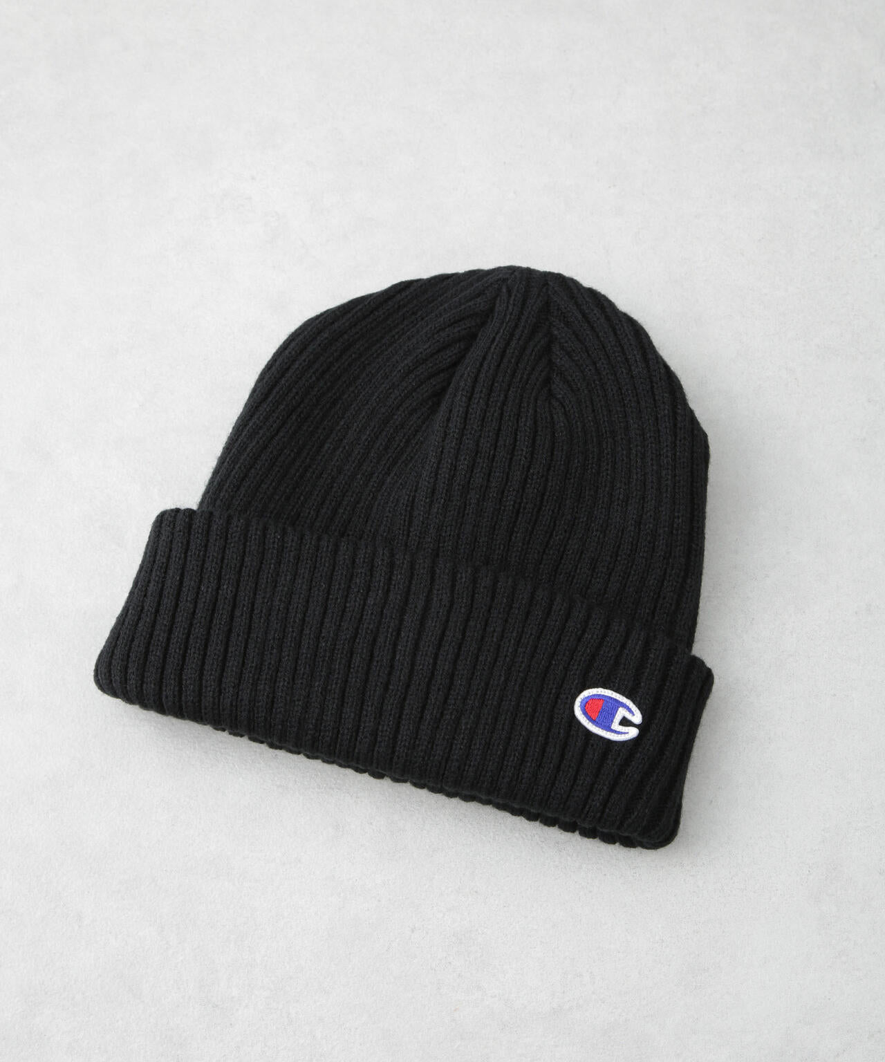 チャンピオンのロゴを配置した、リブニットワッチ。コーディネートのさりげないアクセントにおすすめの1点です。