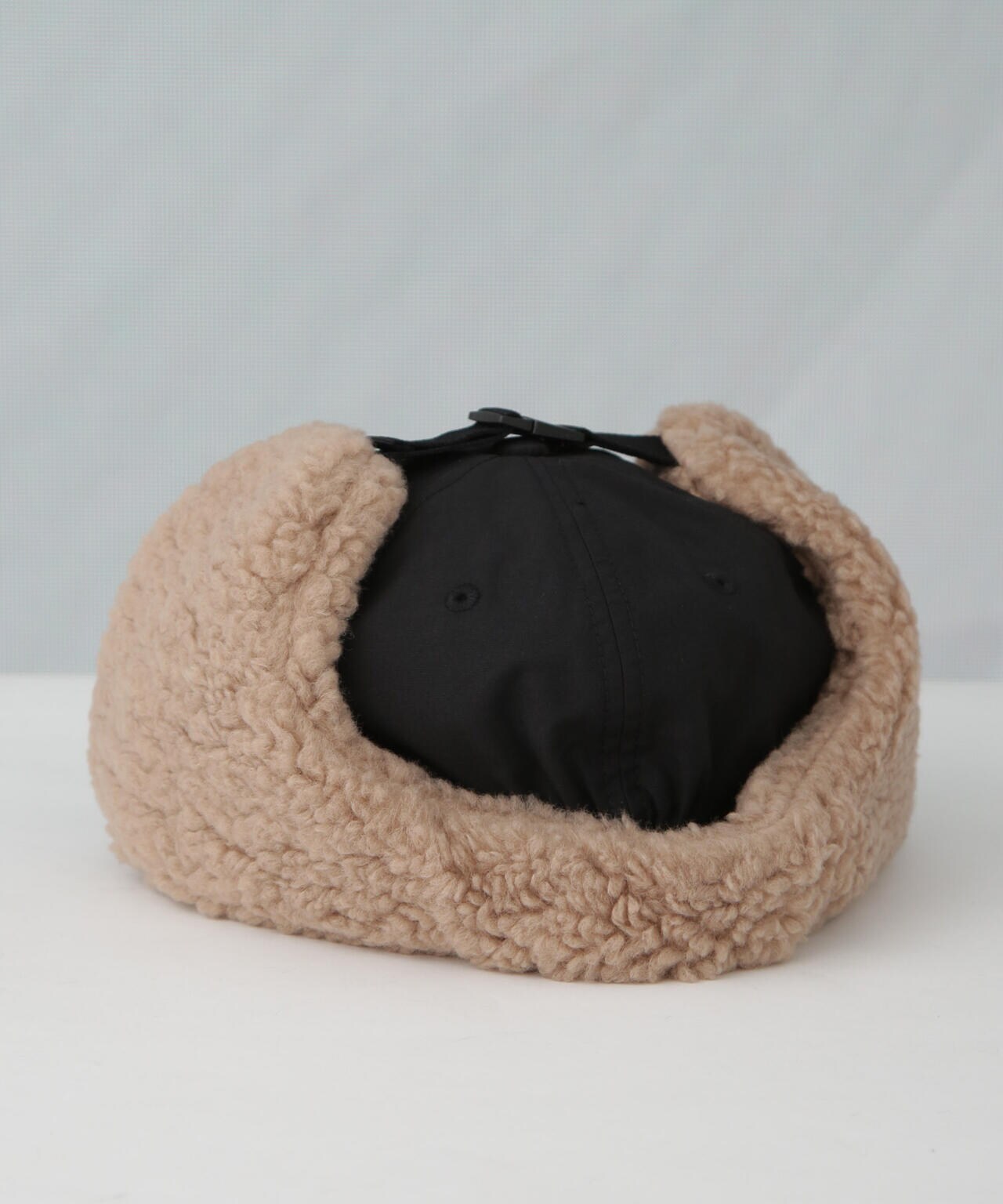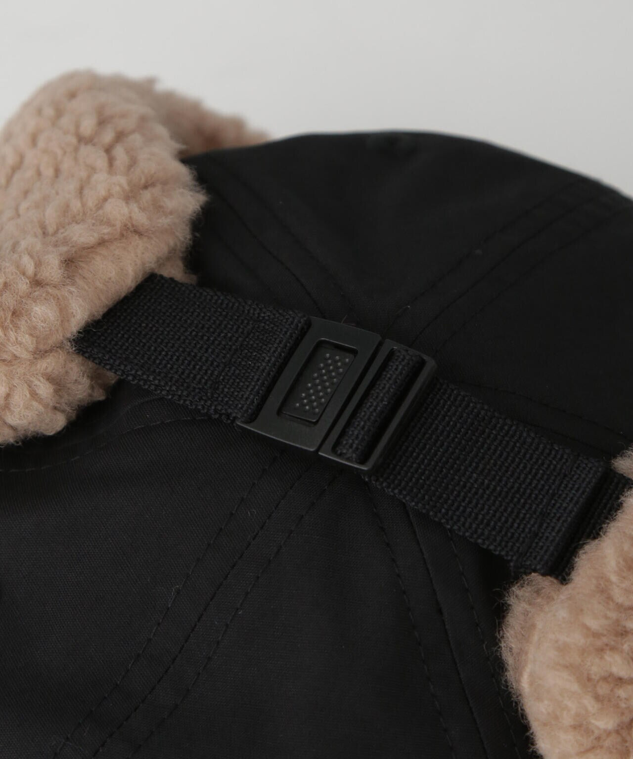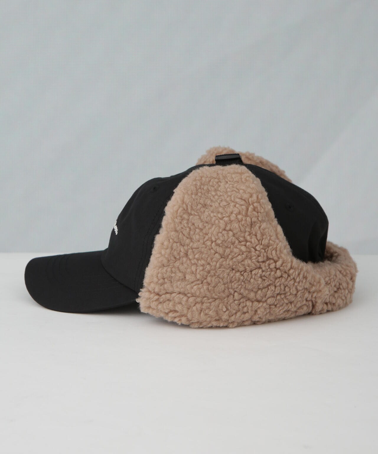 冬の定番アイテムのアビエイターキャップ。フロントにブランドロゴの刺しゅうが施されたデザイン。もこもこのボア素材で、身に着けるだけで一気にスタイリングを冬仕様に仕上げてくれるアイテムです。