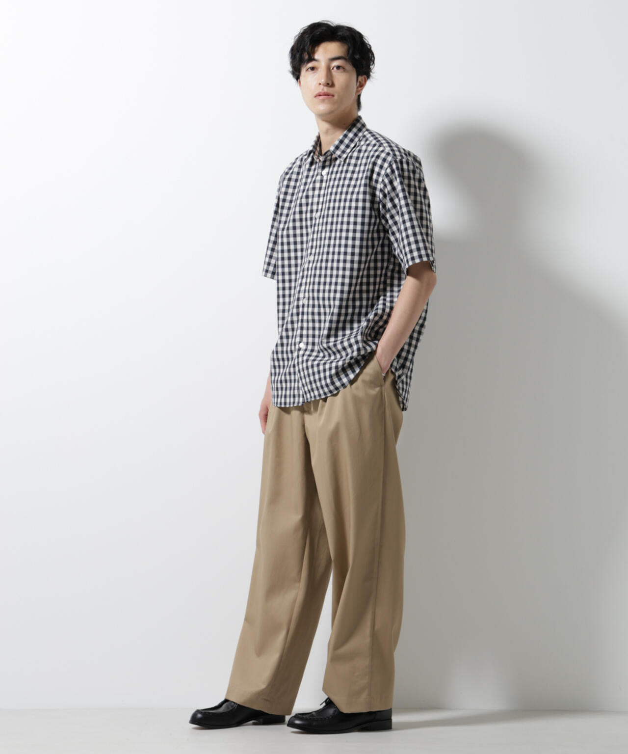 ハリコシのある風合いが魅力なギンガム柄の半袖シャツ。一枚着でも羽織りでも様になる万能なアイテムです。