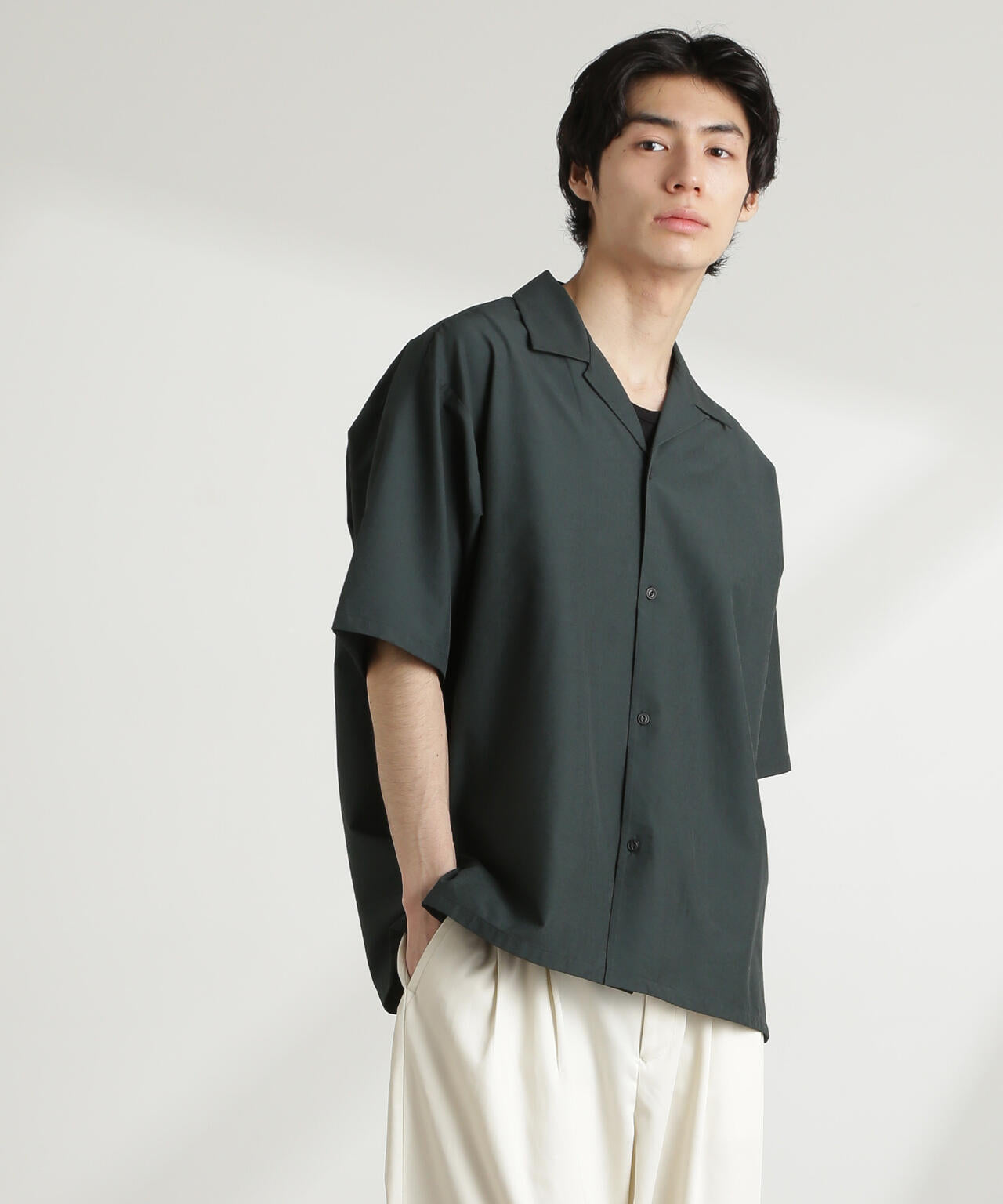 ストレッチワイドオープンカラーシャツ 半袖(セットアップ可)