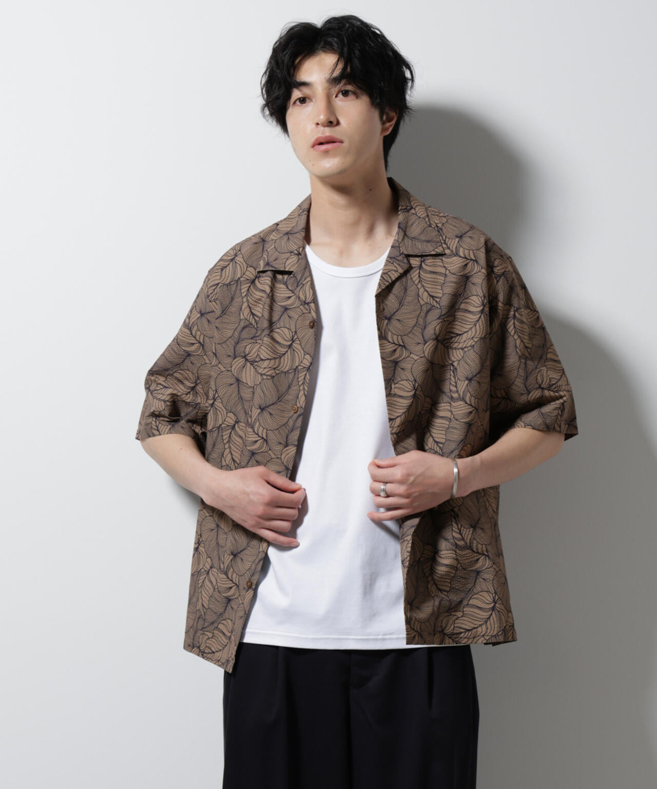 ボタニカルパターンサッカーシャツ 半袖(セットアップ可)