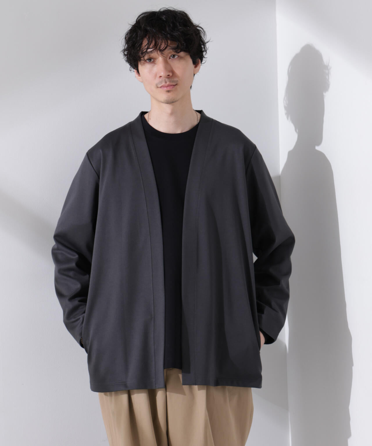微光沢な生地感がきれいめな印象の着流しカーディガン。オンオフ問わずお使い頂ける優秀アイテムです。