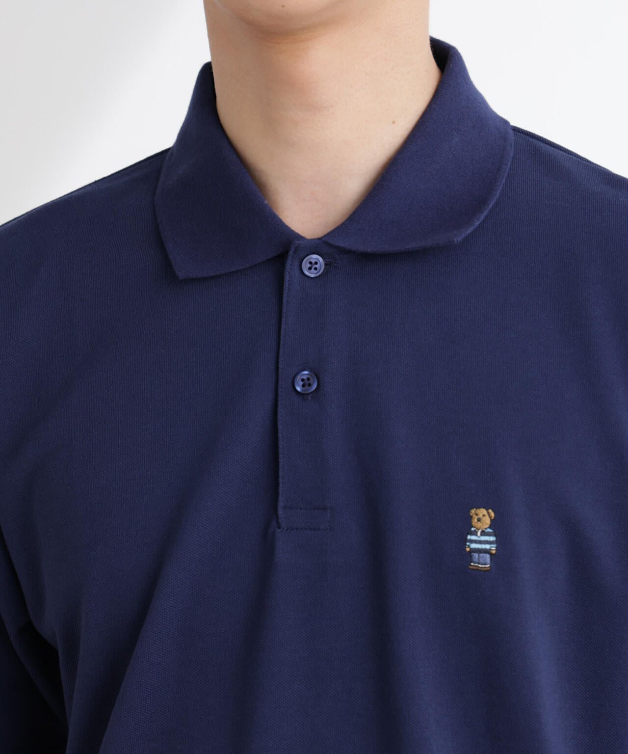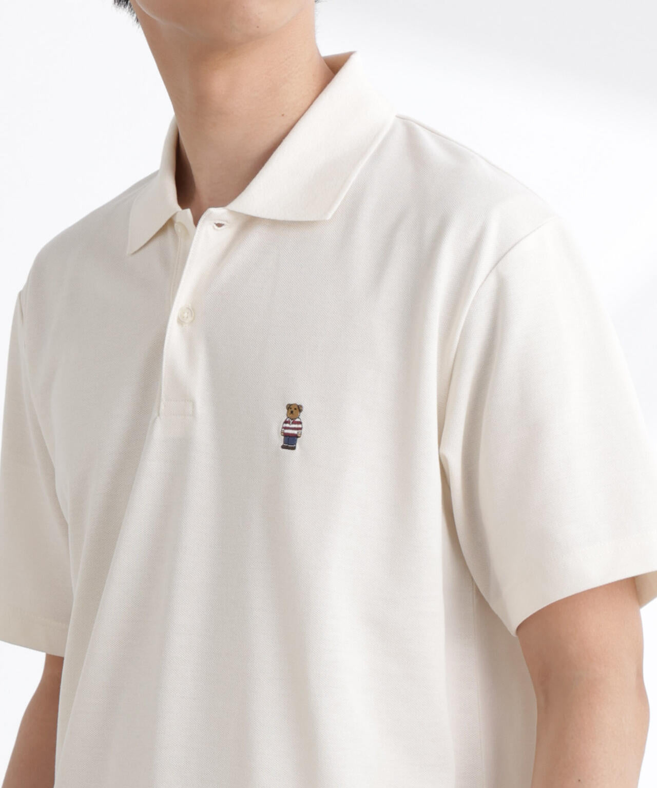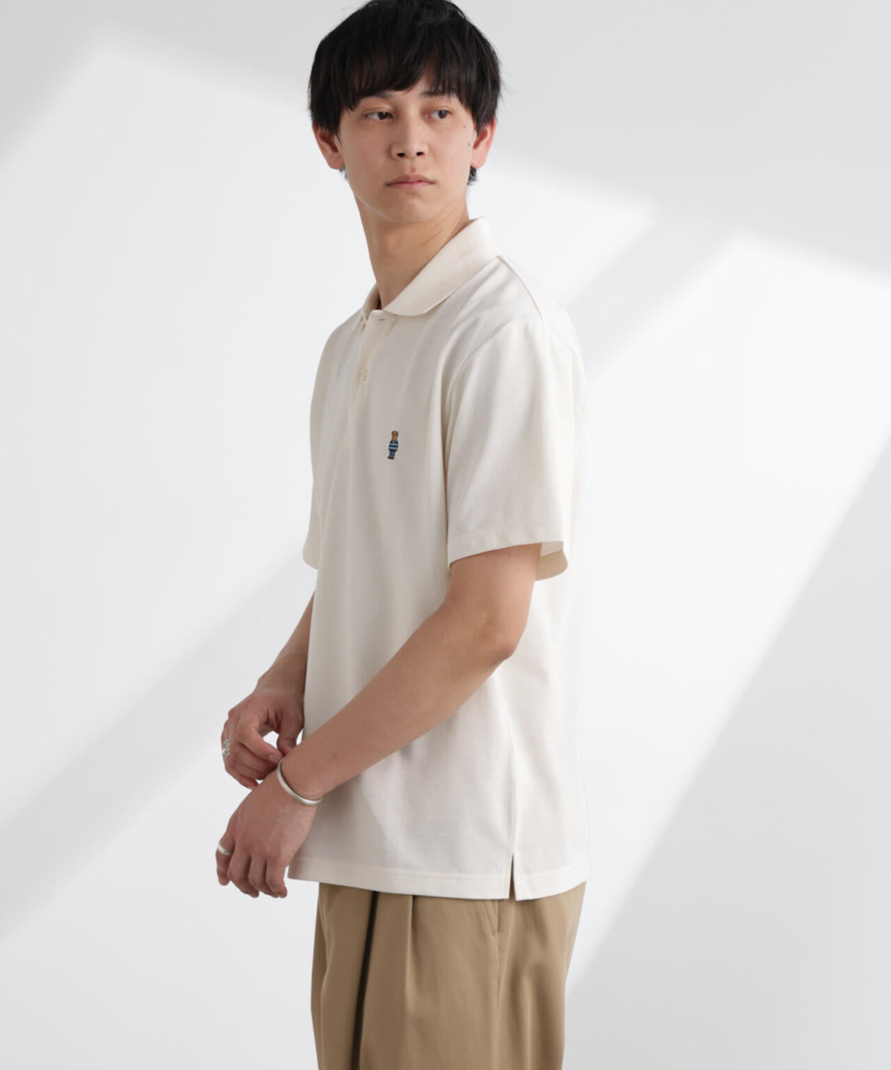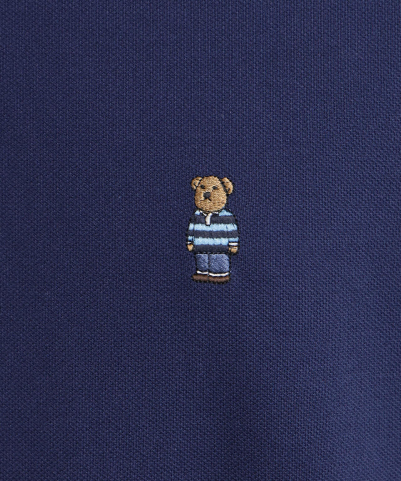 カノコ素材を使用したポロシャツ。ポロシャツよりインスプレーションを受け、ラガーシャツを着用したナノベアをデザイン。