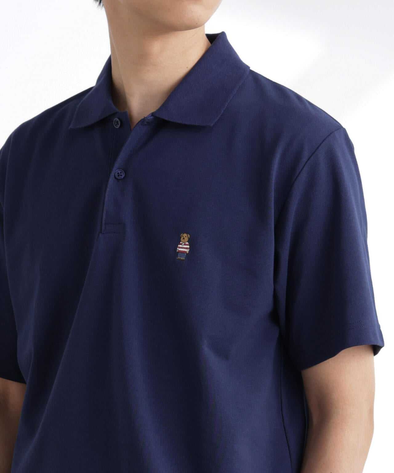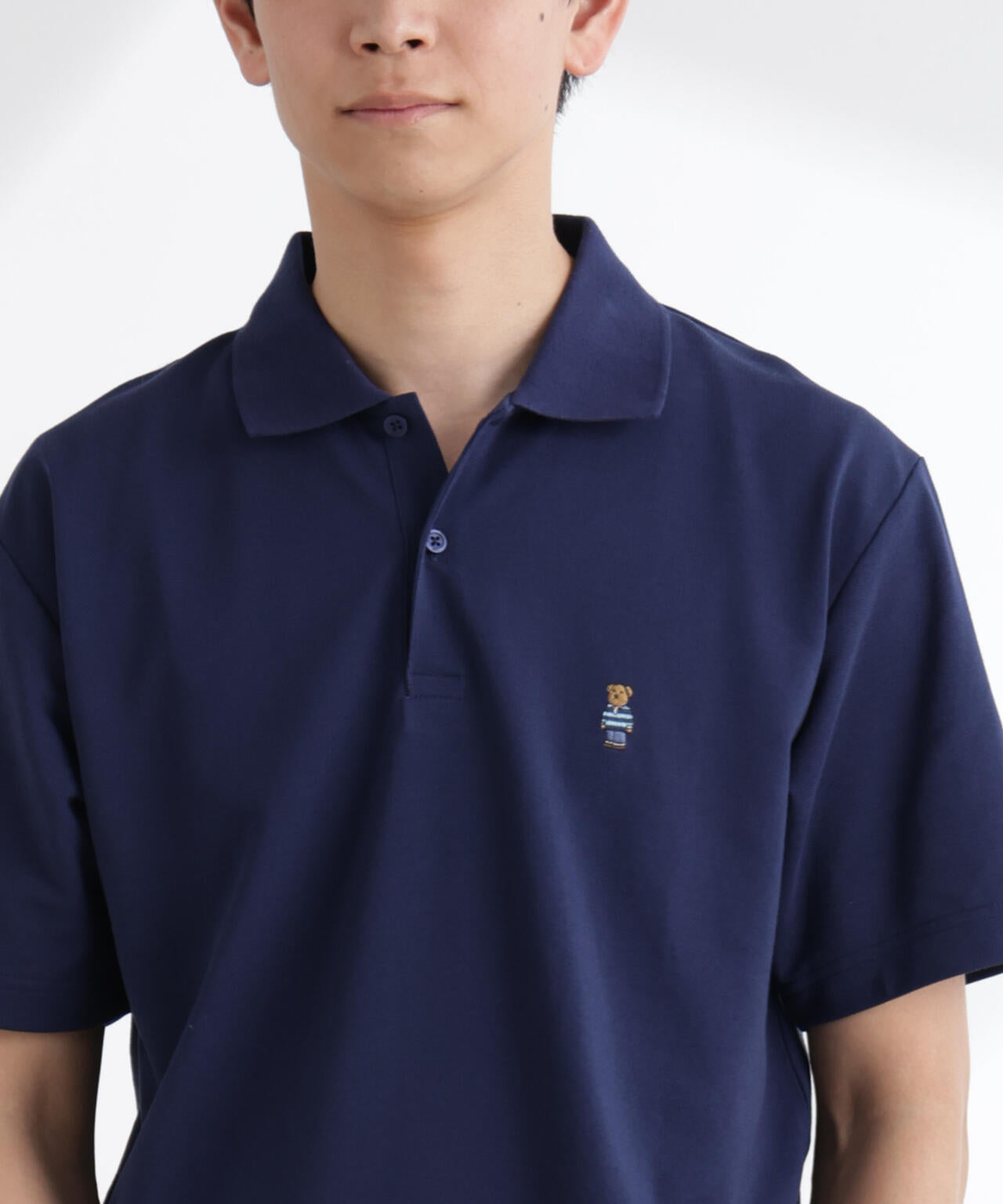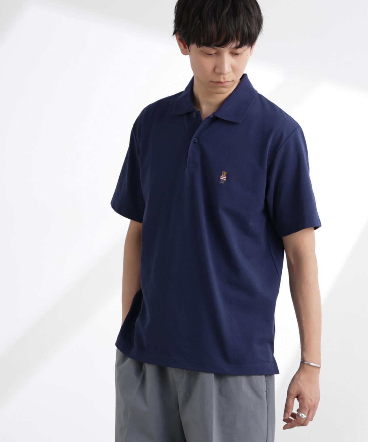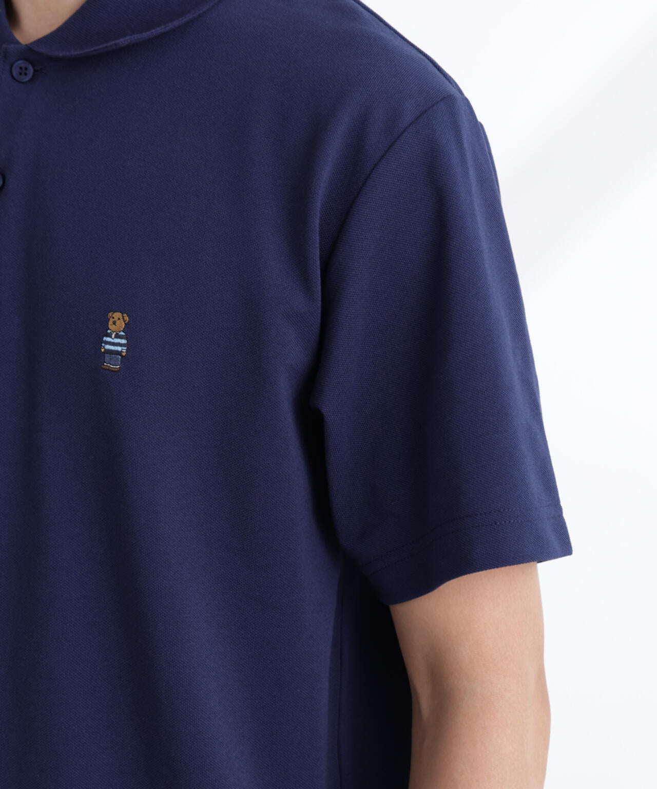 カノコ素材を使用したポロシャツ。ポロシャツよりインスプレーションを受け、ラガーシャツを着用したナノベアをデザイン。