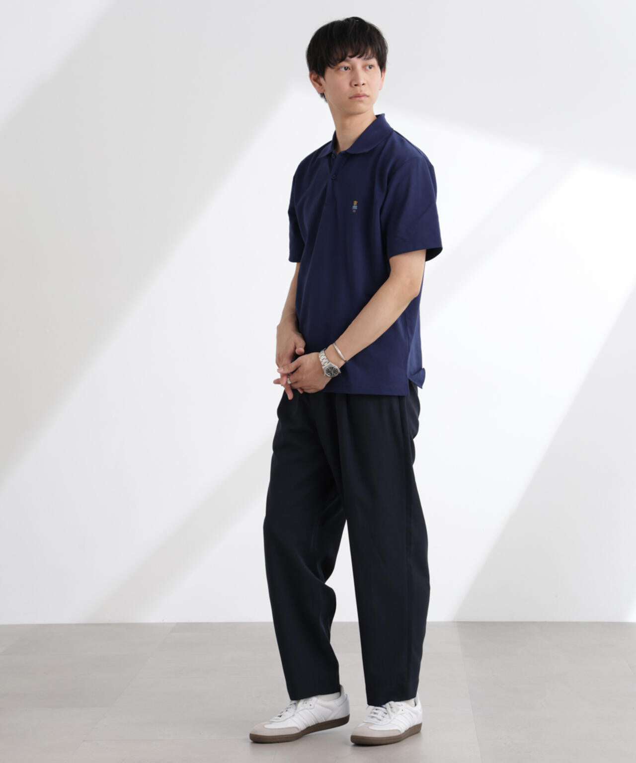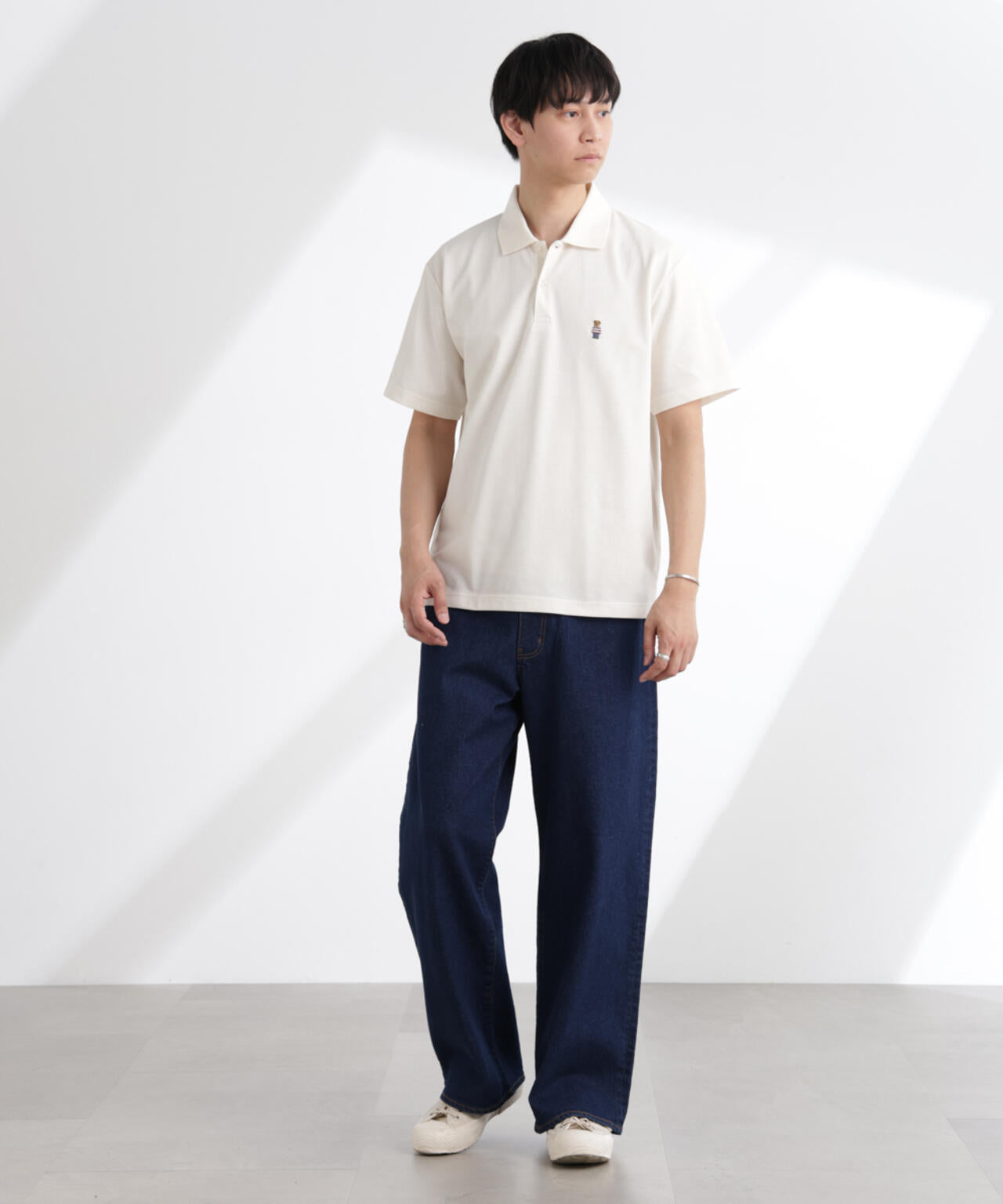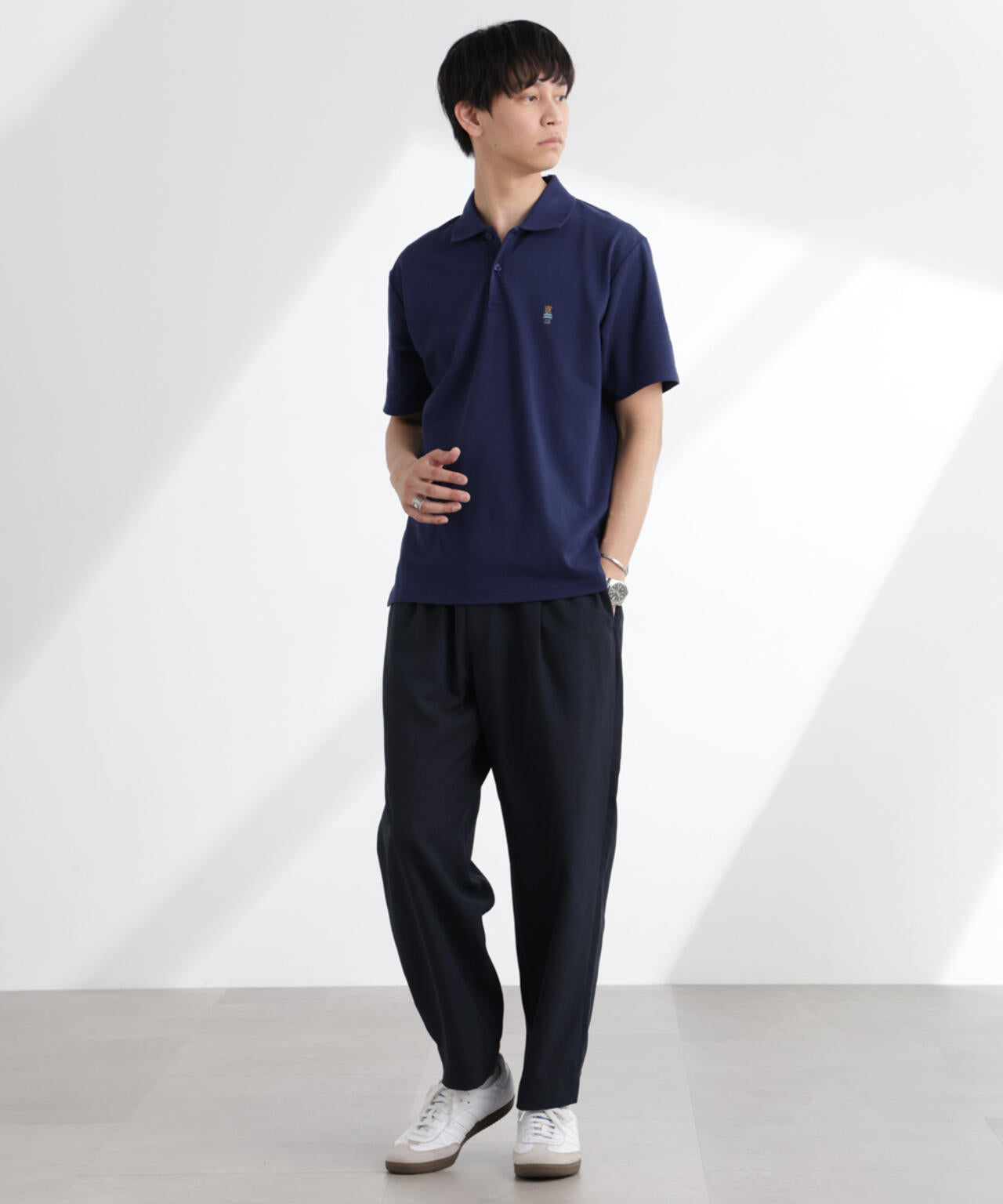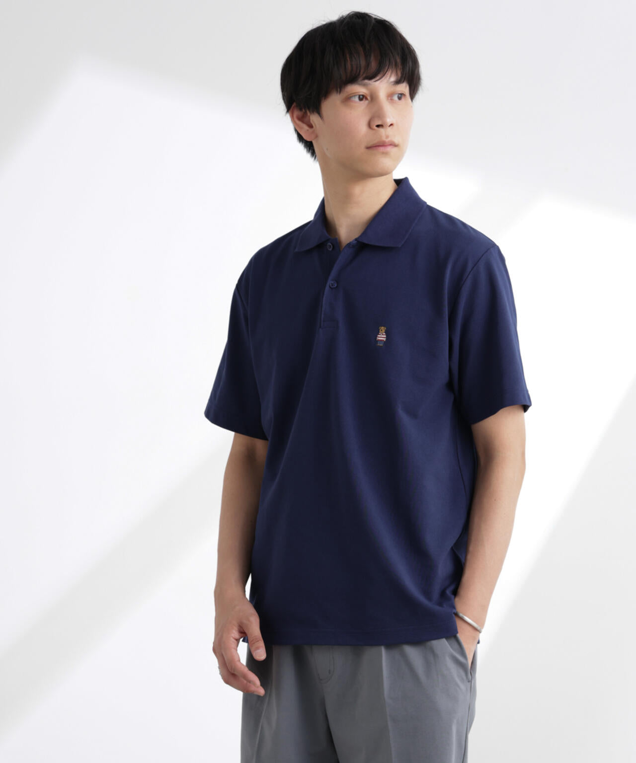 カノコ素材を使用したポロシャツ。ポロシャツよりインスプレーションを受け、ラガーシャツを着用したナノベアをデザイン。