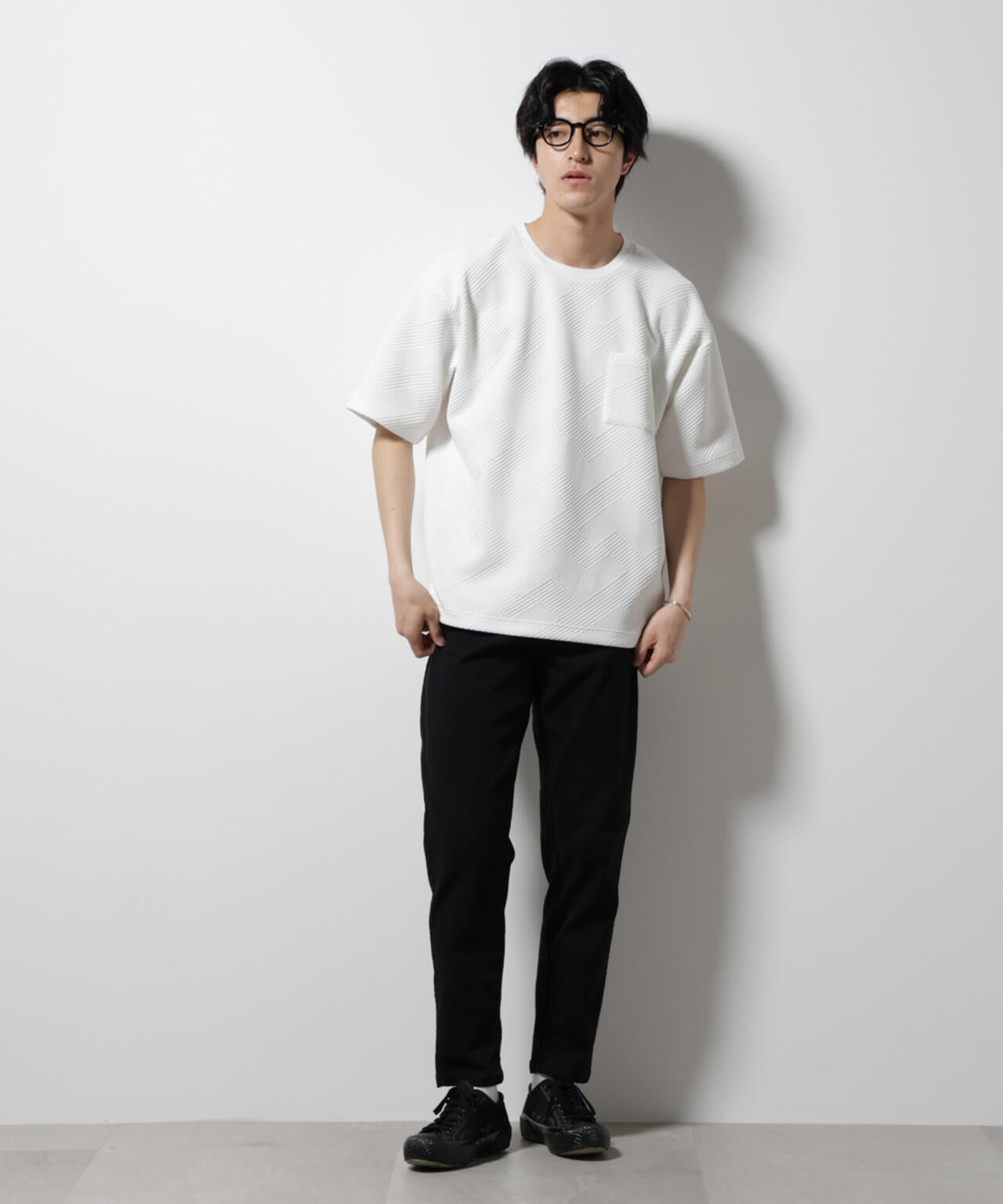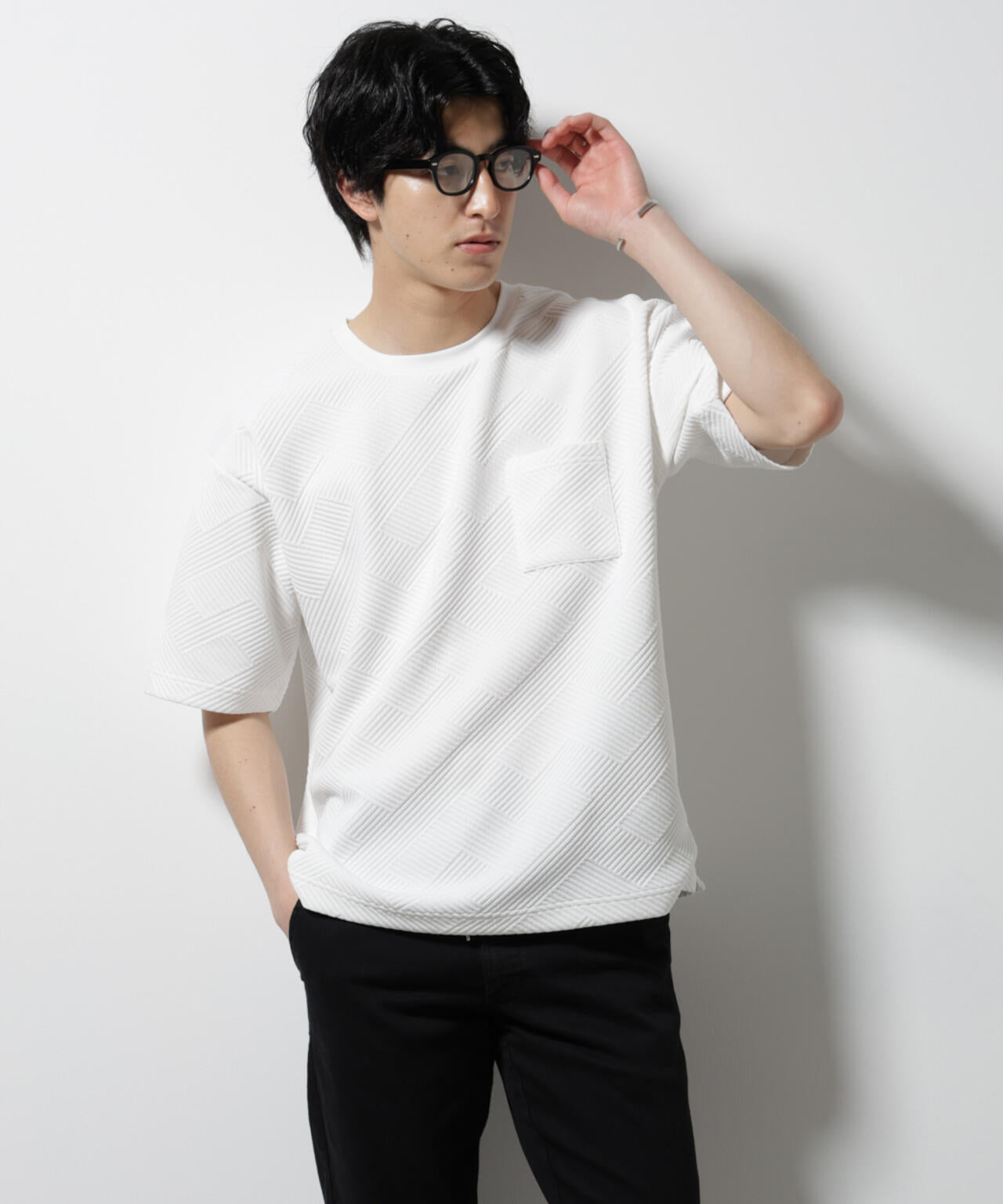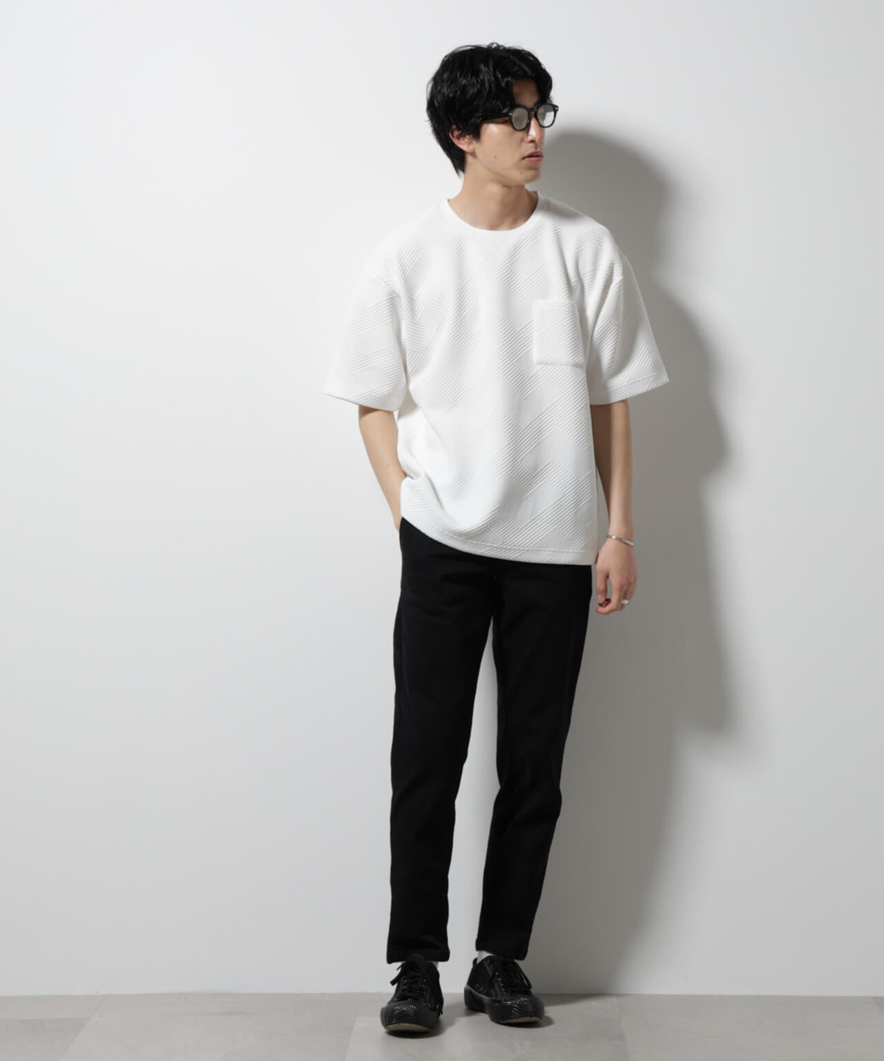 フクレジャガードの生地感が目をひくクルーネックTシャツ。キレイめな風合いが、爽やかなサマースタイルを創出するアイテムです。