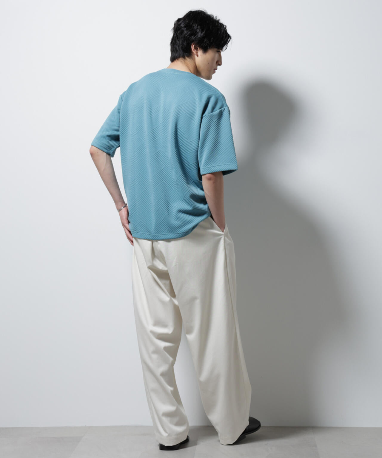 ・爽やかなTシャツスタイルを実現するホワイトとターコイズ