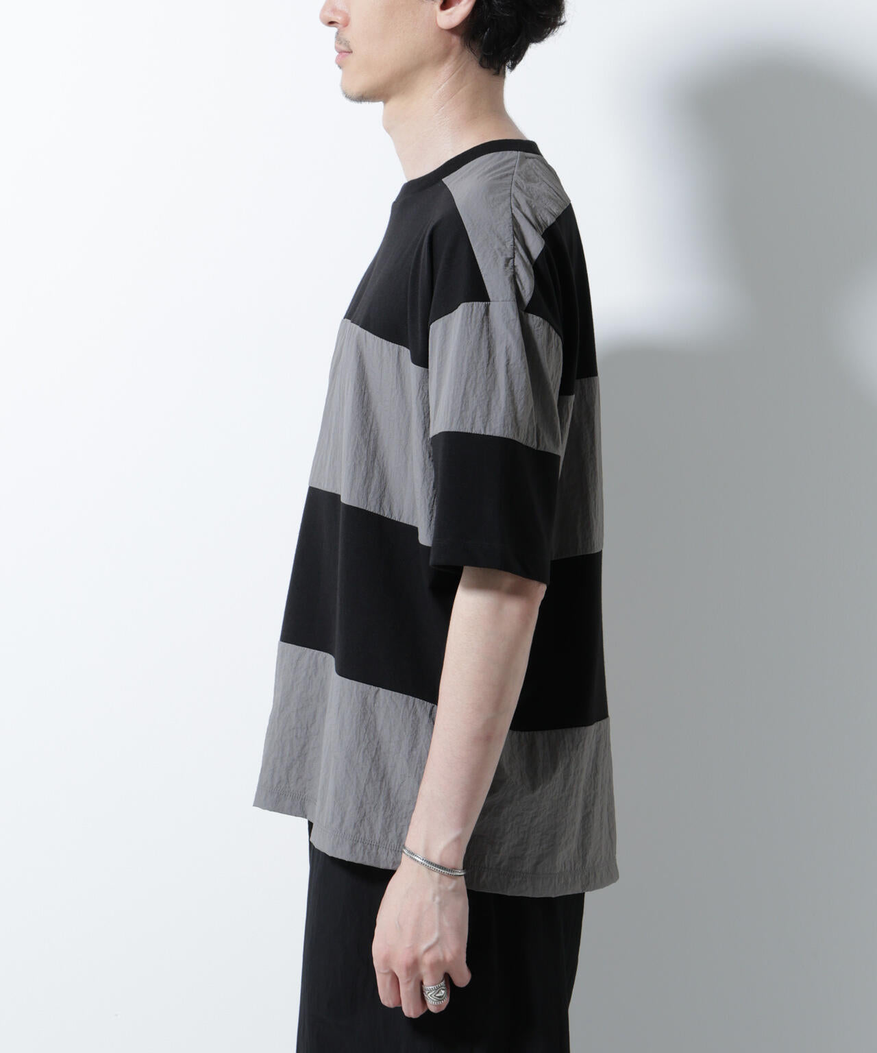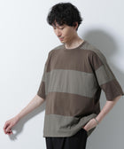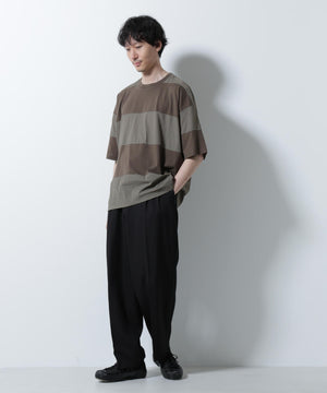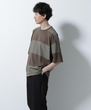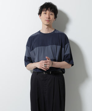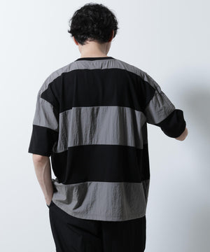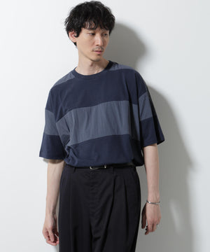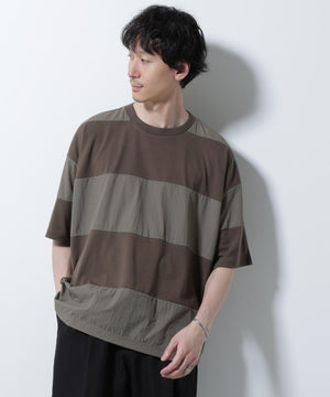 リラックス異素材ボーダーTシャツ 半袖