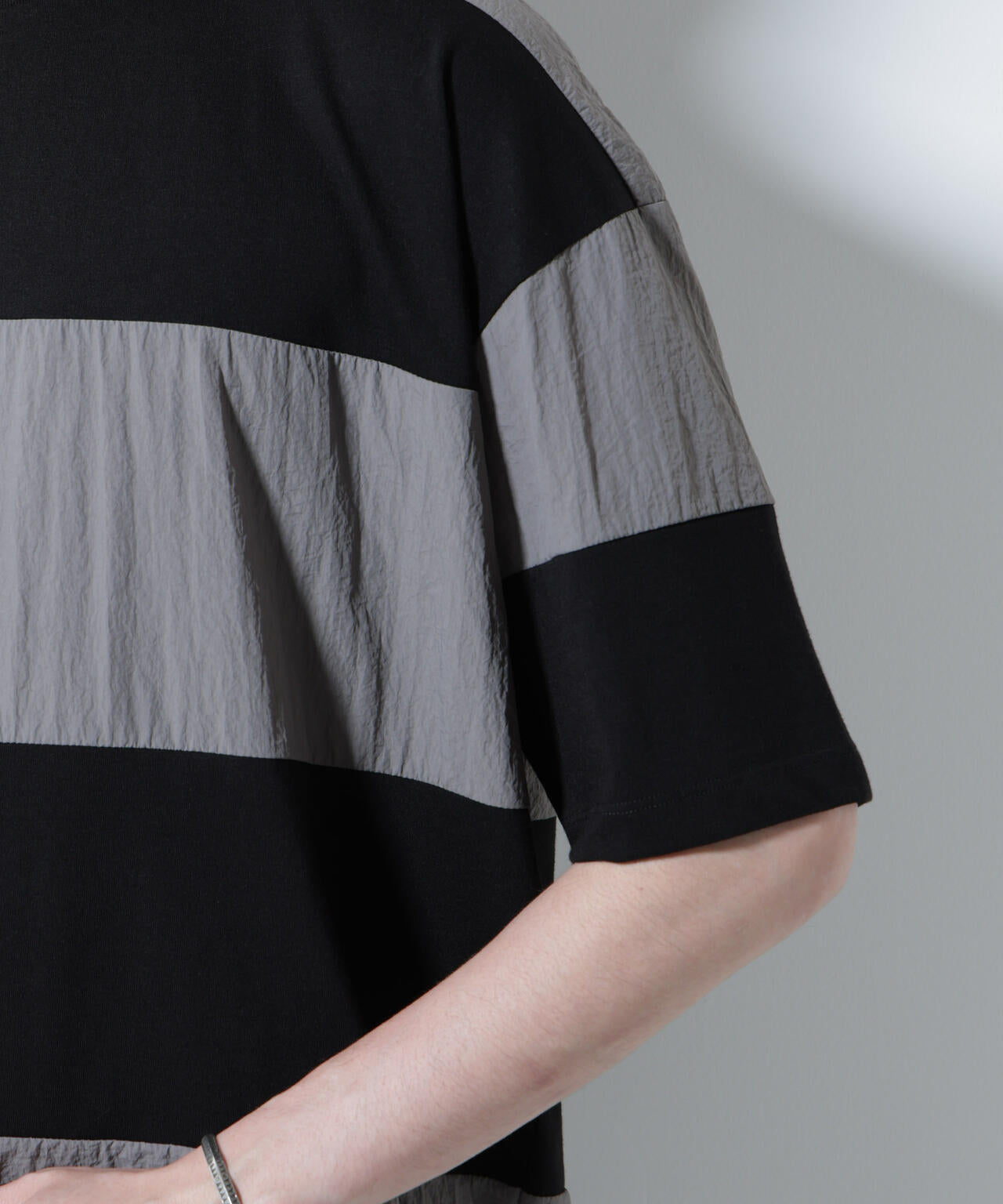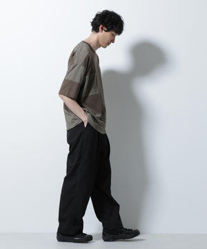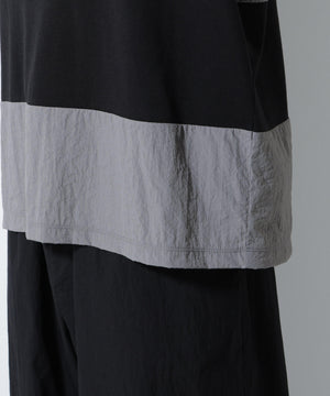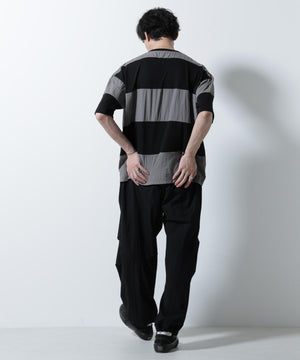 布帛とカットソーを組み合わせたボーダーTシャツ。シックな配色でまとめたアーバンライクな1着です。