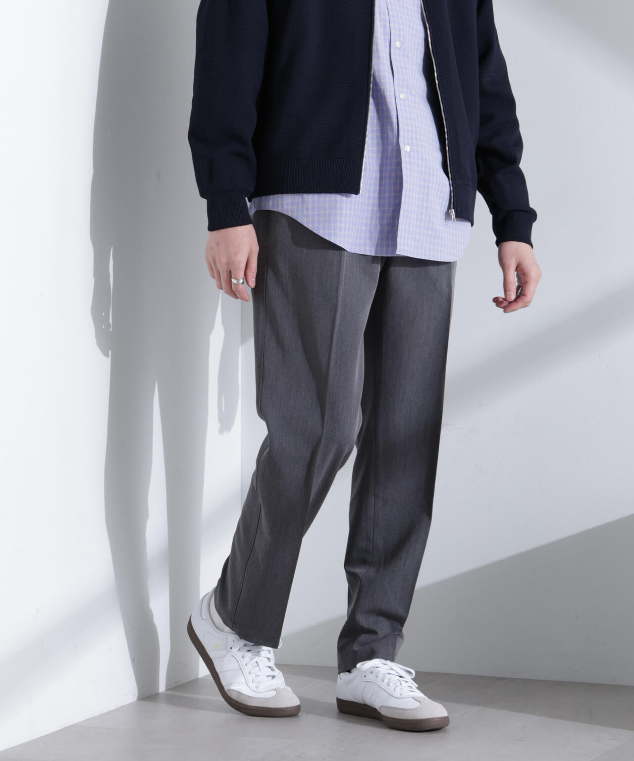 TR素材を使用した上品見えするスラックスパンツ。キレイなシルエットはそのままリラックスパンツに仕上げた1本。