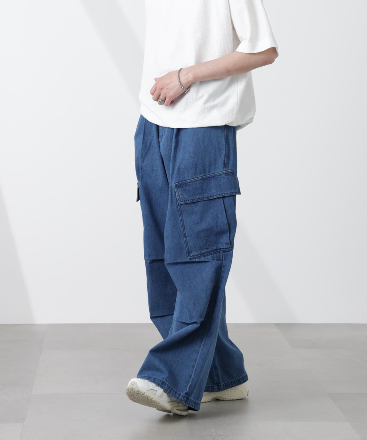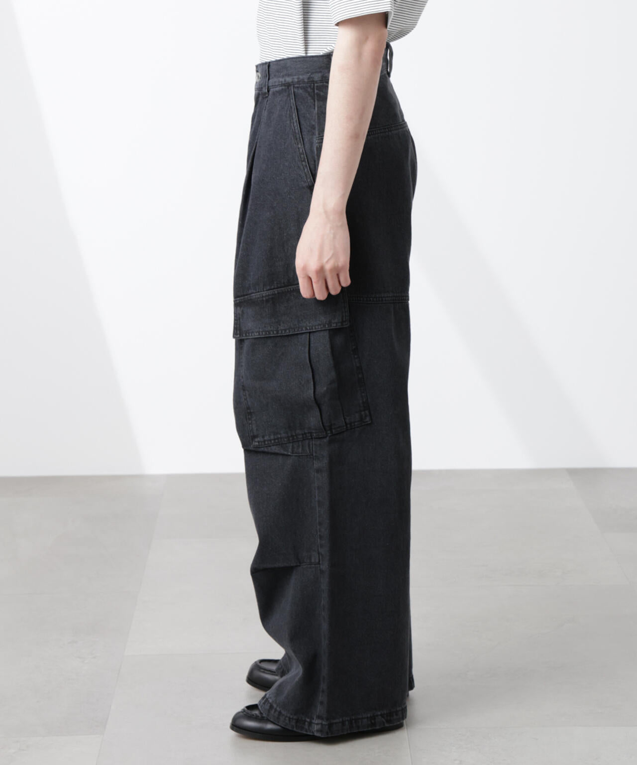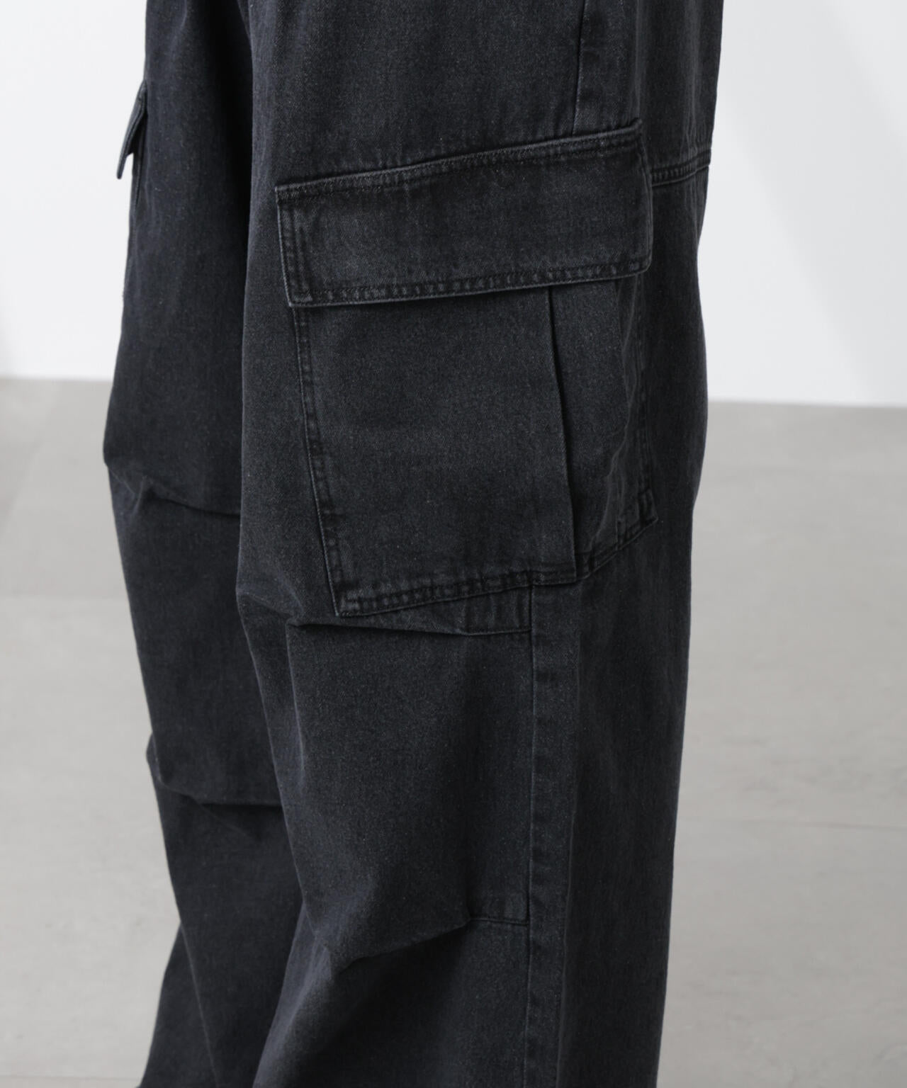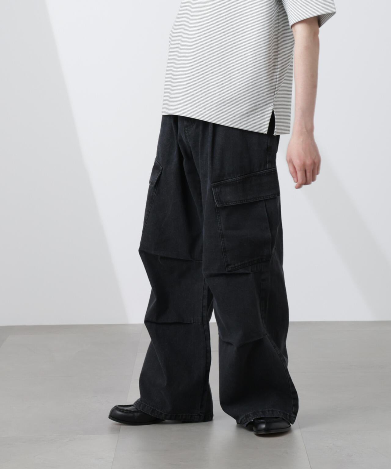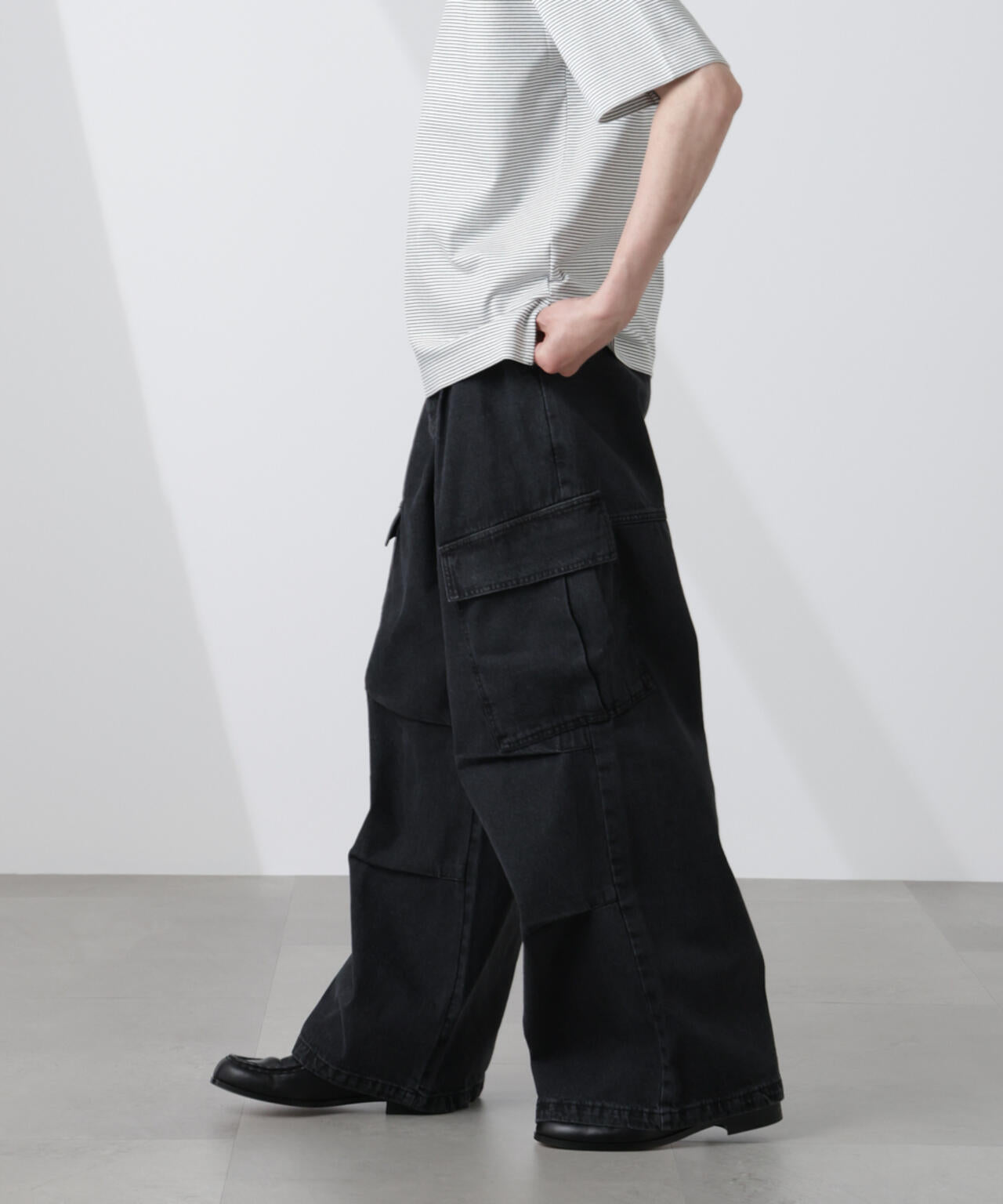 サイドのビッグポケットがインパクトのあるカーゴパンツ。ストイックなワイドシルエットと長めのレングスがトレンド感満載のアイテムです。