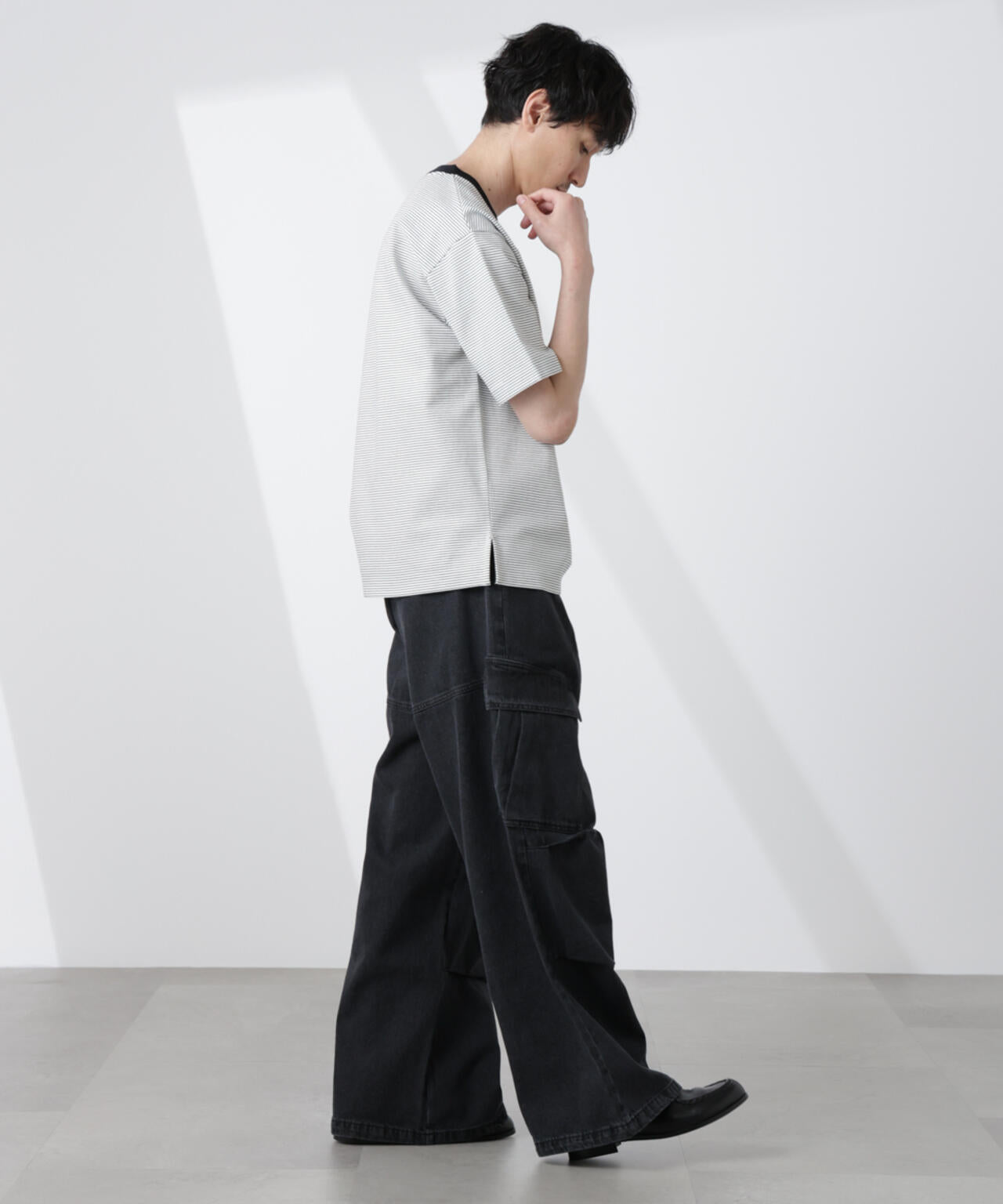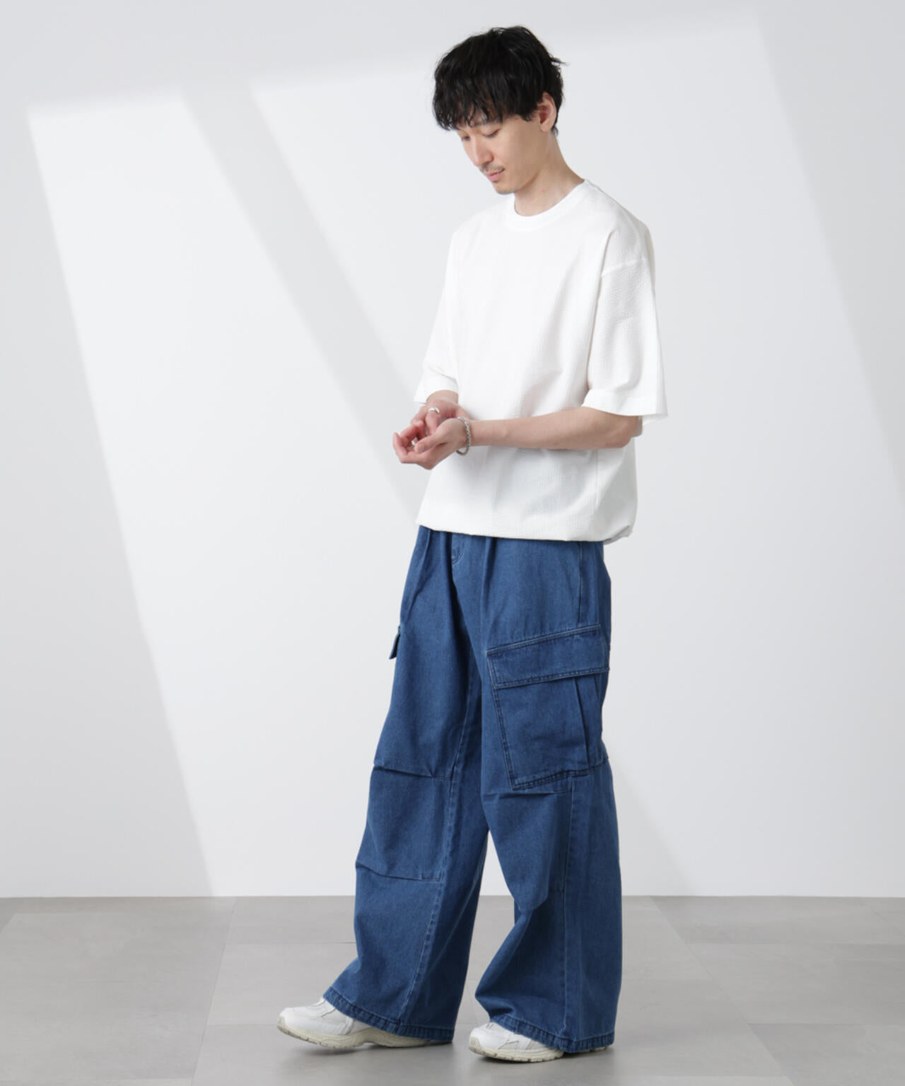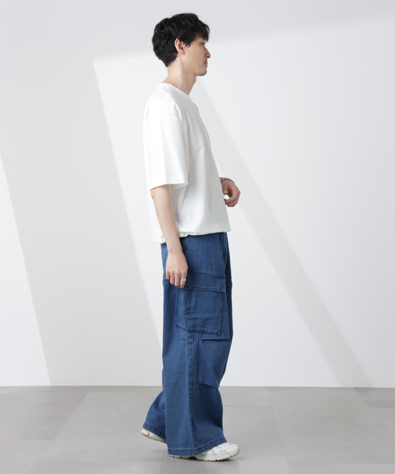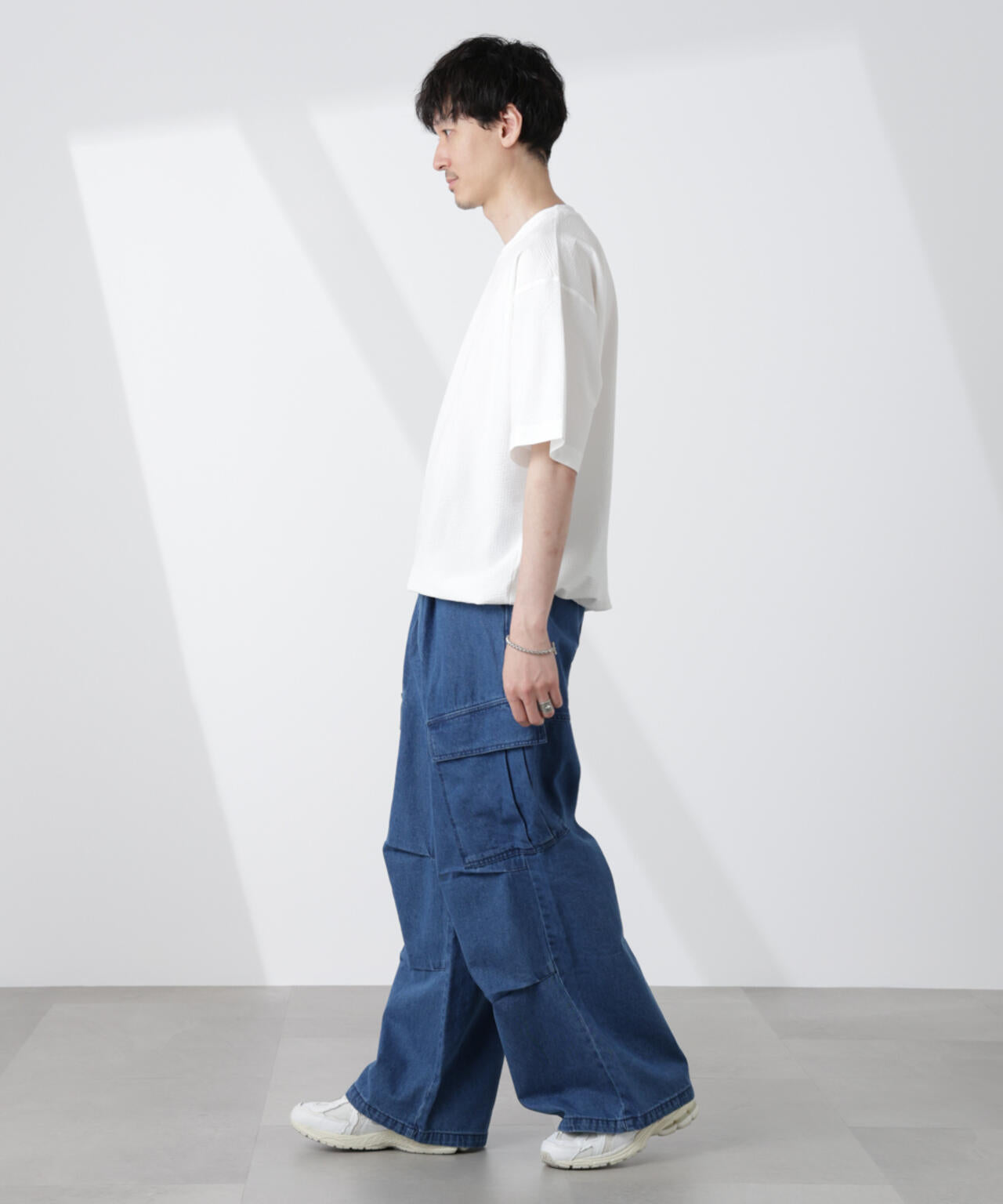 サイドのビッグポケットがインパクトのあるカーゴパンツ。ストイックなワイドシルエットと長めのレングスがトレンド感満載のアイテムです。