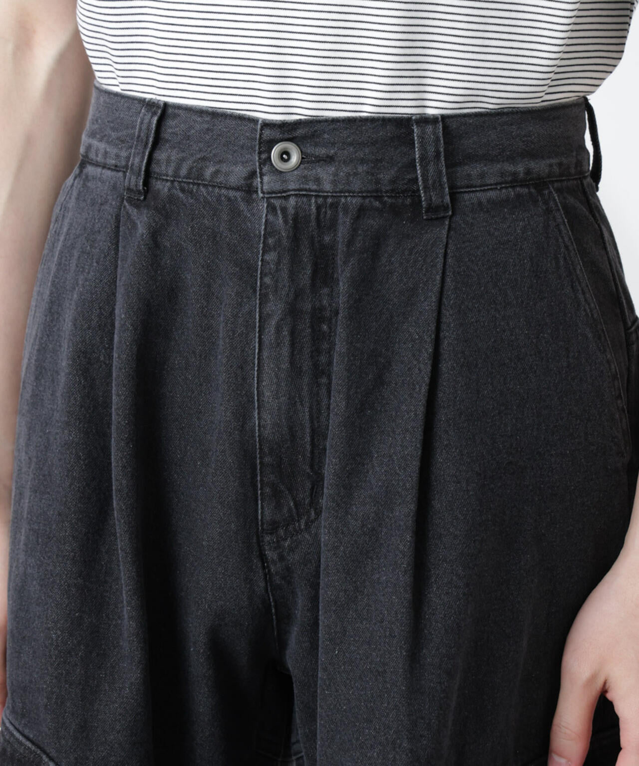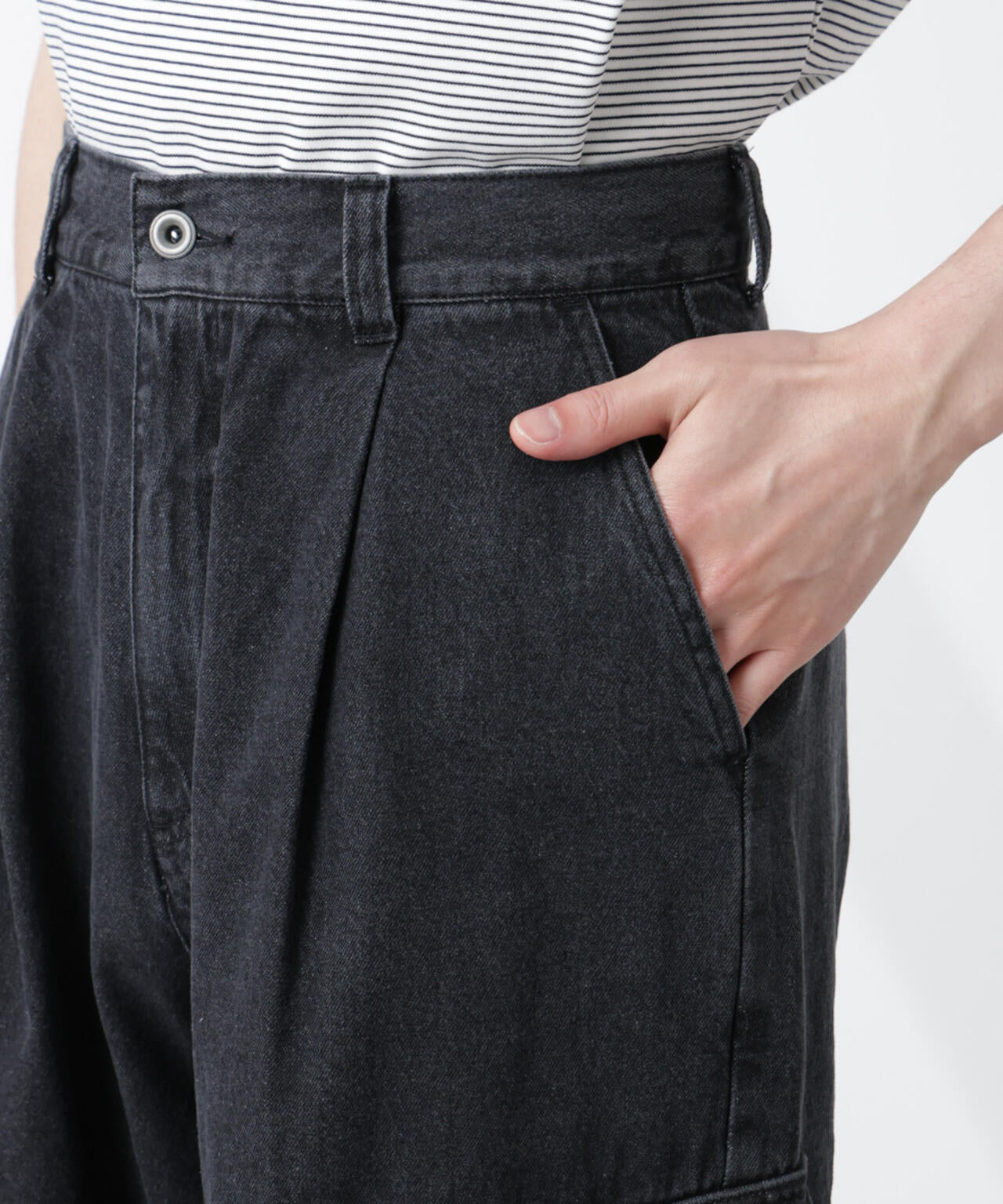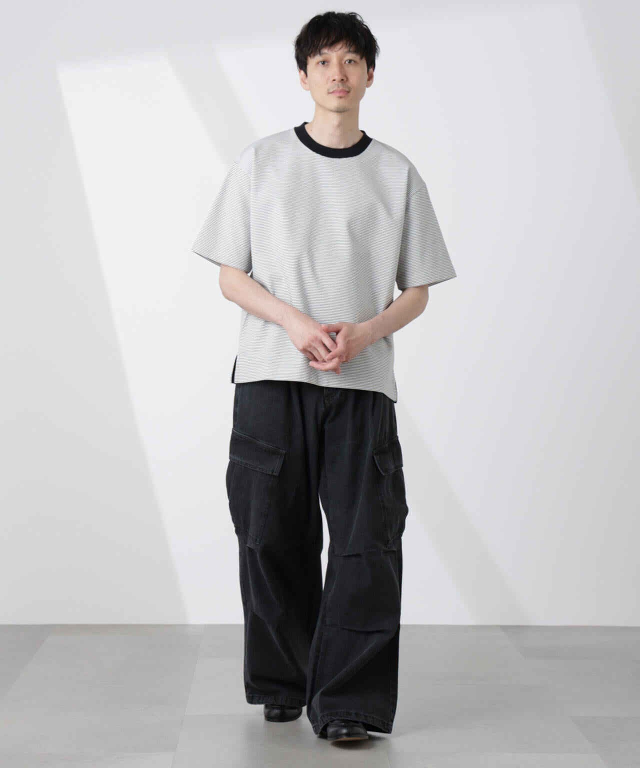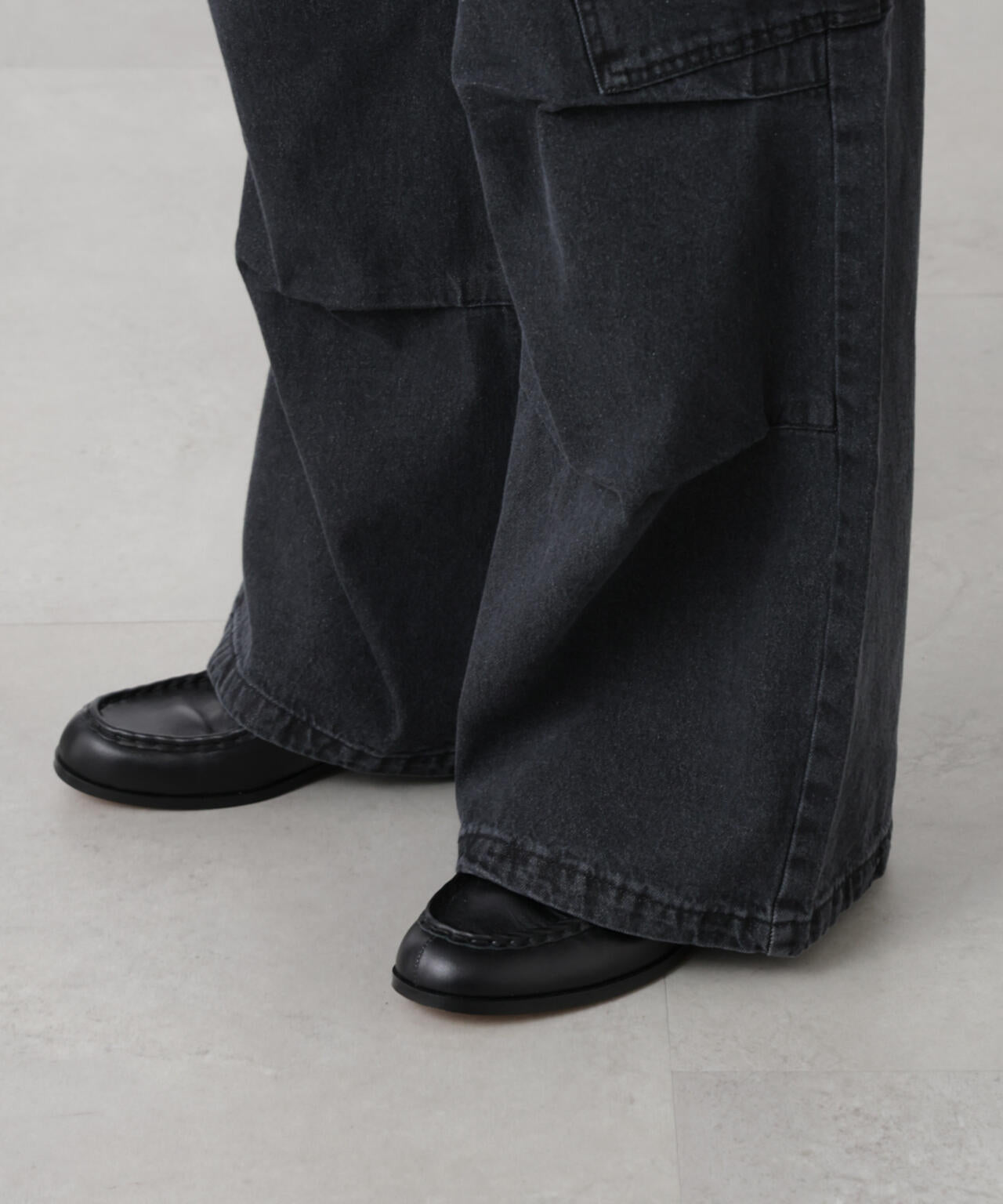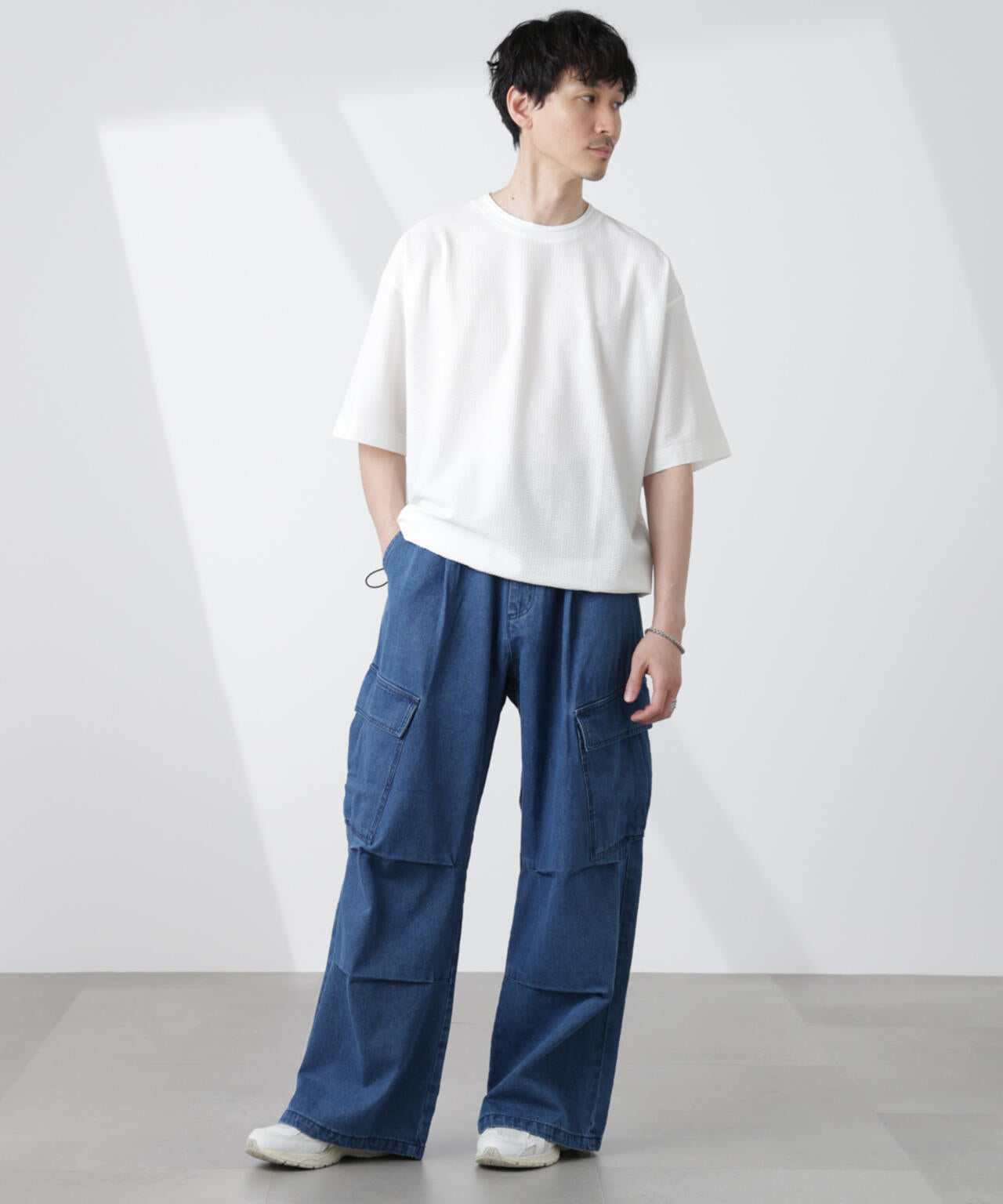 サイドのビッグポケットがインパクトのあるカーゴパンツ。ストイックなワイドシルエットと長めのレングスがトレンド感満載のアイテムです。