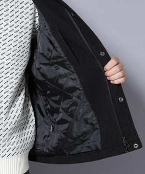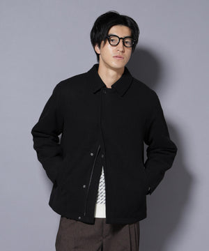 ウールのような心地よいタッチ感に伸縮性のあるテックメルトン素材を使用したショートブルゾン。今シーズンはサーモライト中綿を使用した保温性のある一枚に。コンパクトな程よいボックスシルエットのデザインは、トレンドを意識しナノらしさを加えたアイテムです。
