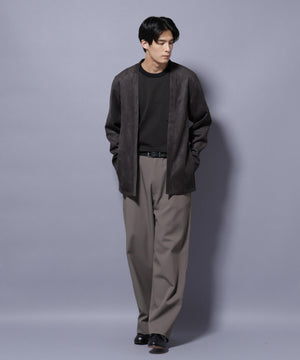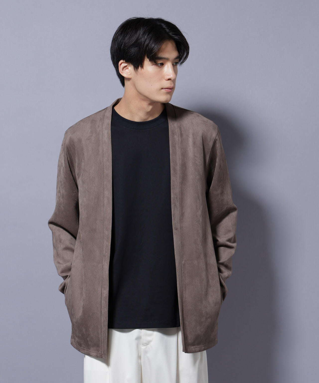 「フェイクスエード」シリーズから登場のトッパーカーディガン。伸縮性だけでなく、心地よいタッチ感を演出した生地を採用。軽い羽織としてもおすすめのアイテムです。