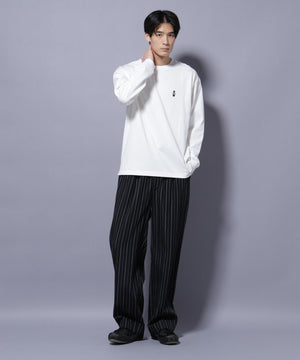 ・警察官のナノベアデザインにワイドなスラックスパンツを合わせてベルトで締めるのが◎